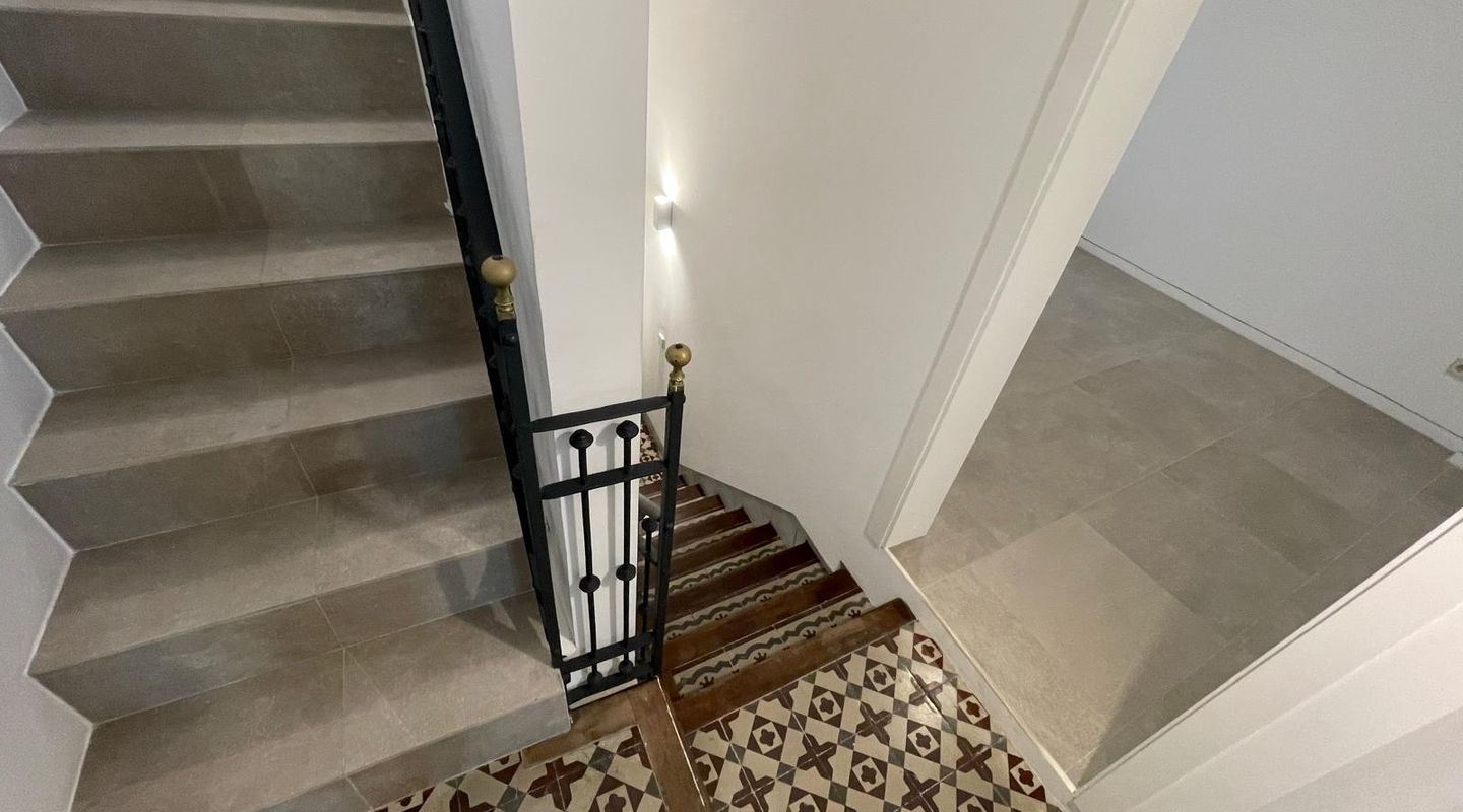 Im 4. Stock (mit Aufzug) befinden sich zwei Schlafzimmer, beide mit Badezimmer en suite und beide mit begehbarem Kleiderschrank, außerdem gibt es einen zusätzlichen Raum, der als Büro oder Musikzimmer genutzt werden könnte. In der 5. Etage (kein Aufzug) befindet sich ein offenes Wohnzimmer mit Zugang zu einer fantastischen und geräumigen Terrasse mit Blick auf El Borne. Der Küchenbereich hat auch Zugang zu einer zweiten Terrasse (keine Aussicht), auf dieser Ebene befindet sich auch eine Gästetoilette.