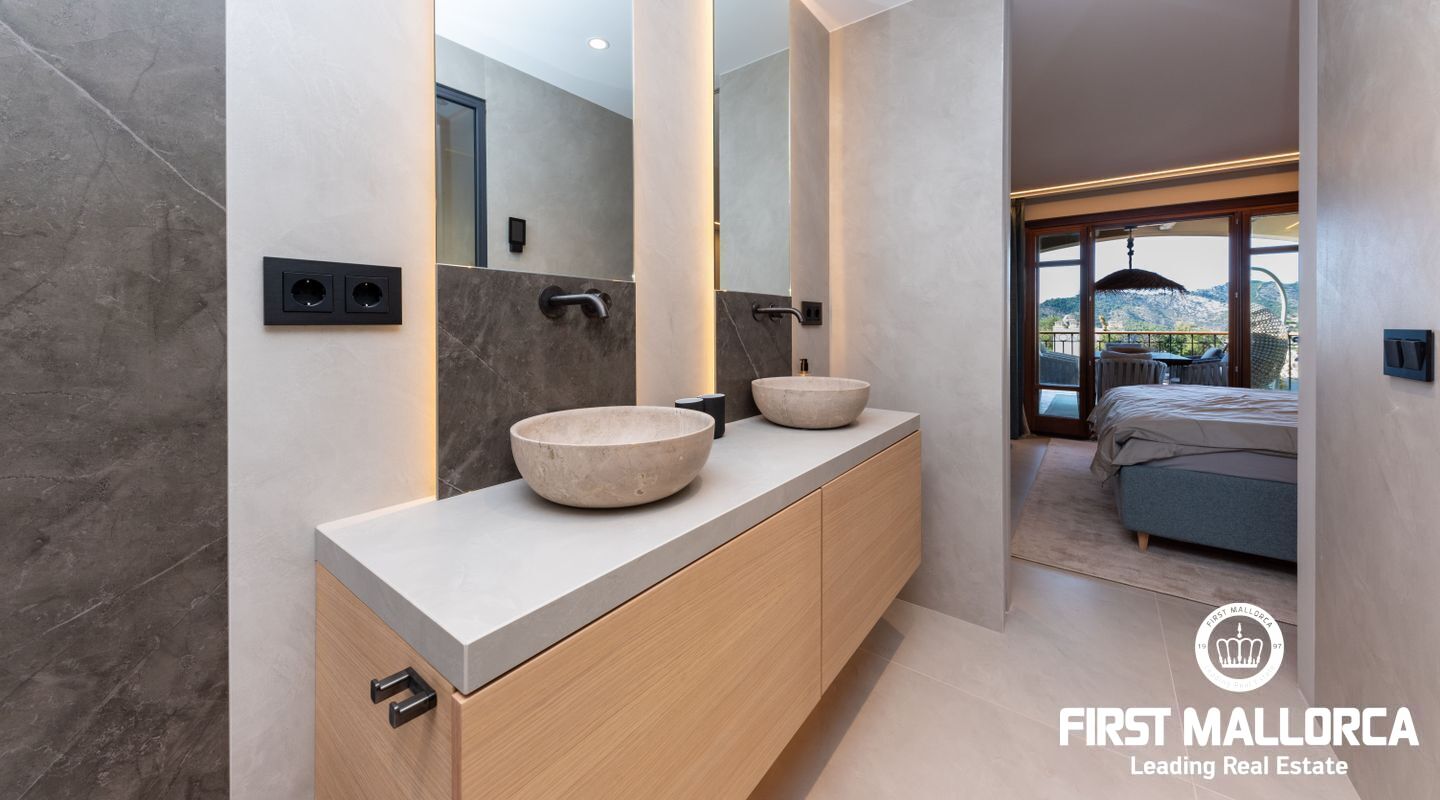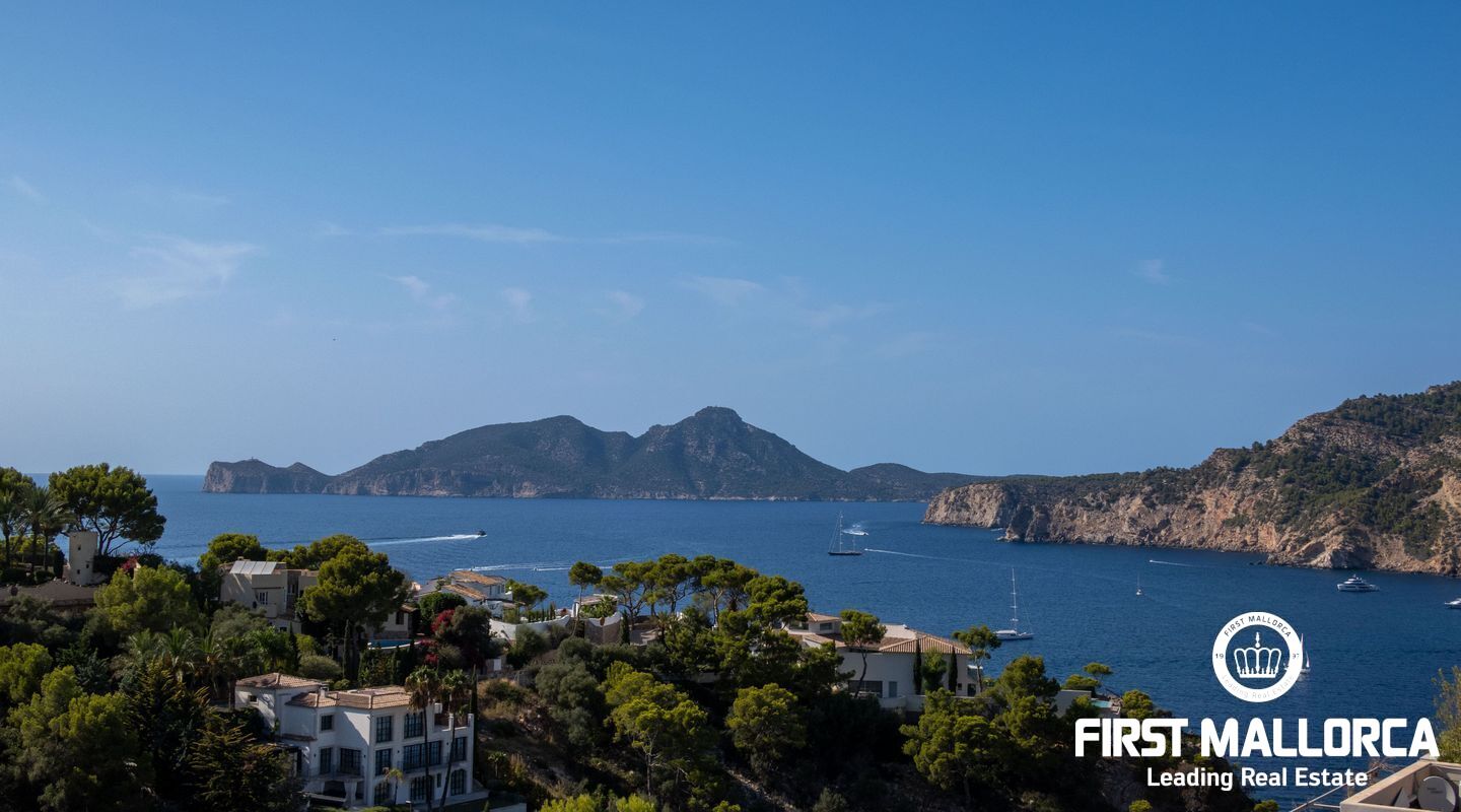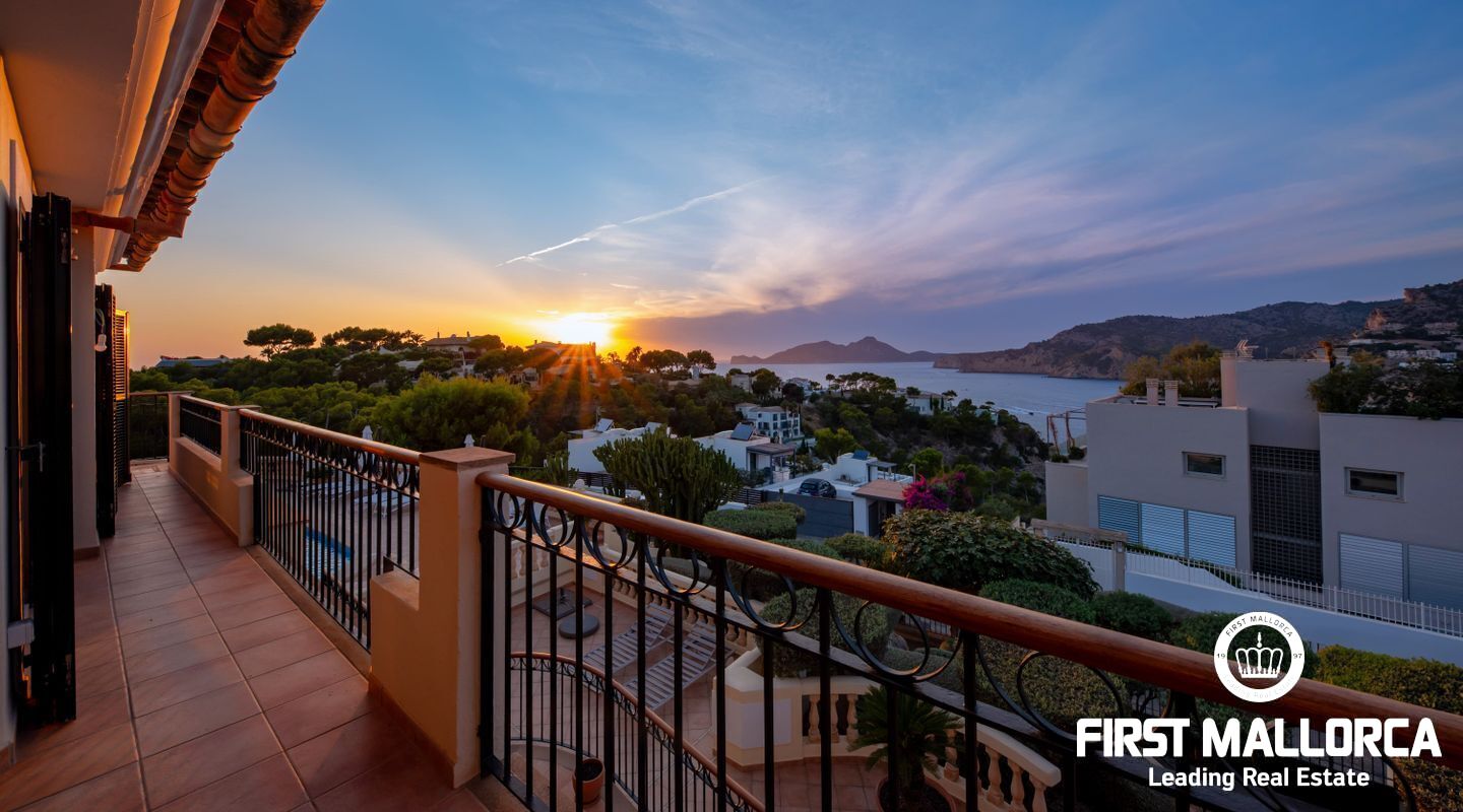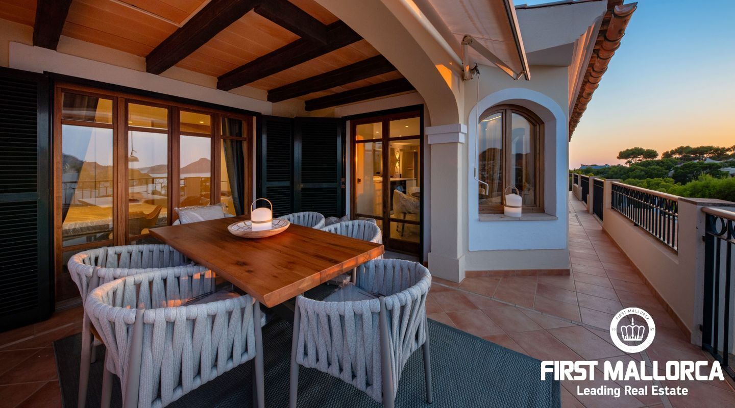 Die Küche ist offen gestaltet, mit Kücheninsel und hochwertigen Geräten ausgestattet. Das angrenzende Wohnzimmer mit elektrischem Kaminfeuer, direktem Blick auf das Meer und Dragonera ist geräumig genug für Familie und Freunde, auch hier gibt es Terrassenzugang.