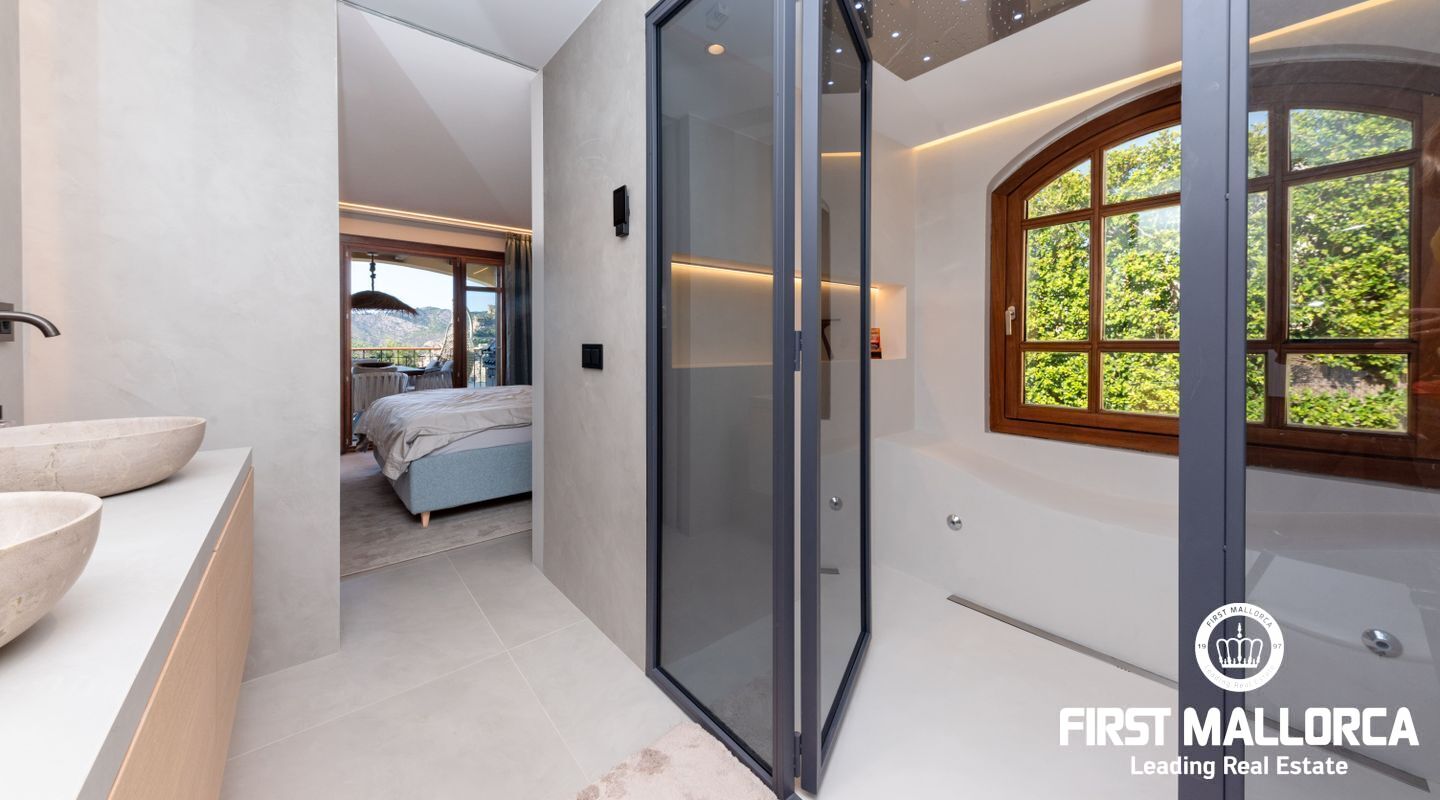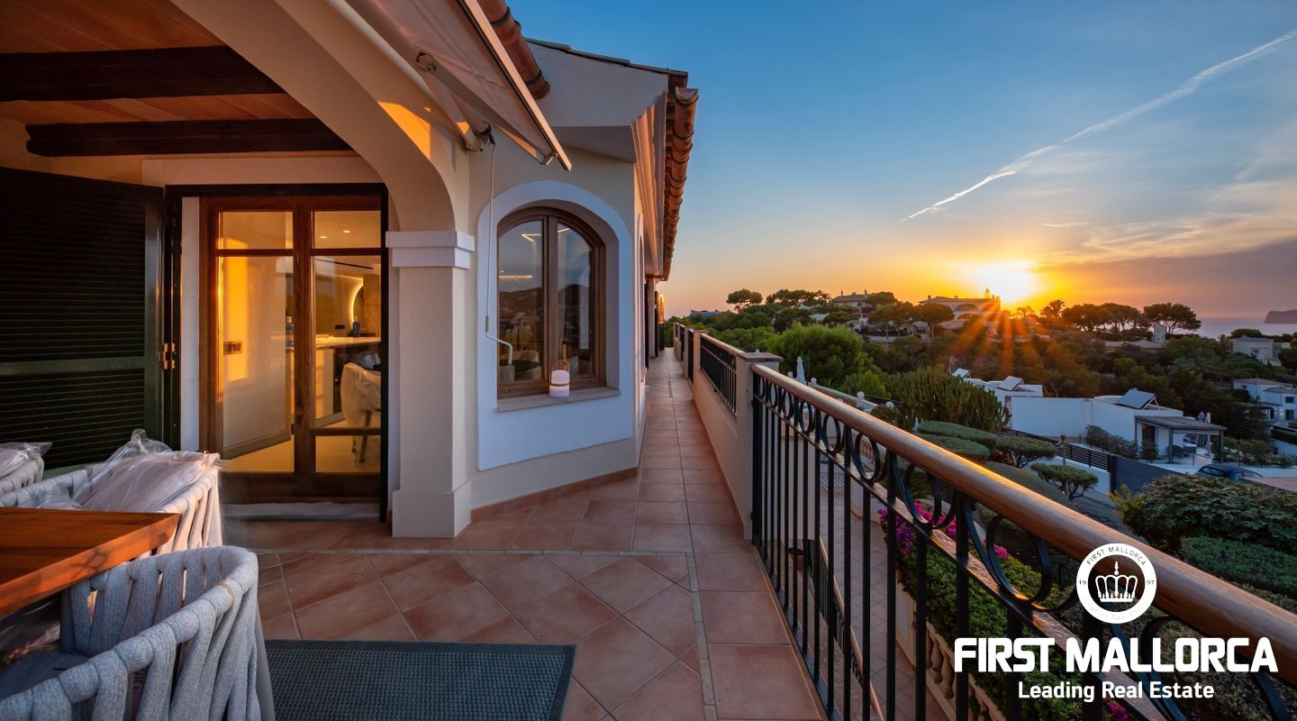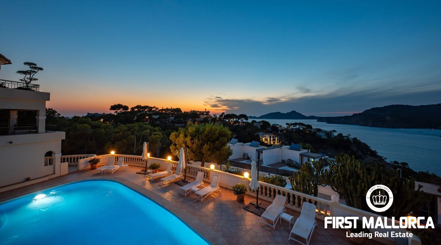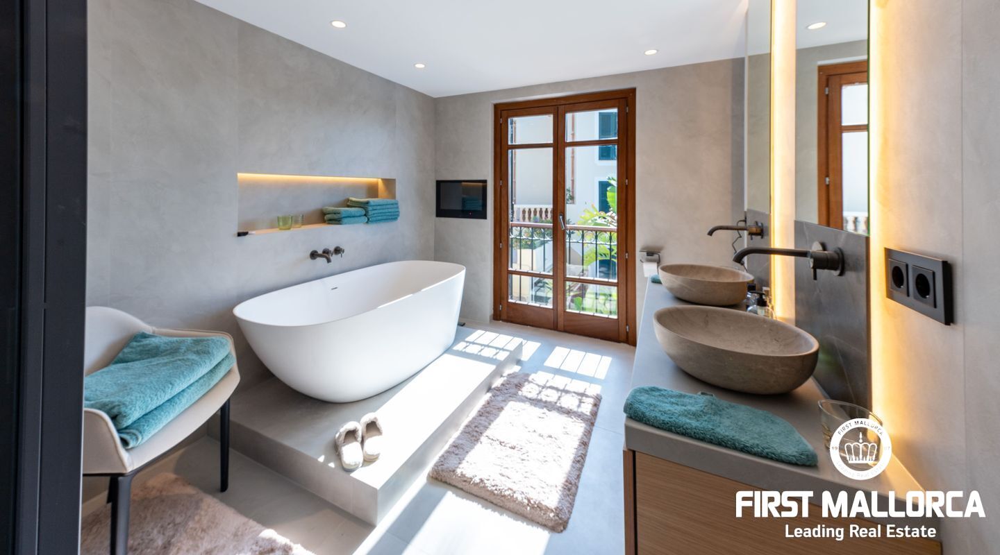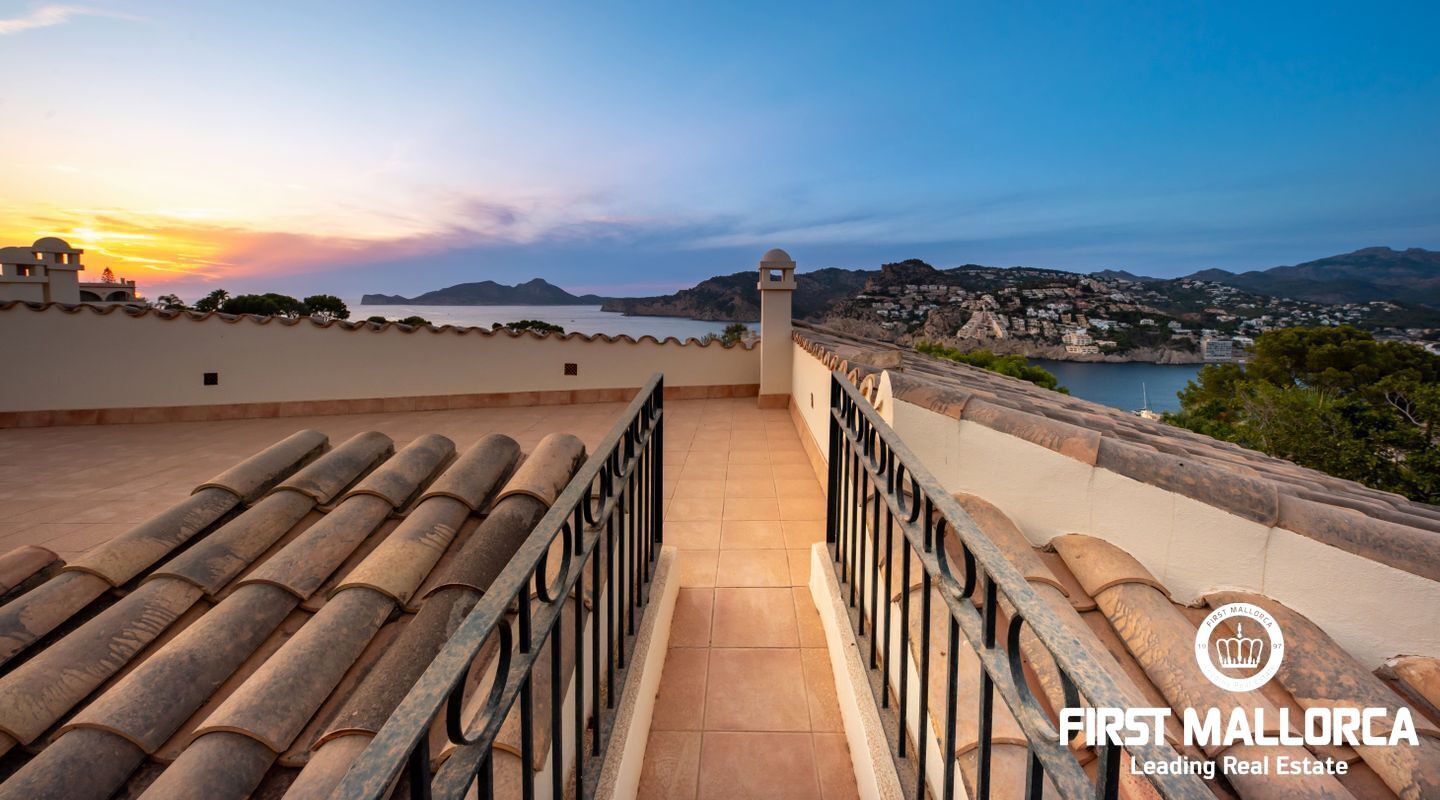 Die Küche ist offen gestaltet, mit Kücheninsel und hochwertigen Geräten ausgestattet. Das angrenzende Wohnzimmer mit elektrischem Kaminfeuer, direktem Blick auf das Meer und Dragonera ist geräumig genug für Familie und Freunde, auch hier gibt es Terrassenzugang.