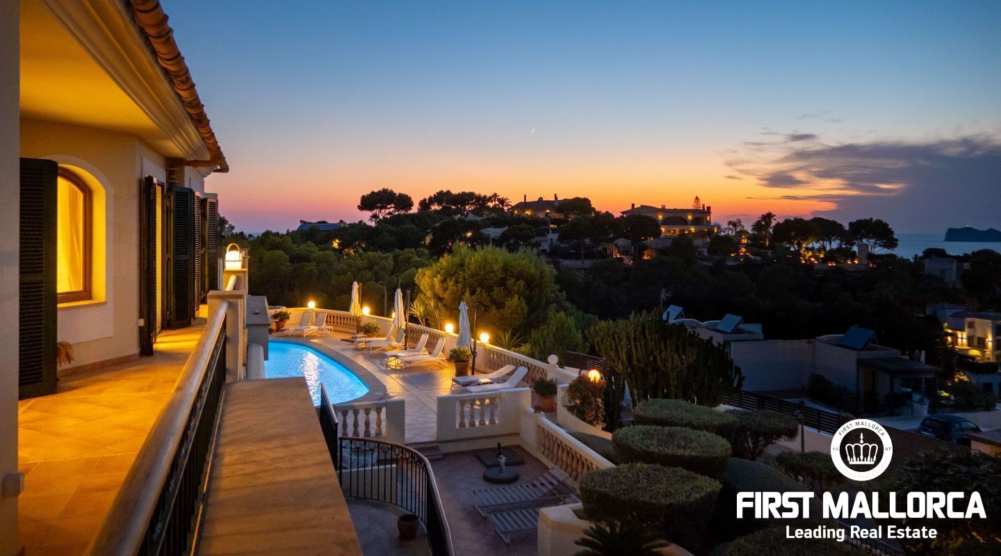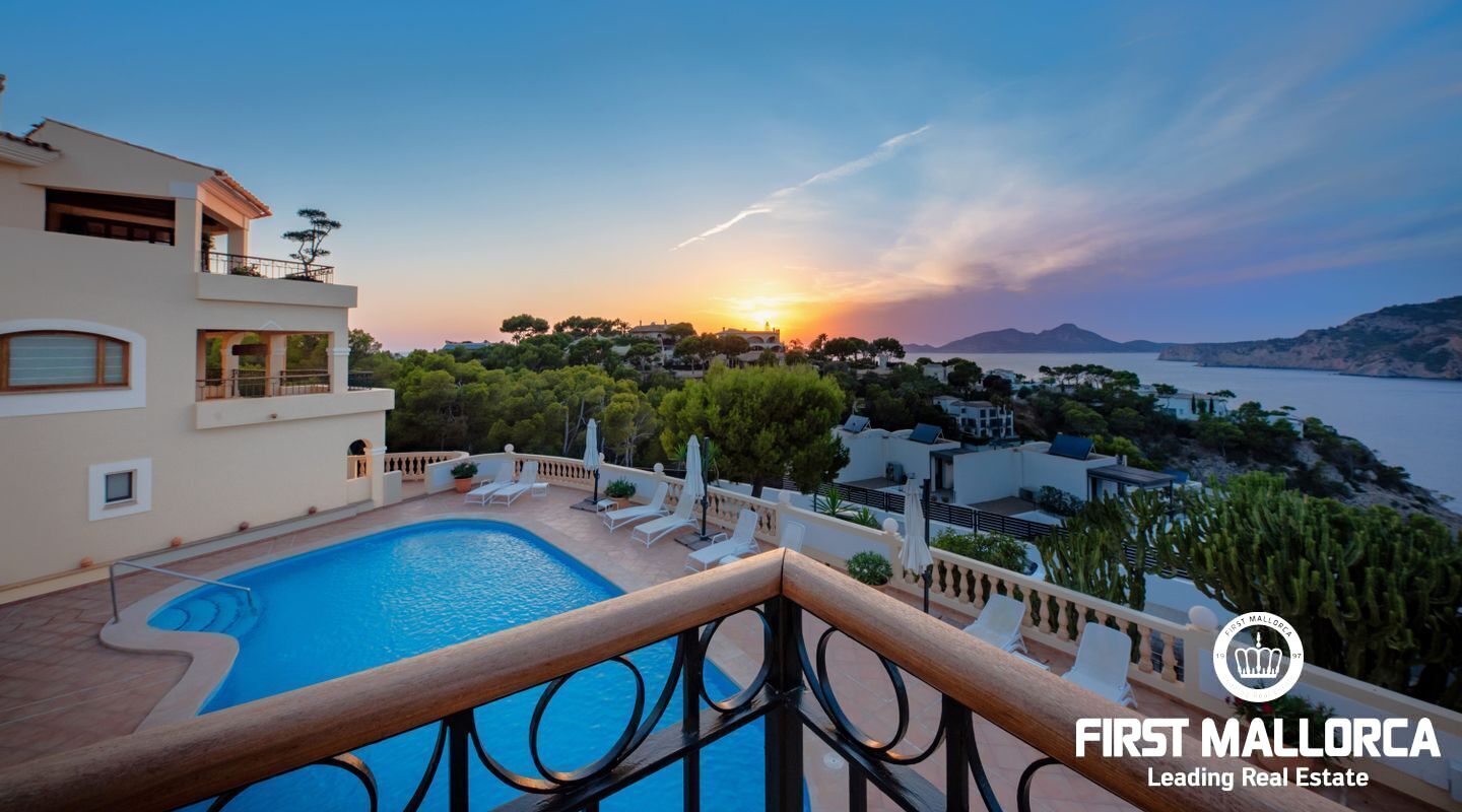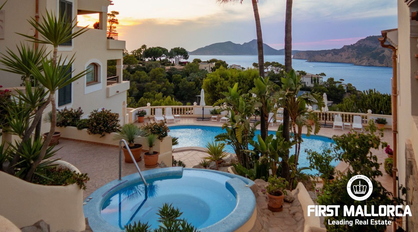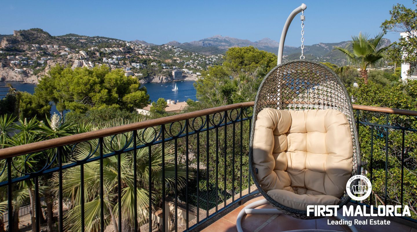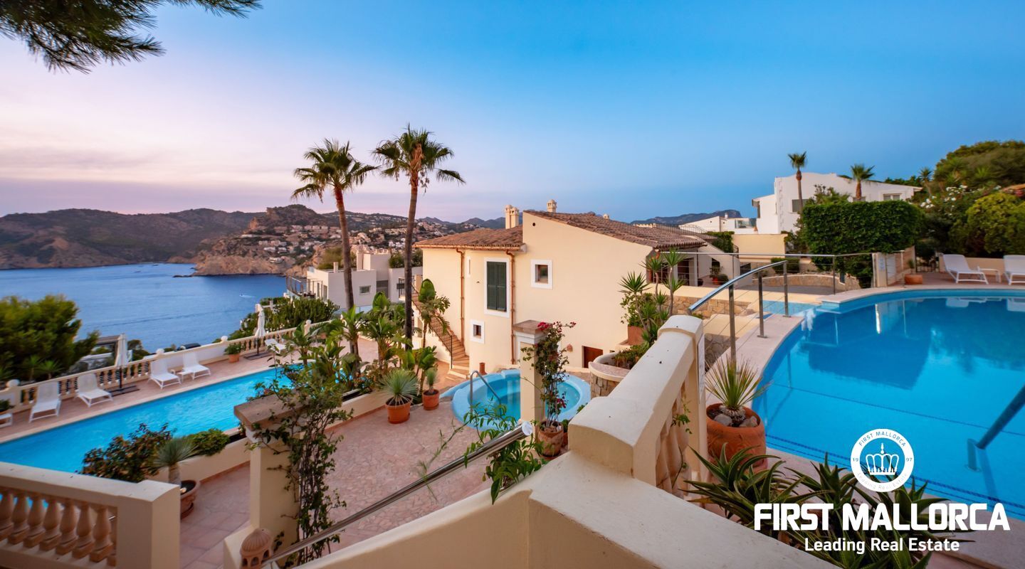 Die Küche ist offen gestaltet, mit Kücheninsel und hochwertigen Geräten ausgestattet. Das angrenzende Wohnzimmer mit elektrischem Kaminfeuer, direktem Blick auf das Meer und Dragonera ist geräumig genug für Familie und Freunde, auch hier gibt es Terrassenzugang.