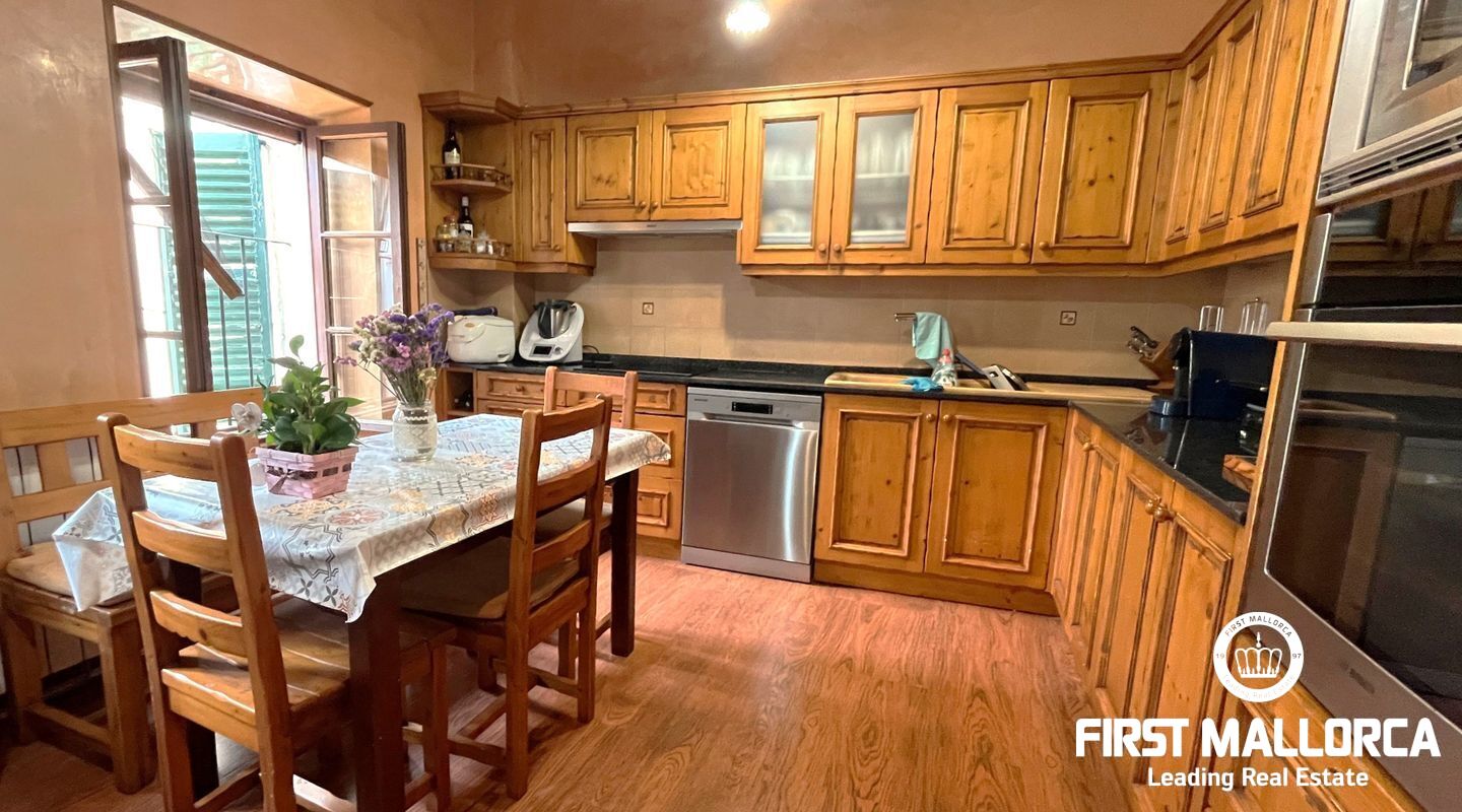 Insgesamt verfügt das Haus über drei Küchen, von denen zwei kürzlich renoviert wurden. Außerdem gibt es eine Waschküche, einen Innenhof mit beheiztem Swimmingpool und eine Dachterrasse mit herrlichem Blick auf die Kirche von Manacor.