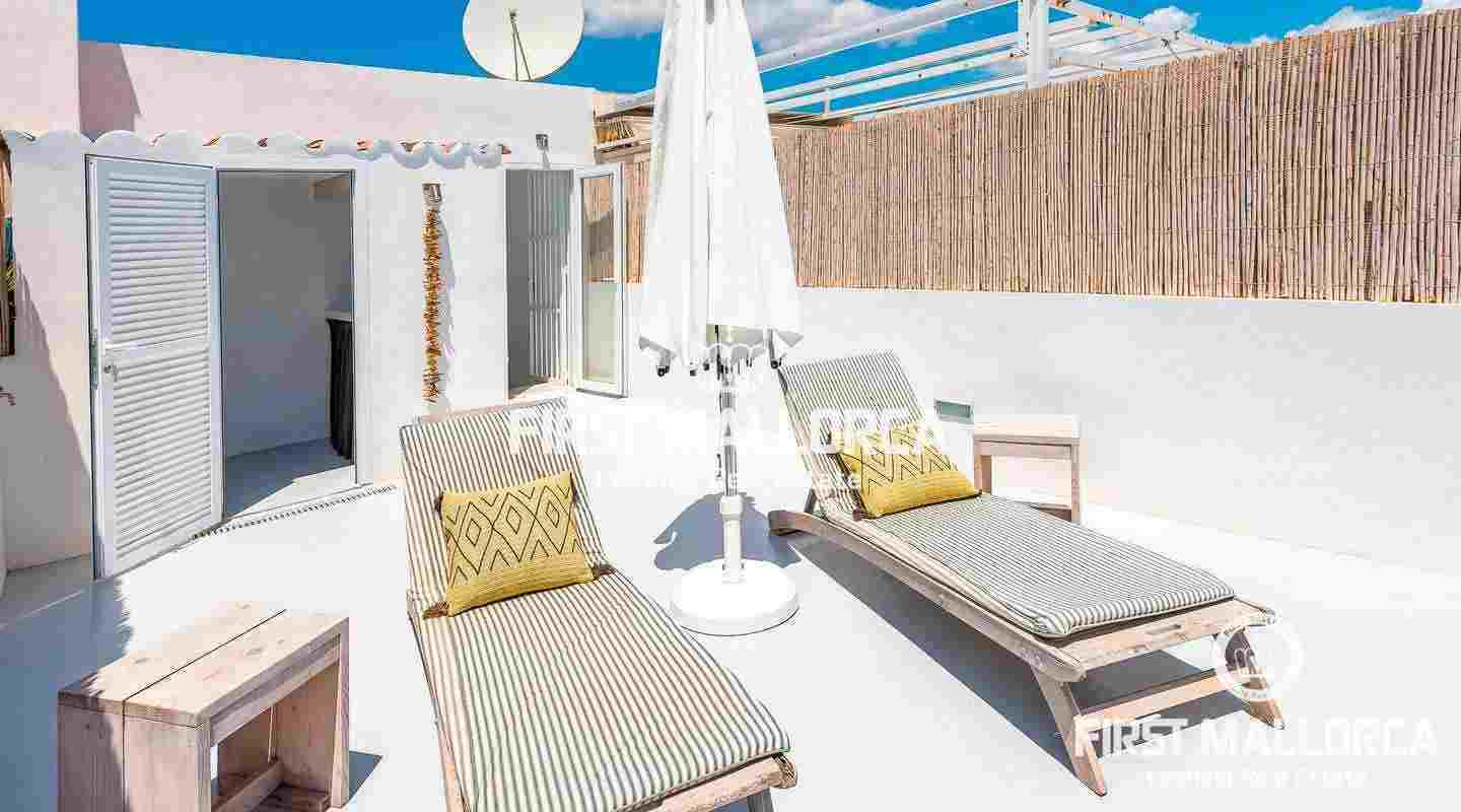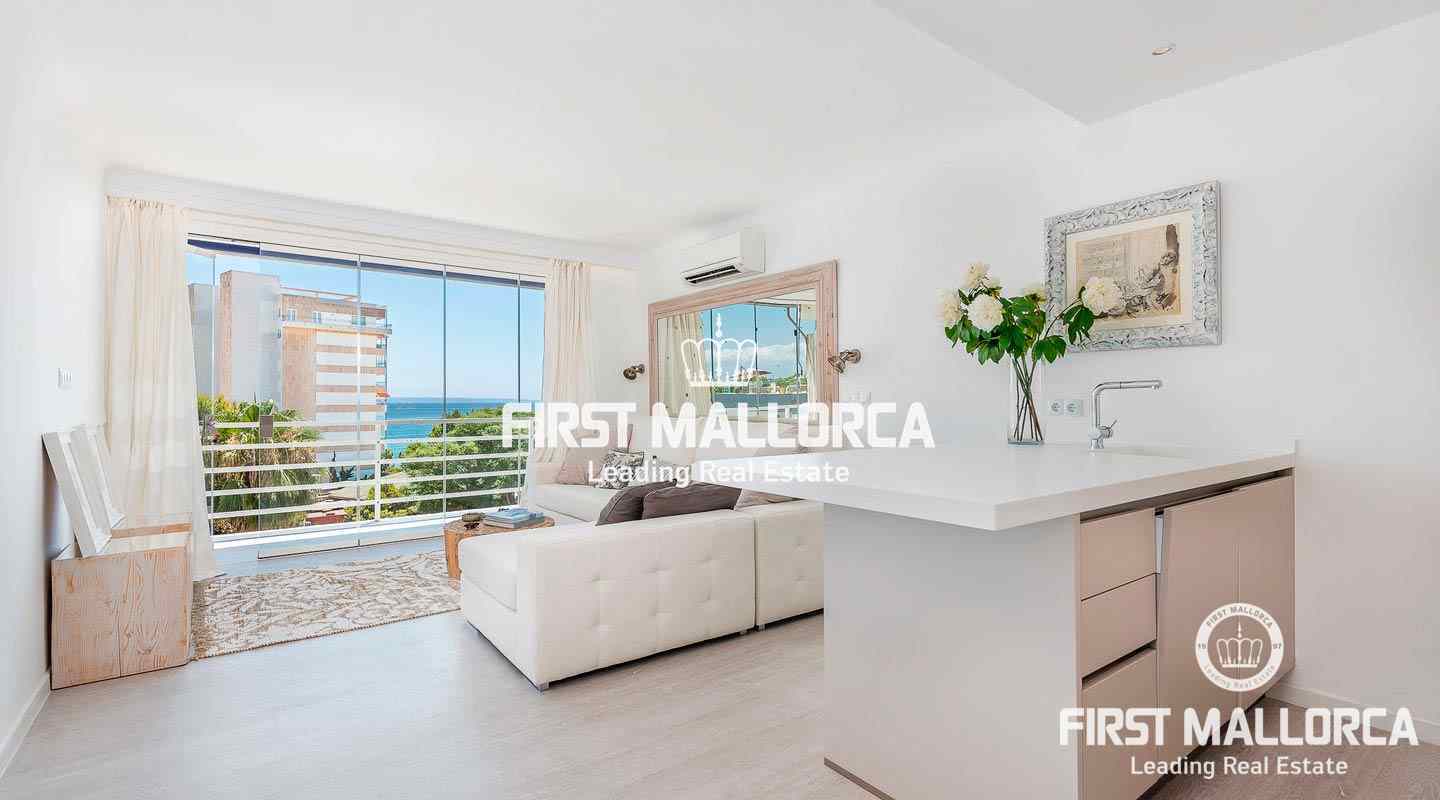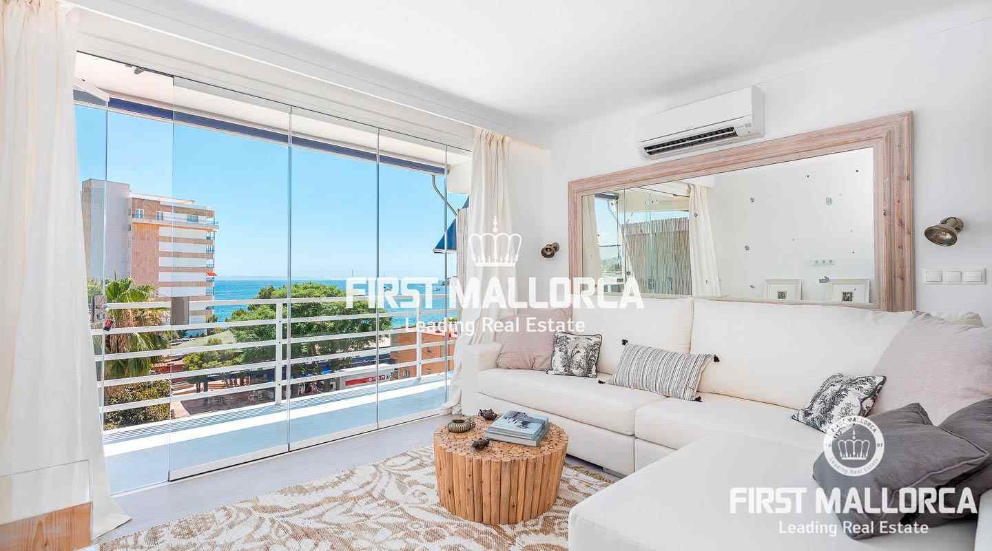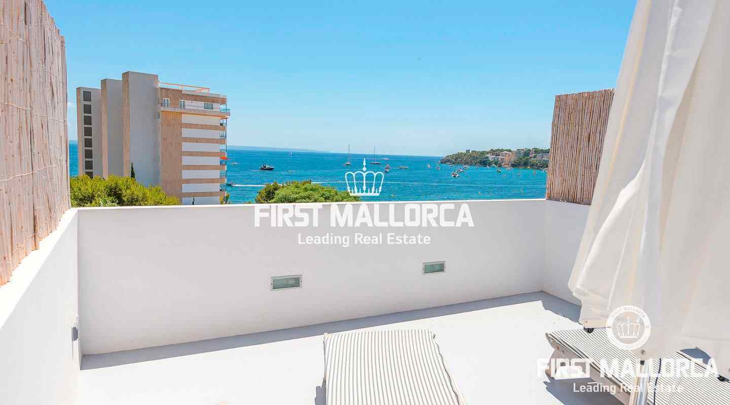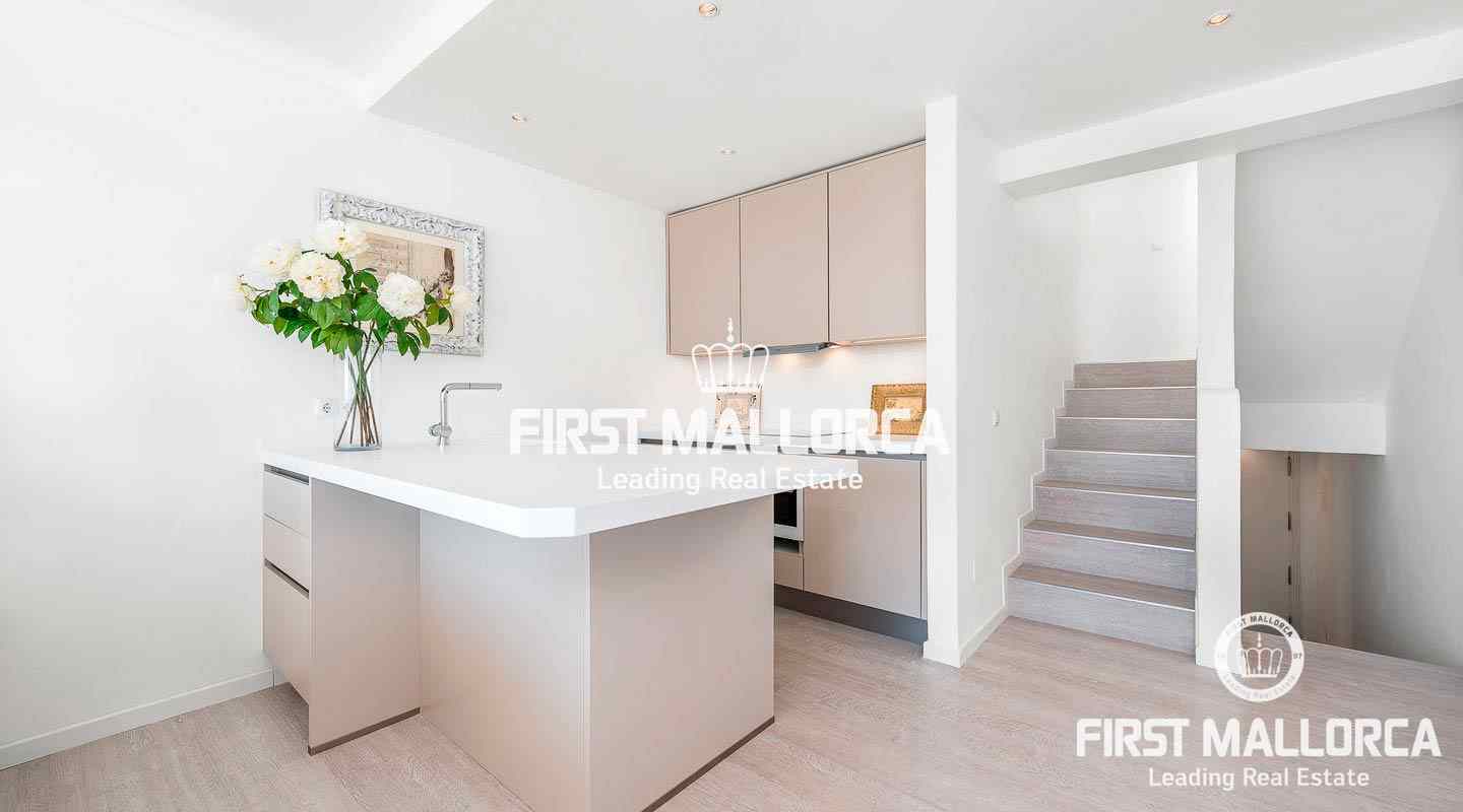 Komplett saniertes, wunderschönes Duplex-Penthouse mit herrlichem Blick auf das Meer und die Küste mit spektakulärer Aussicht bei Tag und bei Nacht. Diese Mallorca Immobilie ist makellos und bereits stilvoll eingerichtet - hier kann man sofort einziehen und das mediterrane Lebensgefühl genießen. Die Dachterrasse und der private Carport runden das Ganze ab und Geschäfte, Cafés und Restaurants sind direkt vor der Tür. Das Stadtzentrum von Palma ist nur 8 Minuten mit dem Auto entfernt. Der Internationale Flughafen ist in nur 20 Minuten zu erreichen.