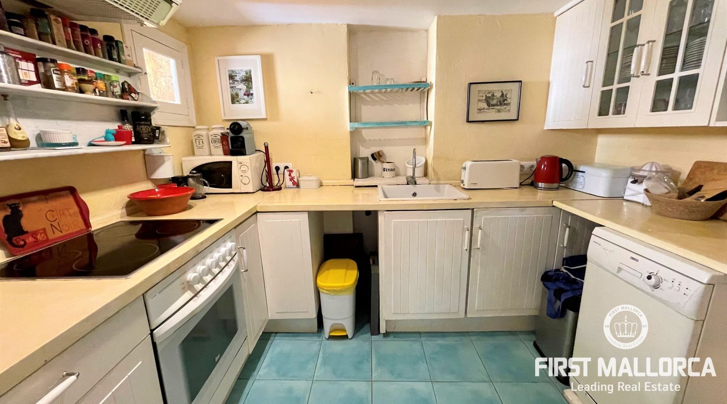 Dieses charmante Stadthaus am Stadtrand von Pollença zeichnet sich vor allem durch seine authentischen Originalmerkmale wie die Steinfassade und die Holzbalken aus, die den authentischen mallorquinischen Stil bewahren. Die Immobilie hat eine Gesamtgrundstücksgröße von 120 m2 und eine bebaute Fläche von 96 m2, die sich auf zwei Schlafzimmer und zwei Bäder, ein offenes, geräumiges Wohnzimmer und eine separate Einbauküche verteilt. Das Highlight dieser Immobilie ist die gemütliche Terrasse mit Garten auf der Rückseite, die genug Platz bietet, um den Bereich in eine Chill-out-Zone zu verwandeln, um Abende mit Familie und Freunden und die mallorquinische Sonne zu genießen. Die Immobilie verfügt auch über eine Lizenz für Ferienvermietungen, was eine hervorragende Investitionsmöglichkeit darstellt. Es ist eine ausgezeichnete Gelegenheit, in der Nähe des Zentrums von Pollença zu leben, wo Sie malerische Gassen und eine große Auswahl an Restaurants und Cafés sowie Zugang zu allen Annehmlichkeiten und wichtigen Dienstleistungen genießen können.