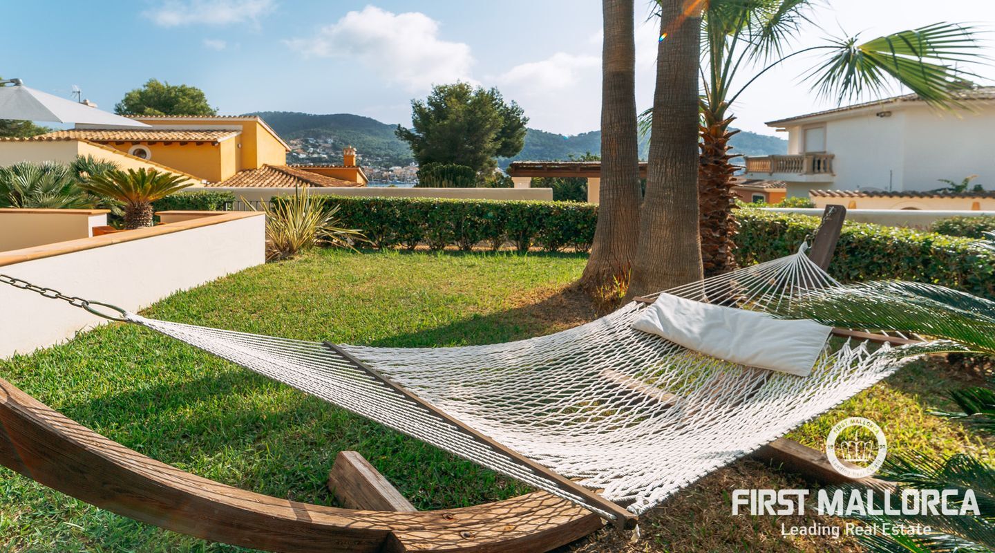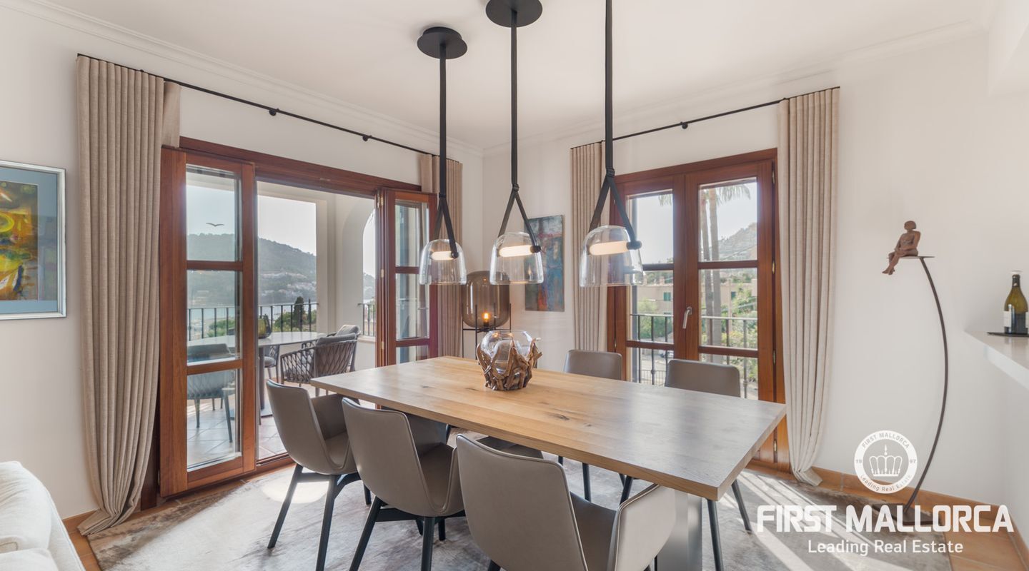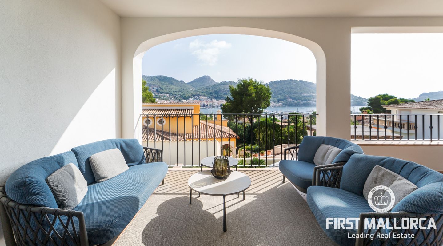 Dieses schicke Duplexapartment befindet sich fußläufig zum Hafen sowie allen Annehmlichkeiten von Port Andratx und bietet von beiden Ebenen Hafenblick. Die hochwertige ausgestattete Immobilie ist Teil einer sehr exklusiven Anlage mit nur sechs Einheiten und großem Gemeinschaftspool. Auf der Eingangsebene befindet sich der offene und helle Wohn-/Essbereich, der an eine überdachte Terrasse anschließt. Sowohl vom Innen- als auch vom Außenbereich genießt man einen Blick auf den romantischen Naturhafen von Puerto Andratx. Die großzügige überdachte Terrasse lädt durch ihre ideale Sonnenausrichtung das ganze Jahr dazu ein, das milde Klima Mallorcas und den mediterranen Lebensstil im Freien zu genießen. Im unteren Bereich der Wohnung befinden sich die 2 großen Schlafzimmer, jeweils mit eigenem Badezimmer. Von beiden Schlafzimmern hat man einen direkten Zugang auf eine weitere Terrasse, die an den privaten Garten anschließt. Auch von hier kann man den Blick auf den Hafen genießen und hat zudem einen direkten Zugang zum großen Gemeinschaftspool.