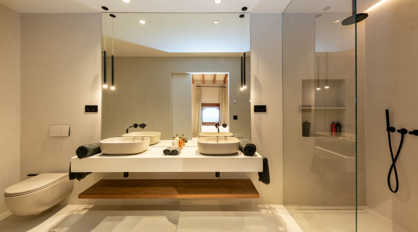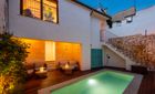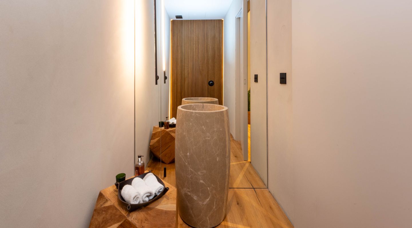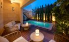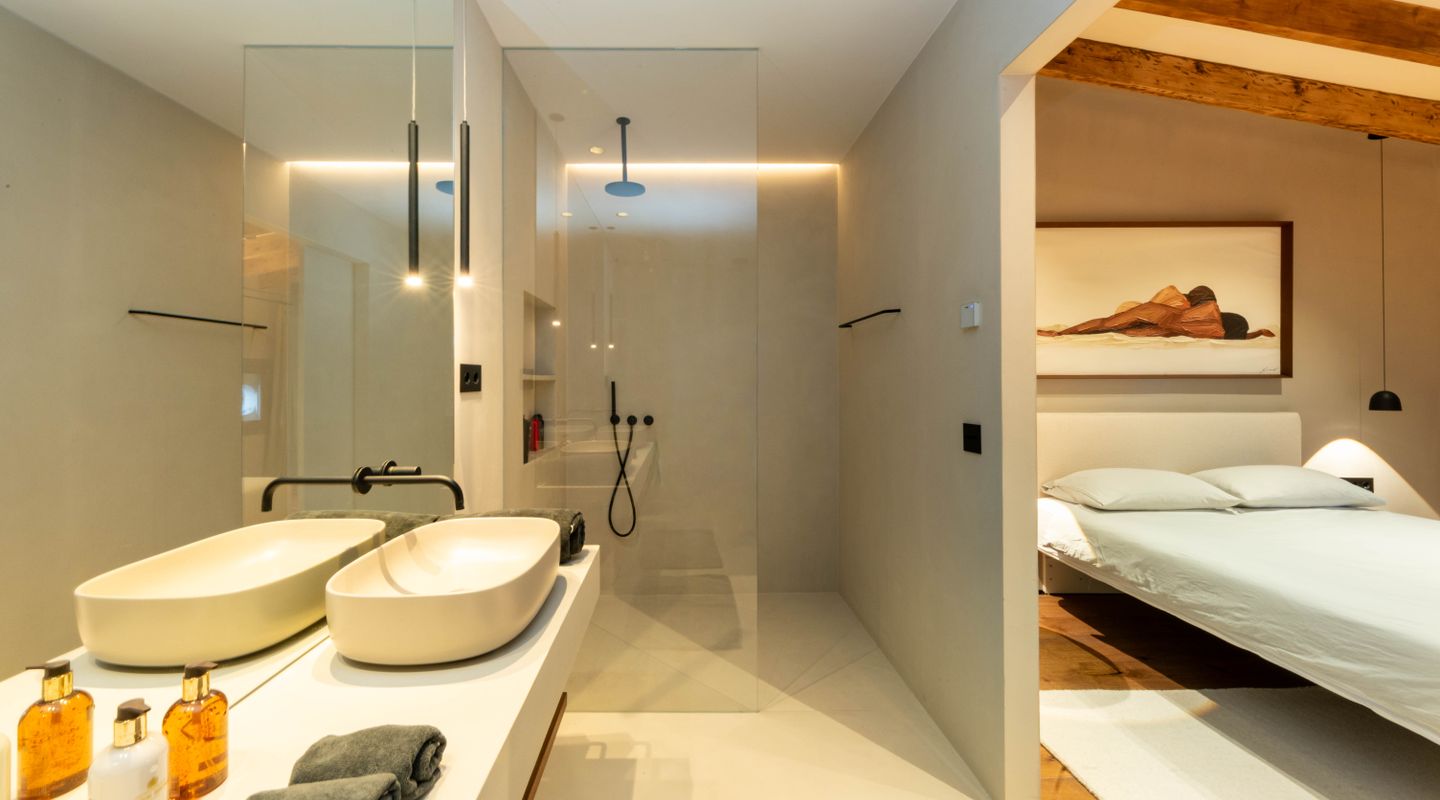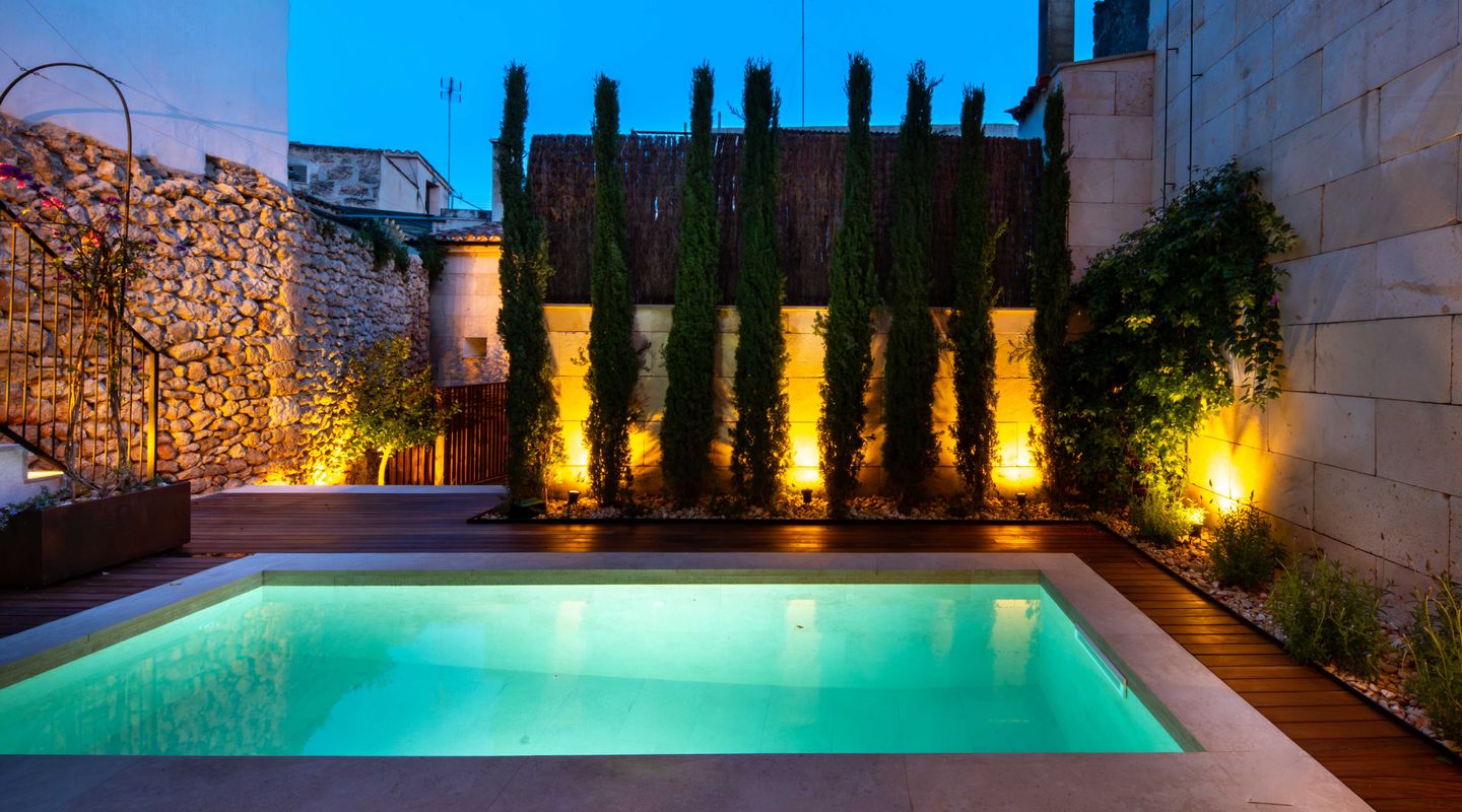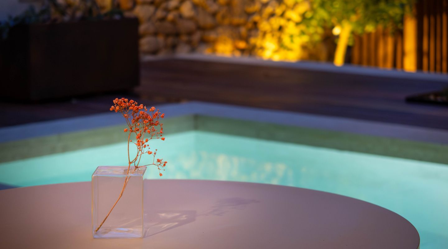 Die Außenbereiche schaffen eine private Oase im Dorfzentrum mit Swimmingpool, charmantem Esspatio, Terrasse und Balkonen mit offenem Ausblick. Eine seltene Besonderheit in dieser Lage ist die Garage für zwei Fahrzeuge, ergänzt durch großzügige Abstellflächen, Hauswirtschaftsraum, Fußbodenheizung in den Bädern sowie integrierte Klimaanlage mit Wärmepumpe.