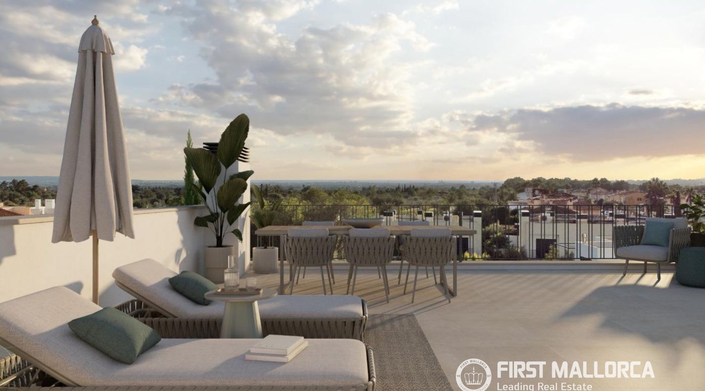 Diese exklusive, neu gebaute Doppelhaushälfte in Marratxí erstreckt sich über 3 Etagen und bietet 146 m² elegant gestaltete Wohnfläche mit 3 stilvollen Schlafzimmern und 3 modernen Badezimmern auf einem 243 m² großen, angelegten Grundstück.