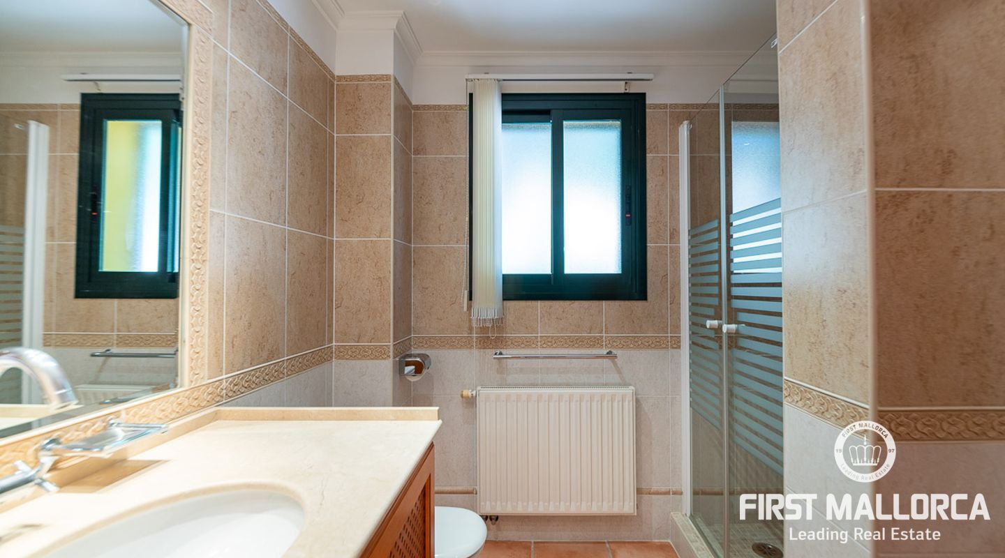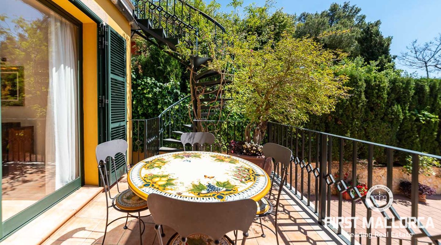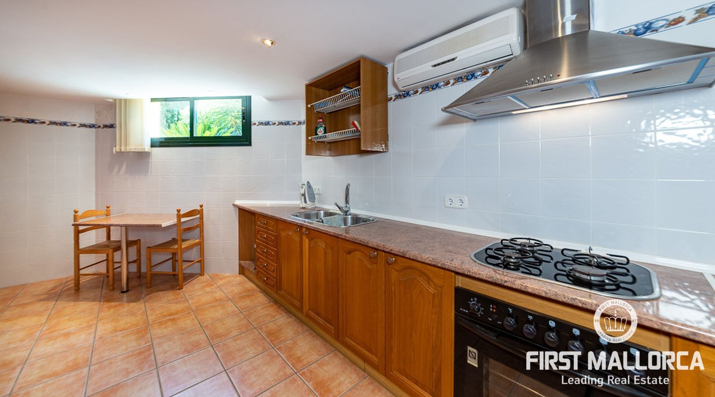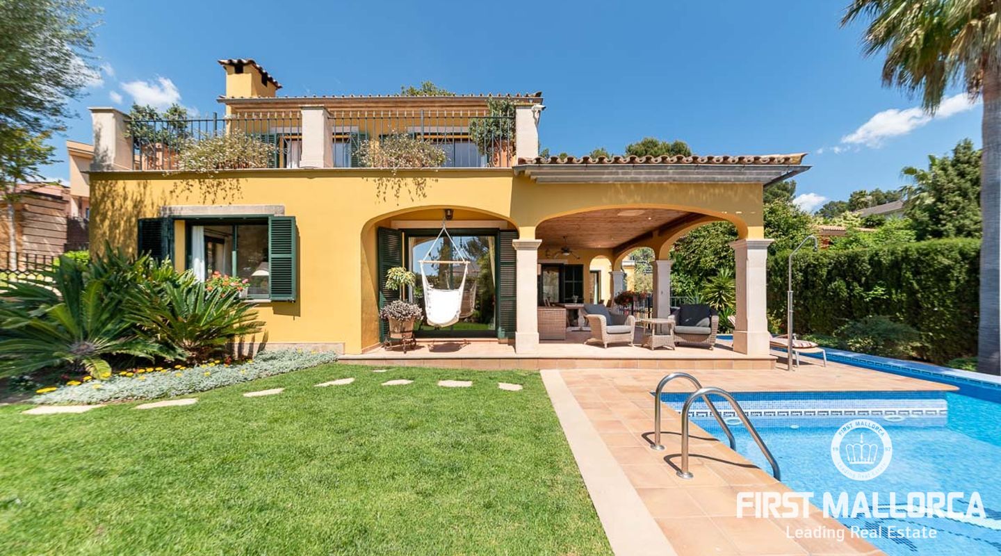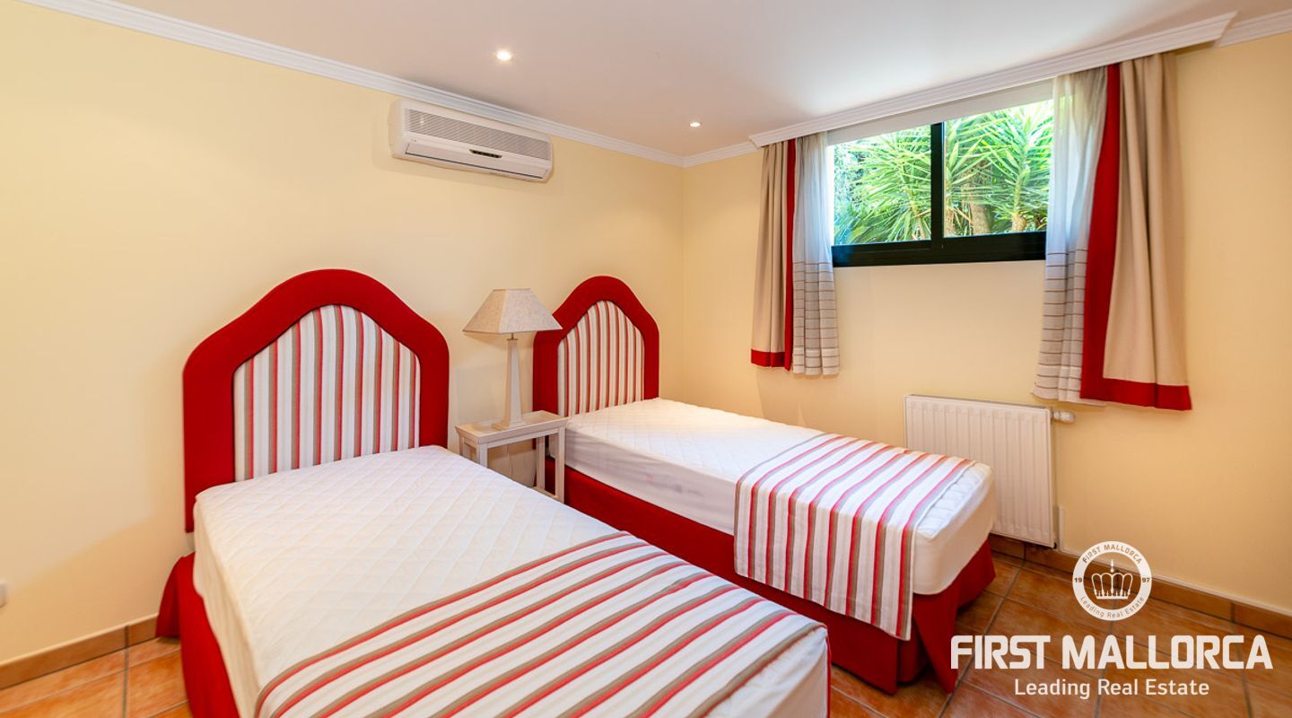 Dieses weitläufige Anwesen mit teilweisem Meerblick genießt eine privilegierte Lage in der Nähe des Golfplatzes Royal Bendinat und befindet sich in einer der begehrtesten Gegenden Mallorcas. Die Villa ist ideal für Familien, die eine großzügige Aufteilung benötigen, um gemeinsam oder mit Freunden zu genießen, da es viel Platz mit der folgenden Aufteilung gibt; Eingang in eine Empfangshalle mit dem Wohn-/Esszimmer in der Nähe genießen einen offenen Kamin und Türen, die auf die überdachte Terrasse und schönen Garten führen. Außerdem befinden sich auf dieser Ebene die voll ausgestattete Küche im Landhausstil, ein Doppelschlafzimmer mit eigenem Bad, ein Gäste-WC und eine Verbindungstür, die in den erst kürzlich errichteten Teil des Hauses führt. Dieser Bereich verfügt über ein Doppelschlafzimmer, ein 2º-Wohnzimmer mit Terrasse und eine Treppe, die hinunter in die untere Ebene führt, wo sich ein Gästeapartment mit zwei Schlafzimmern, einer Kochnische und einem Wohnzimmer, ein Fitnessraum, ein Weinkeller, eine Waschküche, ein großes Lager und die Garage befinden. Die obere Ebene des Anwesens besteht aus einem Hauptschlafzimmer mit eigenem Bad, begehbarem Kleiderschrank und einer privaten offenen Terrasse. Zusätzlich gibt es ein weiteres Doppelschlafzimmer mit eigenem Bad, das direkten Zugang zu einer großen Terrasse hat.
