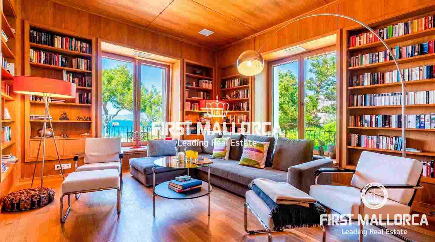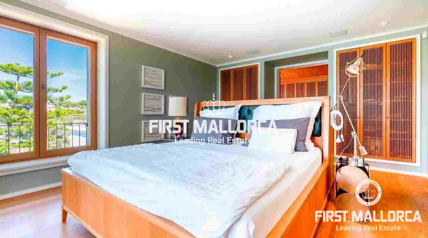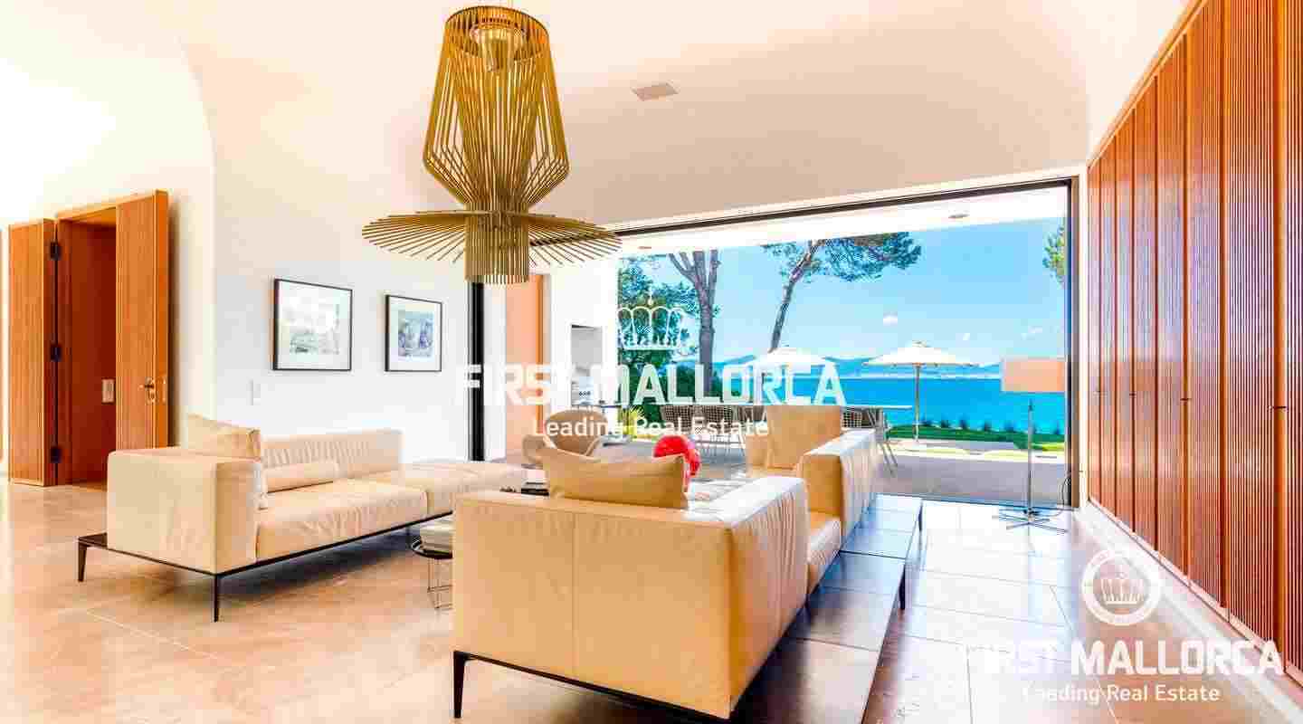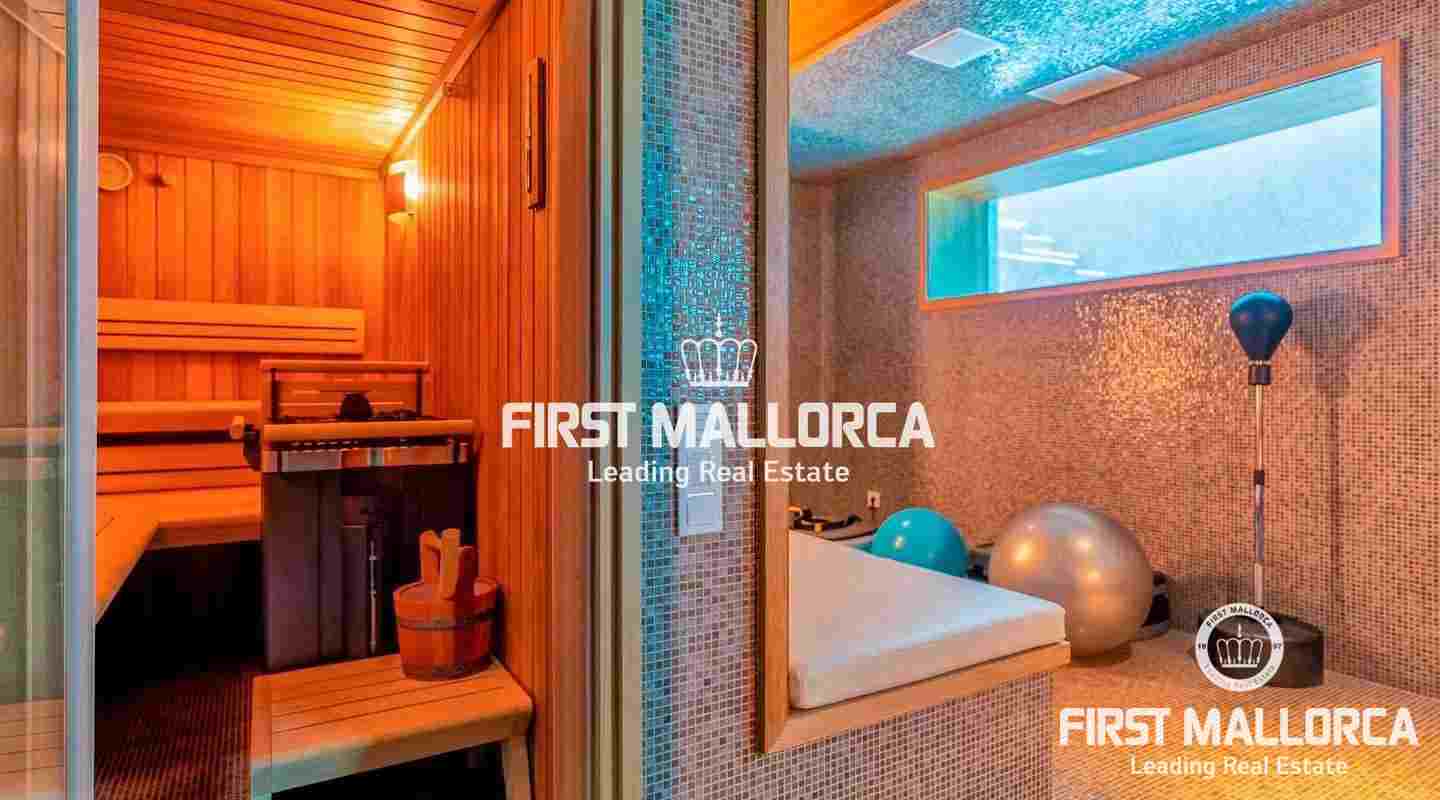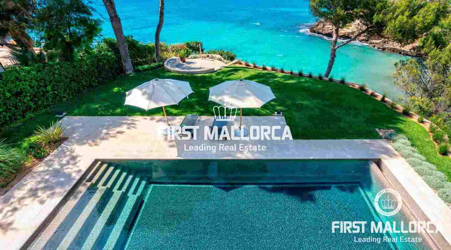 Dieses Anwesen in der Urbanisation Cala Blava ist schwer zu beschreiben, man muss es mit eigenen Augen gesehen haben. Die absolut private Lage direkt am türkisblauen Wasser mit unvergleichlichem Blick und direktem Zugang zum Strand, sowie das einzigartige Design der Immobilie unterscheiden diese Villa wohl von den meisten. Im Erdgeschoss befinden sich neben einem großen Wohnbereich eine Luxus Einbauküche, eine Bibliothek, sowie ein Gästebereich mit 3 Schlafzimmern mit Bädern ensuite. Komplett versenkbare Fenster auf dieser Ebene ermöglichen einen fliessenden Übergang der Wohnebene mit dem Außenbereich und dem wunderschönem großen Pool. Im Obergeschoss befinden sich weitere 3 Schlafzimmer ebenfalls mit eigenen Badezimmern und privaten Terrassen. Das Untergeschoss ist mit Waschküche, einem SPA mit Fitnessstudio plus Sauna und einem Weinkeller ausgestattet. Weitere Details sind: Klimaanlage warm/ kalt, Fußbodenheizung, Garage, Musiksystem, Trinkwasseraufbereitung, Kamin u.v.m. Nur unschwer können Worte wiedergeben was sich dem Betrachter der Villa eröffnet. Wenn Sie eine besondere Immobilie suchen so zögern Sie bitte nicht einen Besichtigungstermin mit einem der charmanten Verkaufsberater von First Mallorca zu vereinbaren.