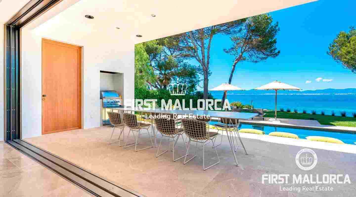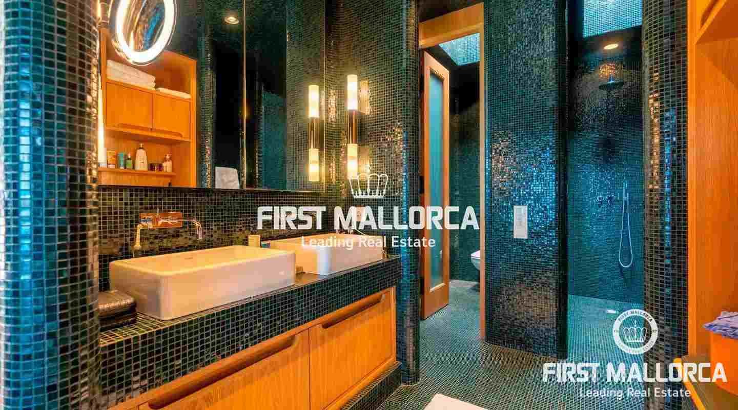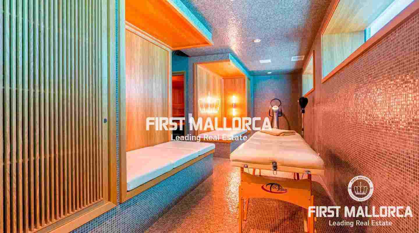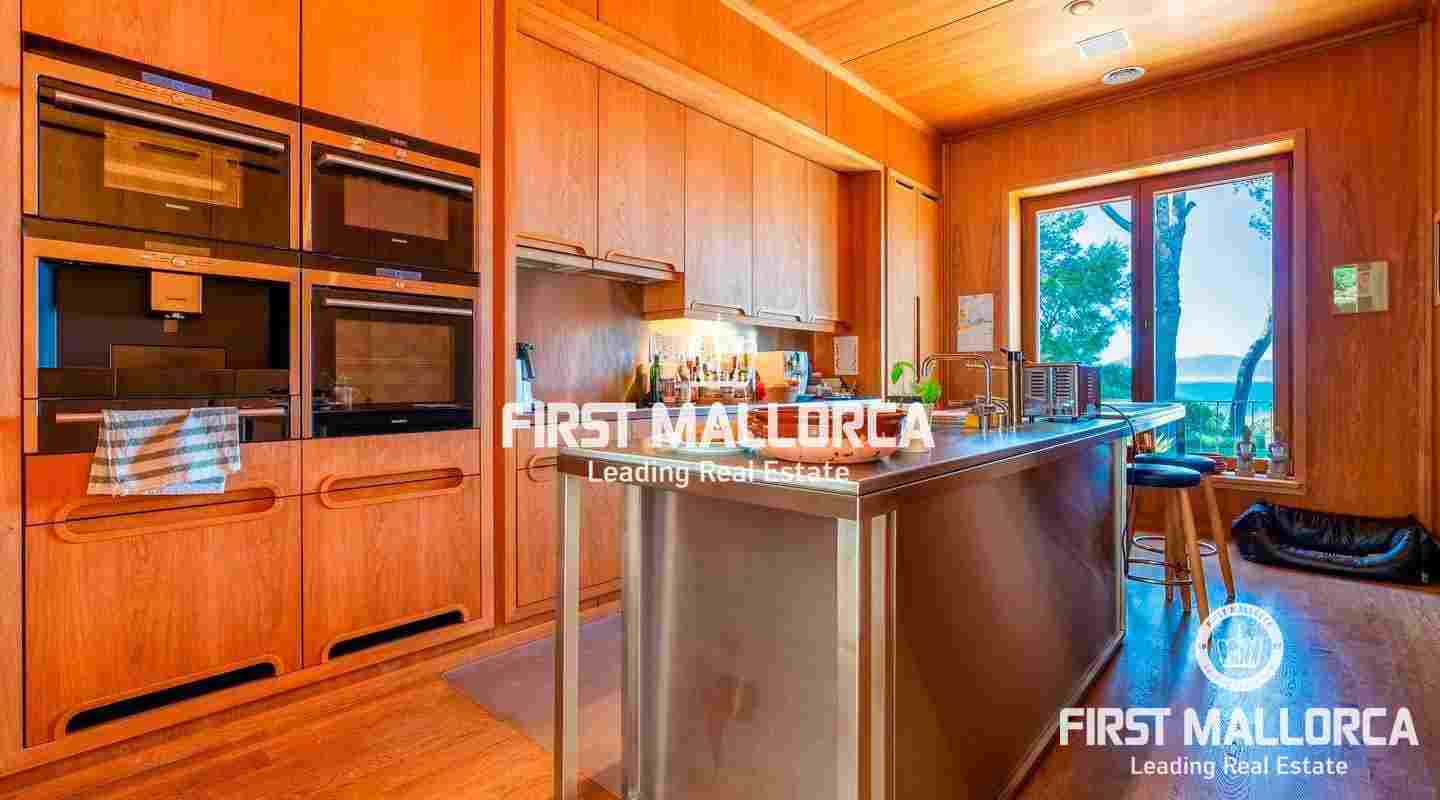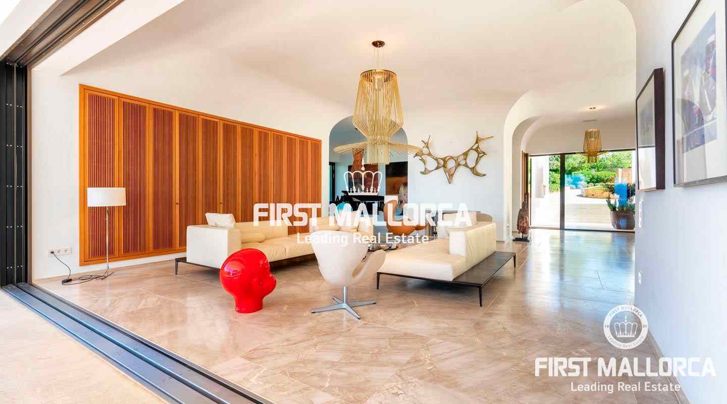 Dieses Anwesen in der Urbanisation Cala Blava ist schwer zu beschreiben, man muss es mit eigenen Augen gesehen haben. Die absolut private Lage direkt am türkisblauen Wasser mit unvergleichlichem Blick und direktem Zugang zum Strand, sowie das einzigartige Design der Immobilie unterscheiden diese Villa wohl von den meisten. Im Erdgeschoss befinden sich neben einem großen Wohnbereich eine Luxus Einbauküche, eine Bibliothek, sowie ein Gästebereich mit 3 Schlafzimmern mit Bädern ensuite. Komplett versenkbare Fenster auf dieser Ebene ermöglichen einen fliessenden Übergang der Wohnebene mit dem Außenbereich und dem wunderschönem großen Pool. Im Obergeschoss befinden sich weitere 3 Schlafzimmer ebenfalls mit eigenen Badezimmern und privaten Terrassen. Das Untergeschoss ist mit Waschküche, einem SPA mit Fitnessstudio plus Sauna und einem Weinkeller ausgestattet. Weitere Details sind: Klimaanlage warm/ kalt, Fußbodenheizung, Garage, Musiksystem, Trinkwasseraufbereitung, Kamin u.v.m. Nur unschwer können Worte wiedergeben was sich dem Betrachter der Villa eröffnet. Wenn Sie eine besondere Immobilie suchen so zögern Sie bitte nicht einen Besichtigungstermin mit einem der charmanten Verkaufsberater von First Mallorca zu vereinbaren.