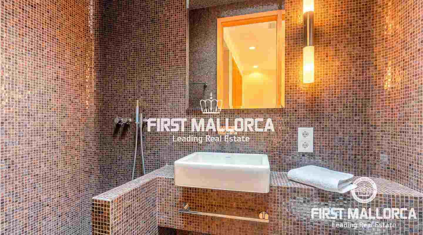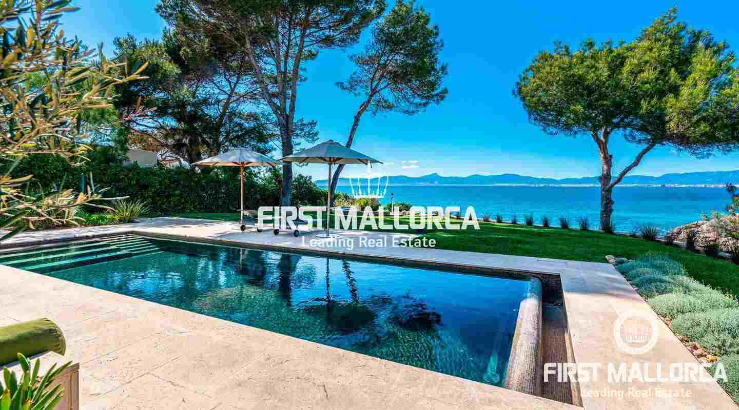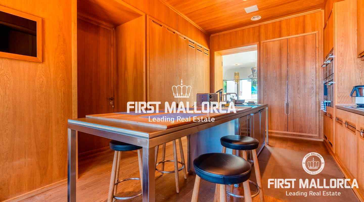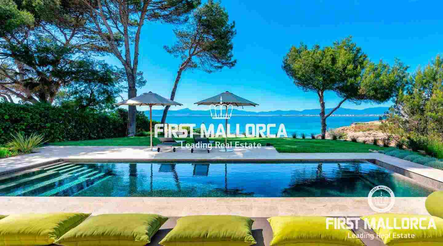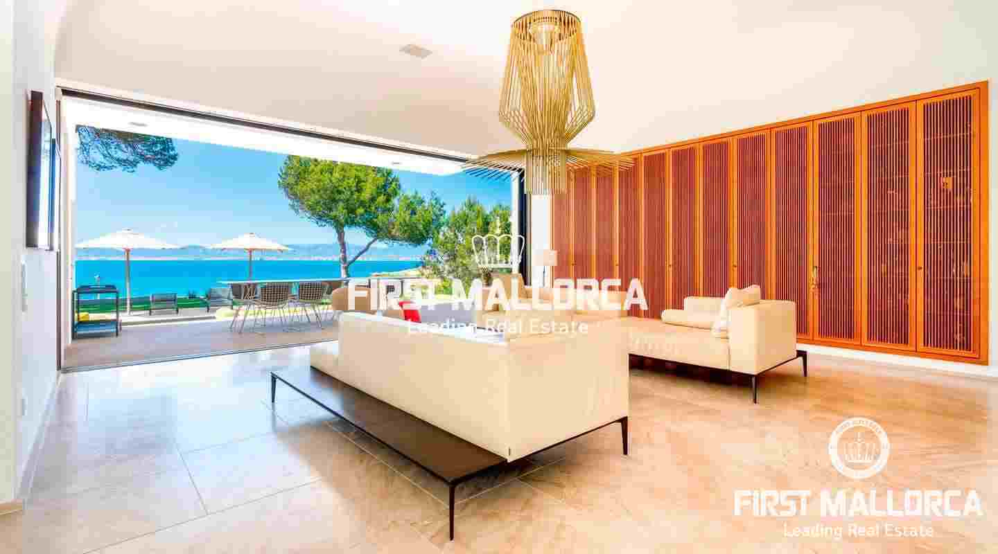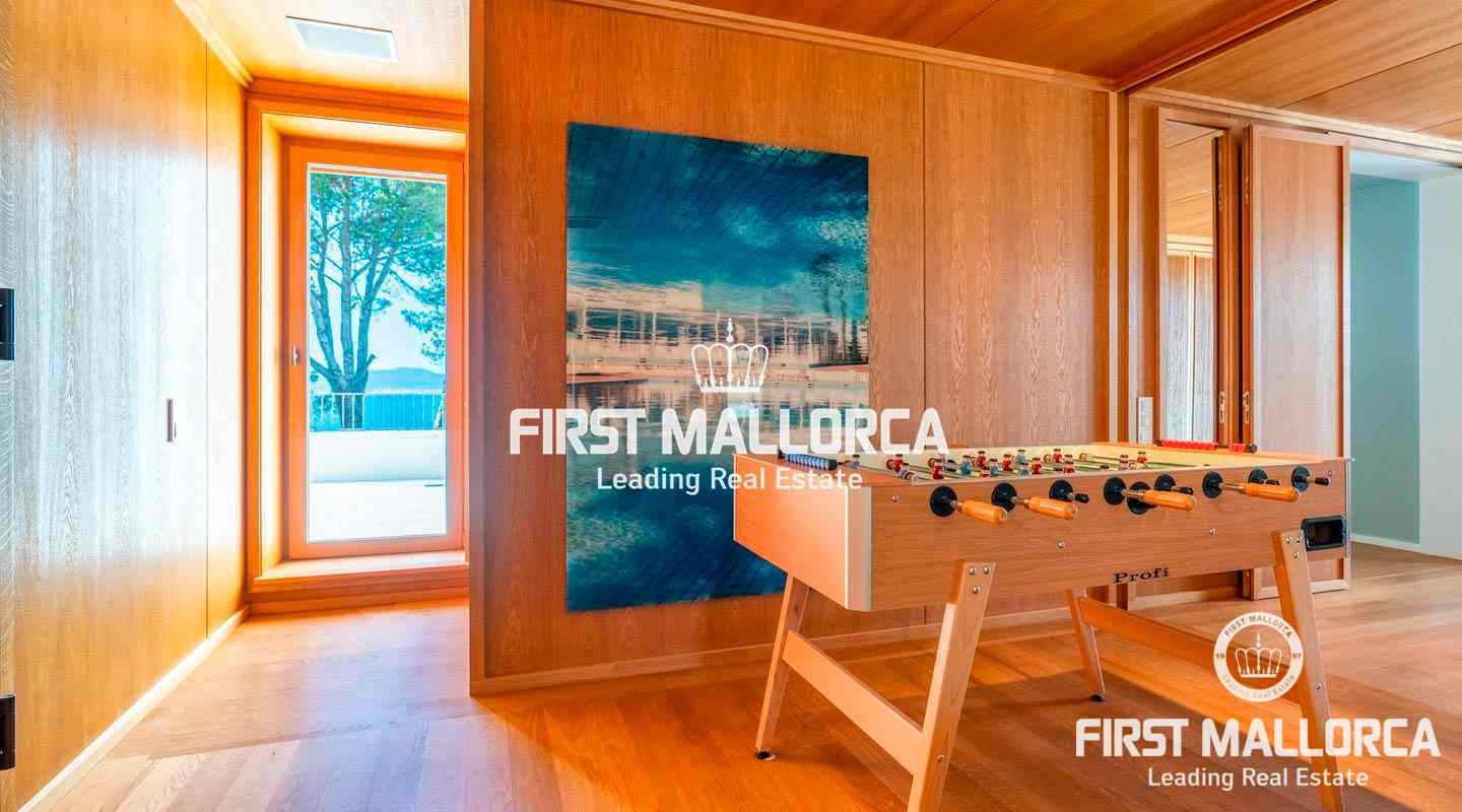 Dieses Anwesen in der Urbanisation Cala Blava ist schwer zu beschreiben, man muss es mit eigenen Augen gesehen haben. Die absolut private Lage direkt am türkisblauen Wasser mit unvergleichlichem Blick und direktem Zugang zum Strand, sowie das einzigartige Design der Immobilie unterscheiden diese Villa wohl von den meisten. Im Erdgeschoss befinden sich neben einem großen Wohnbereich eine Luxus Einbauküche, eine Bibliothek, sowie ein Gästebereich mit 3 Schlafzimmern mit Bädern ensuite. Komplett versenkbare Fenster auf dieser Ebene ermöglichen einen fliessenden Übergang der Wohnebene mit dem Außenbereich und dem wunderschönem großen Pool. Im Obergeschoss befinden sich weitere 3 Schlafzimmer ebenfalls mit eigenen Badezimmern und privaten Terrassen. Das Untergeschoss ist mit Waschküche, einem SPA mit Fitnessstudio plus Sauna und einem Weinkeller ausgestattet. Weitere Details sind: Klimaanlage warm/ kalt, Fußbodenheizung, Garage, Musiksystem, Trinkwasseraufbereitung, Kamin u.v.m. Nur unschwer können Worte wiedergeben was sich dem Betrachter der Villa eröffnet. Wenn Sie eine besondere Immobilie suchen so zögern Sie bitte nicht einen Besichtigungstermin mit einem der charmanten Verkaufsberater von First Mallorca zu vereinbaren.