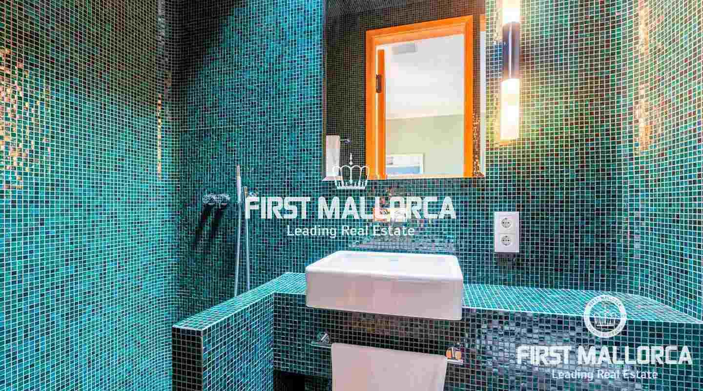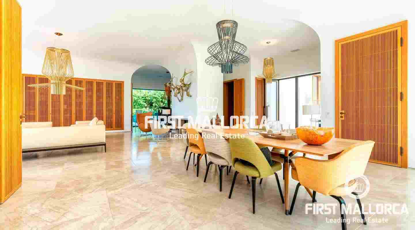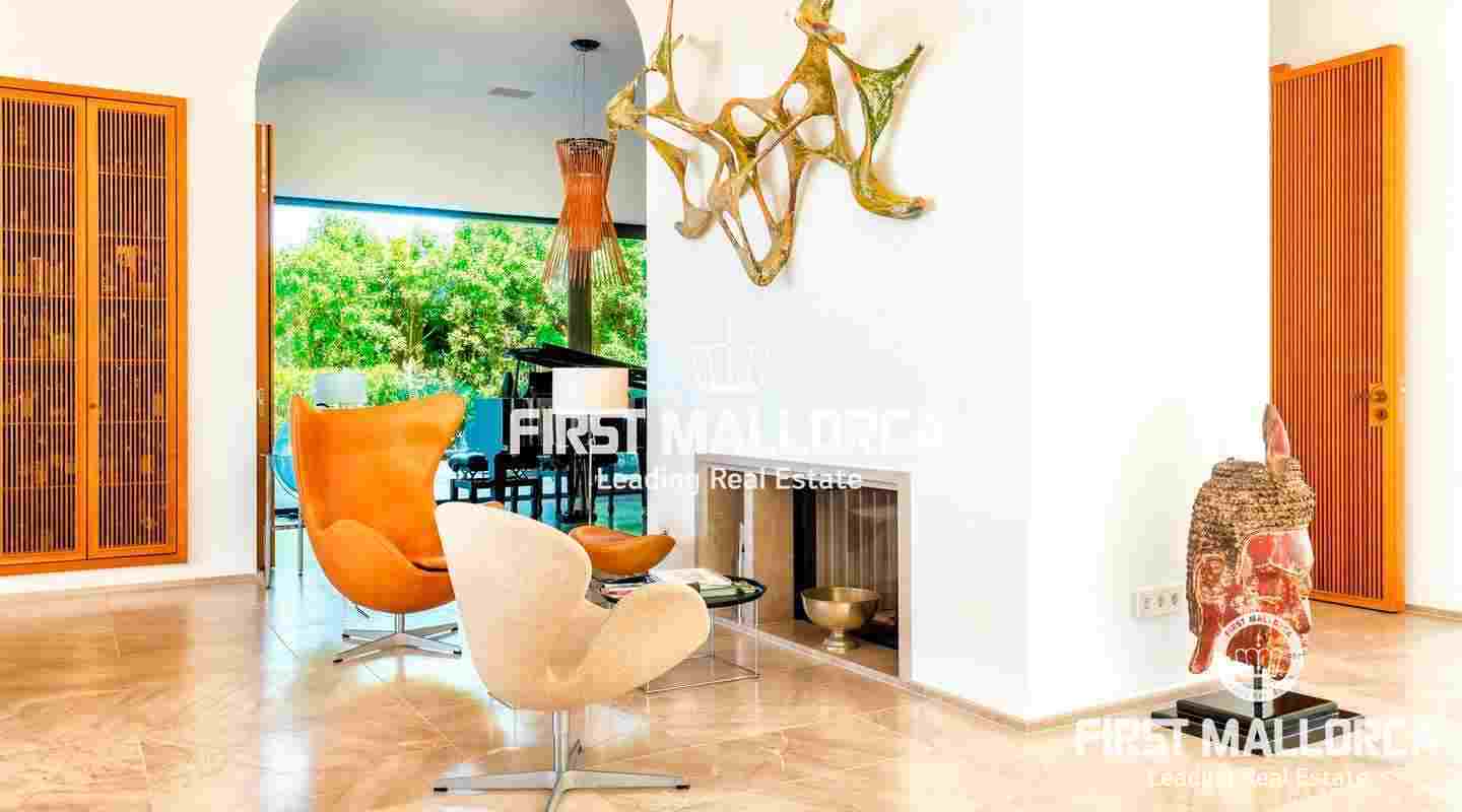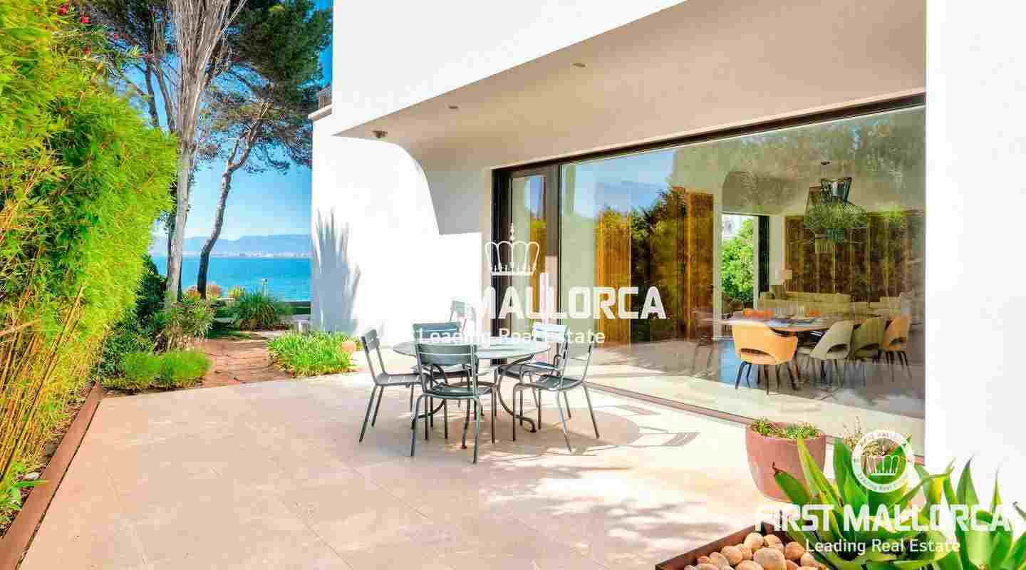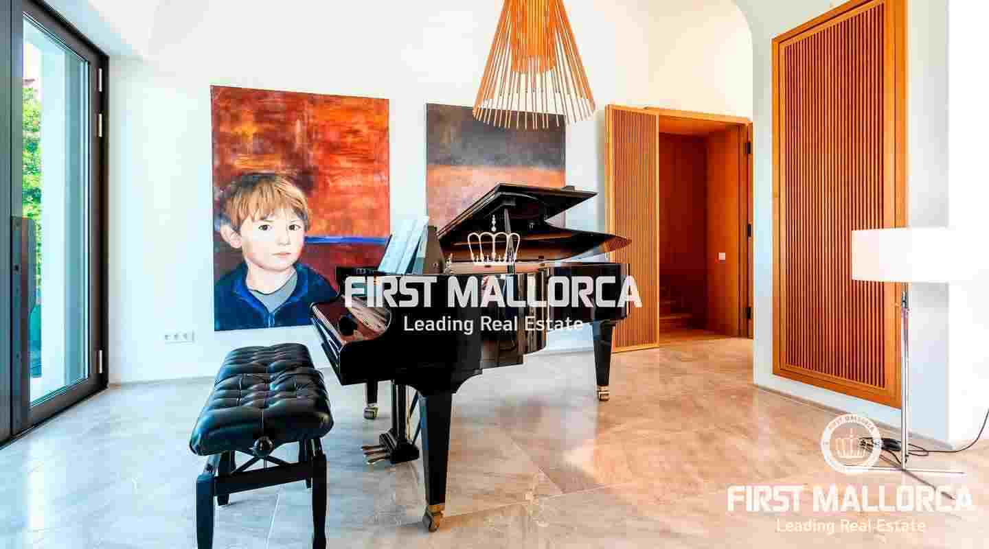 Dieses Anwesen in der Urbanisation Cala Blava ist schwer zu beschreiben, man muss es mit eigenen Augen gesehen haben. Die absolut private Lage direkt am türkisblauen Wasser mit unvergleichlichem Blick und direktem Zugang zum Strand, sowie das einzigartige Design der Immobilie unterscheiden diese Villa wohl von den meisten. Im Erdgeschoss befinden sich neben einem großen Wohnbereich eine Luxus Einbauküche, eine Bibliothek, sowie ein Gästebereich mit 3 Schlafzimmern mit Bädern ensuite. Komplett versenkbare Fenster auf dieser Ebene ermöglichen einen fliessenden Übergang der Wohnebene mit dem Außenbereich und dem wunderschönem großen Pool. Im Obergeschoss befinden sich weitere 3 Schlafzimmer ebenfalls mit eigenen Badezimmern und privaten Terrassen. Das Untergeschoss ist mit Waschküche, einem SPA mit Fitnessstudio plus Sauna und einem Weinkeller ausgestattet. Weitere Details sind: Klimaanlage warm/ kalt, Fußbodenheizung, Garage, Musiksystem, Trinkwasseraufbereitung, Kamin u.v.m. Nur unschwer können Worte wiedergeben was sich dem Betrachter der Villa eröffnet. Wenn Sie eine besondere Immobilie suchen so zögern Sie bitte nicht einen Besichtigungstermin mit einem der charmanten Verkaufsberater von First Mallorca zu vereinbaren.