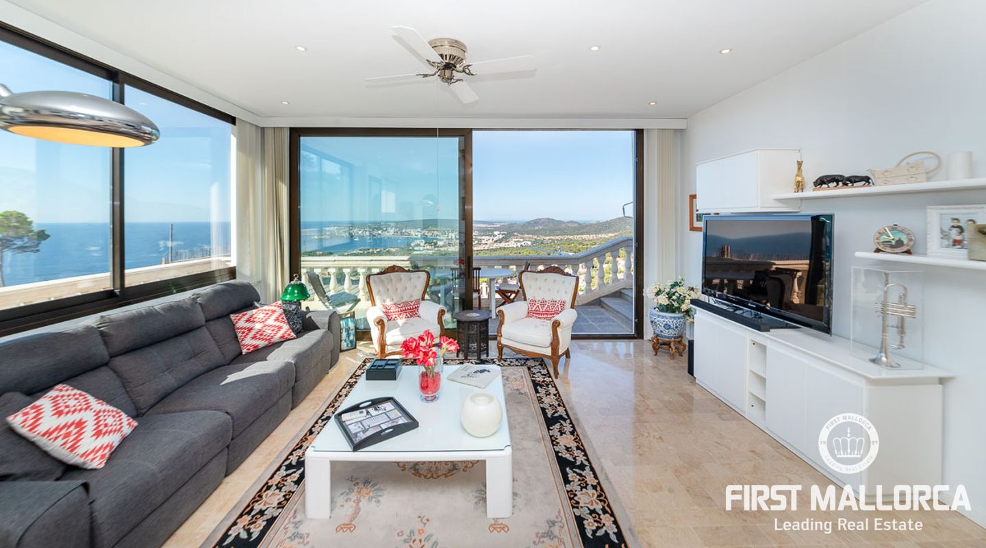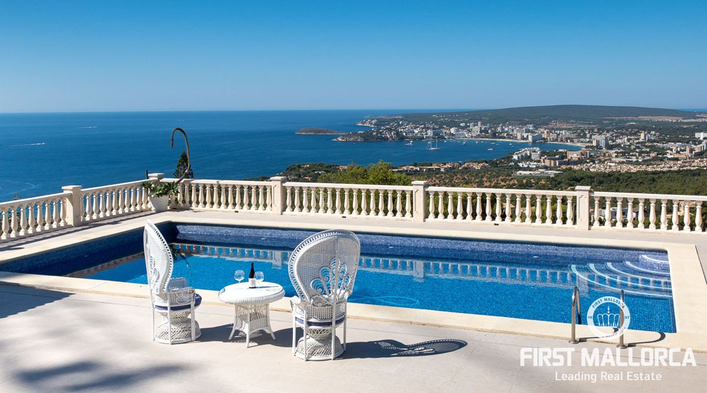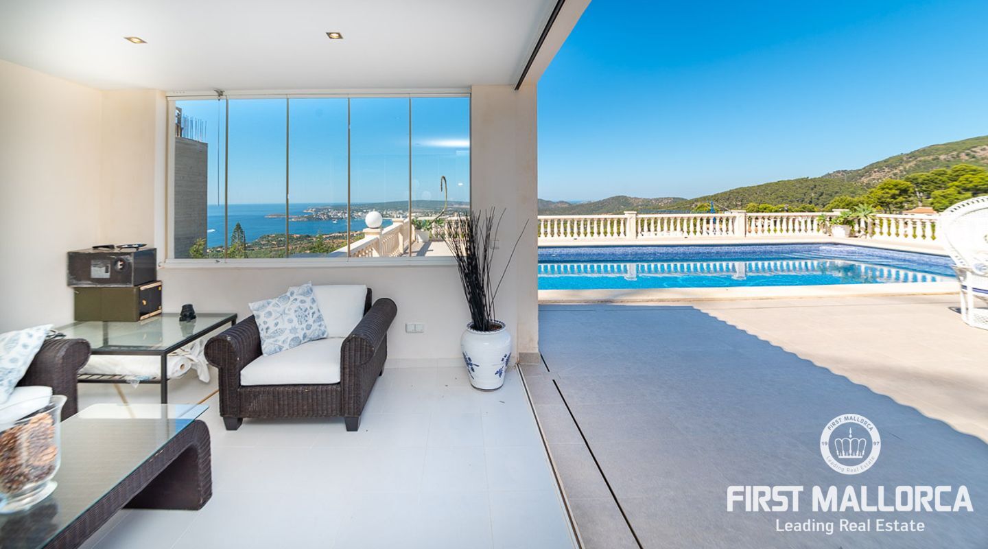 Es gibt nur wenige Gelegenheiten, bei denen wir das Vergnügen haben, eine Lage wie diese auf Mallorca anzubieten: Ein Adlernest, das einen atemberaubenden Blick auf die Südwestküste der Insel mit der beeindruckenden Landzunge El Toro und dem Leuchtturm von Cala Figuera sowie auf das offene Mittelmeer bietet. Die Villa erstreckt sich über zwei Ebenen mit viel Platz im Inneren sowie großzügigen Terrassen, die von einem großen Swimmingpool und einem Essbereich im Freien gekrönt werden. Das Anwesen verfügt außerdem über eine Doppelgarage und verschiedene Abstellräume. Costa d'en Blanes ist eine gehobene Wohngegend mit einem 24-Stunden-Sicherheitsdienst und einem privaten Parkplatz am Strand von Marineland, der nur für die Eigentümer zugänglich ist. Das Stadtzentrum von Palma de Mallorca ist in weniger als 15 Minuten mit dem Auto zu erreichen und der internationale Flughafen in weniger als 20 Minuten. Bitte kontaktieren Sie uns für weitere Details zu dieser hervorragenden Investitionsmöglichkeit und wir organisieren gerne noch heute einen persönlichen Besichtigungstermin!