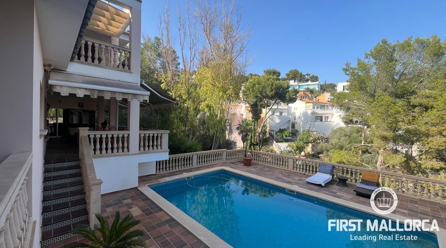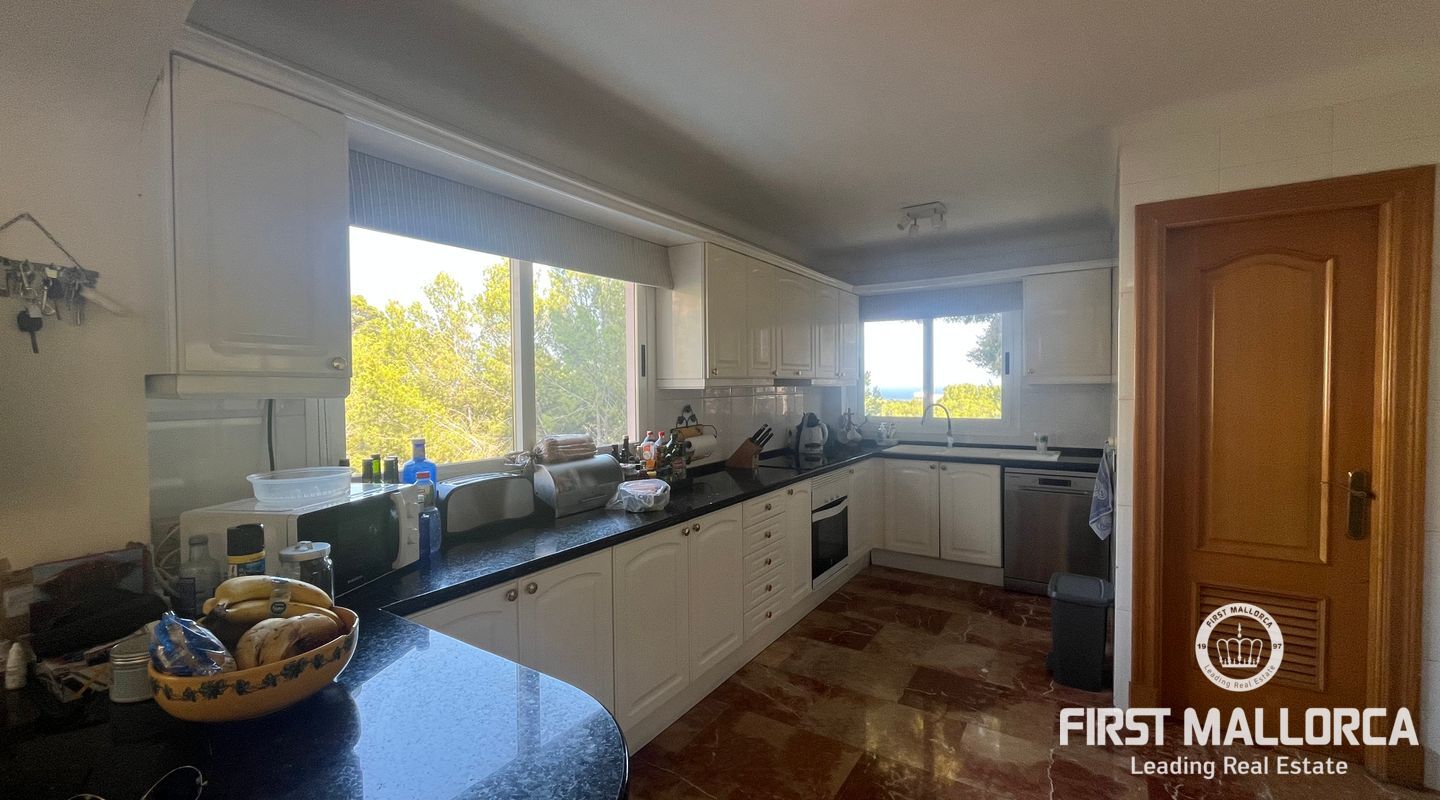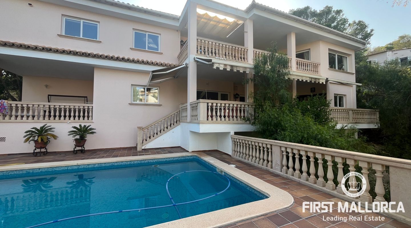 Fantastische Villa in einer grünen Gegend in der angesehenen Gemeinde Costa d'en Blanes. Das Haus hat eine Verteilung auf zwei Ebenen mit 4 Schlafzimmern im Erdgeschoss und Zugang zur großen Terrasse und einem privaten Pool. Das Wohn-Esszimmer und die voll ausgestattete Küche bieten Zugang zu einer weiteren Terrasse mit Blick auf den Eukalyptus- und Pinienwald. Das Anwesen verfügt über einen großen ebenen Garten und Parkplatz für 2 Autos.