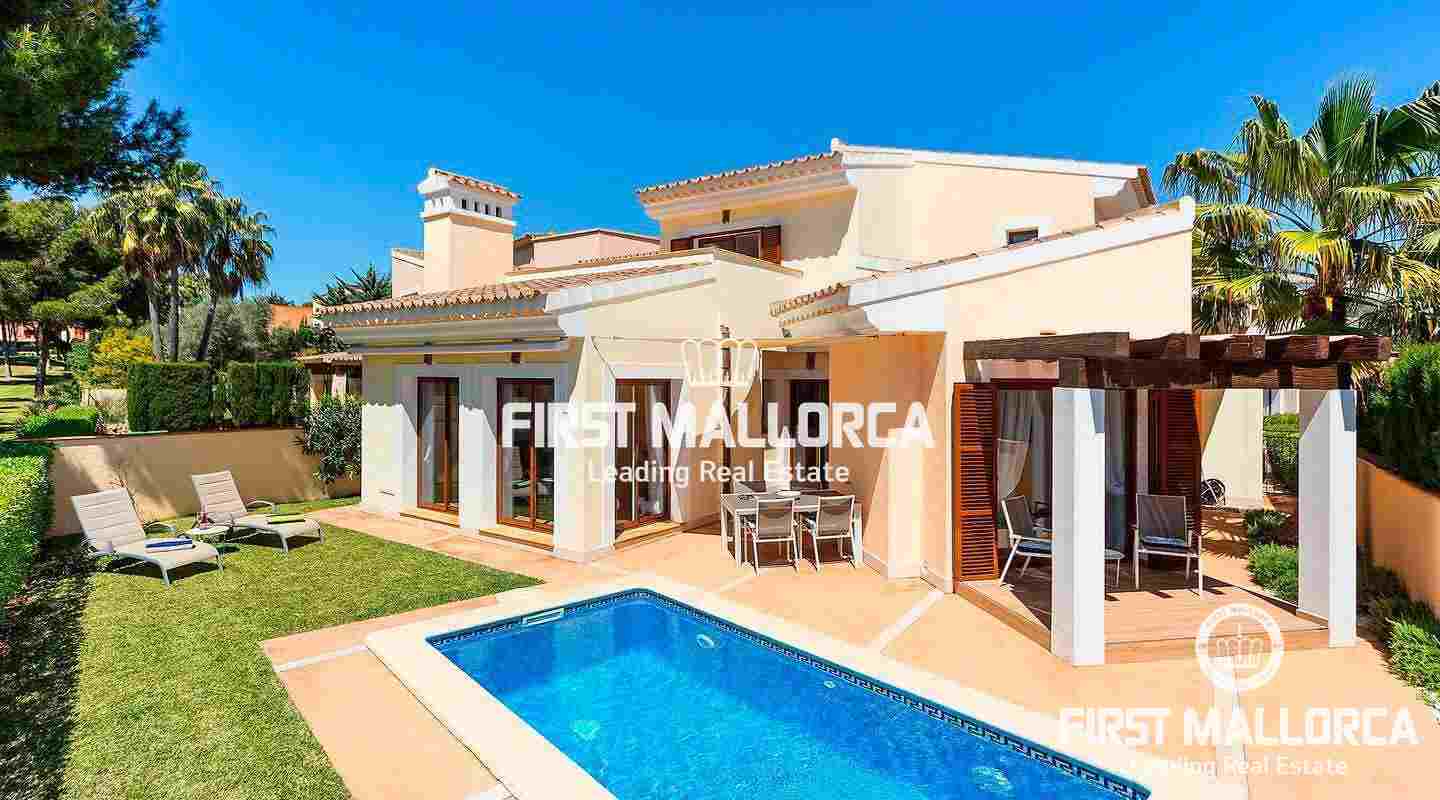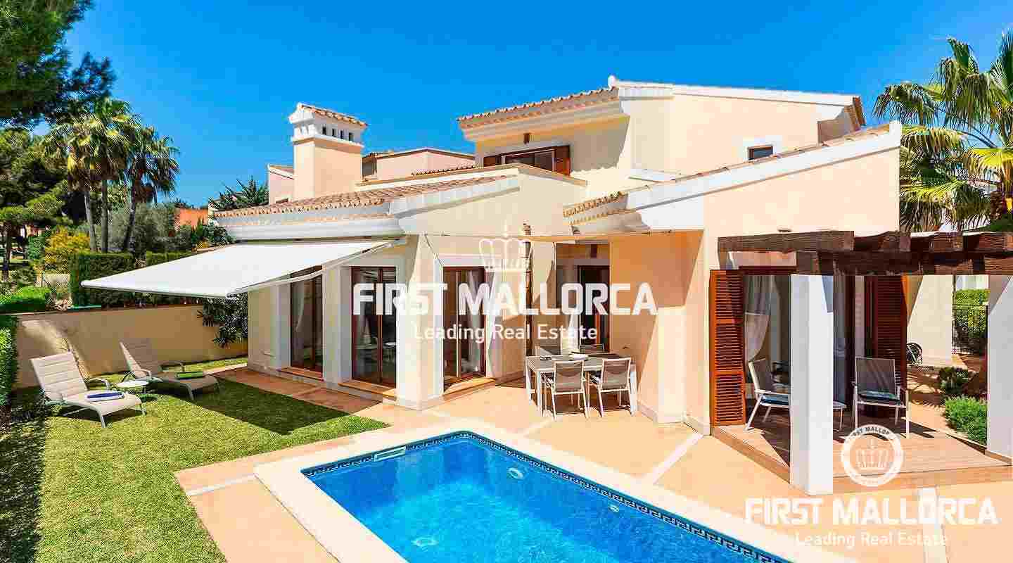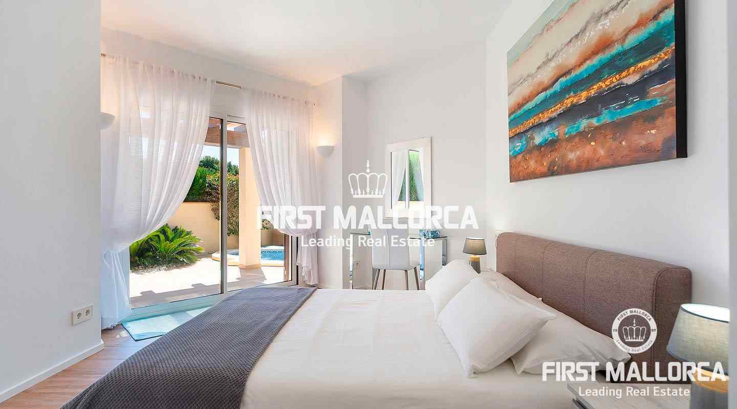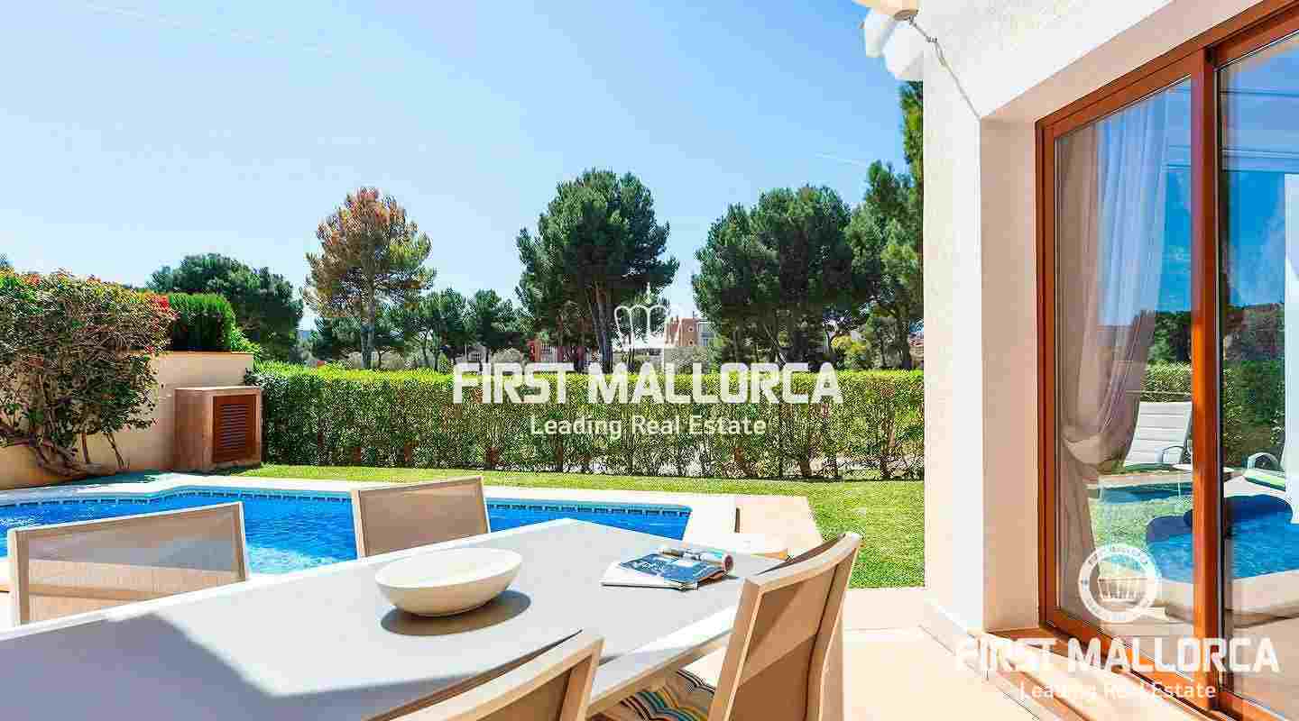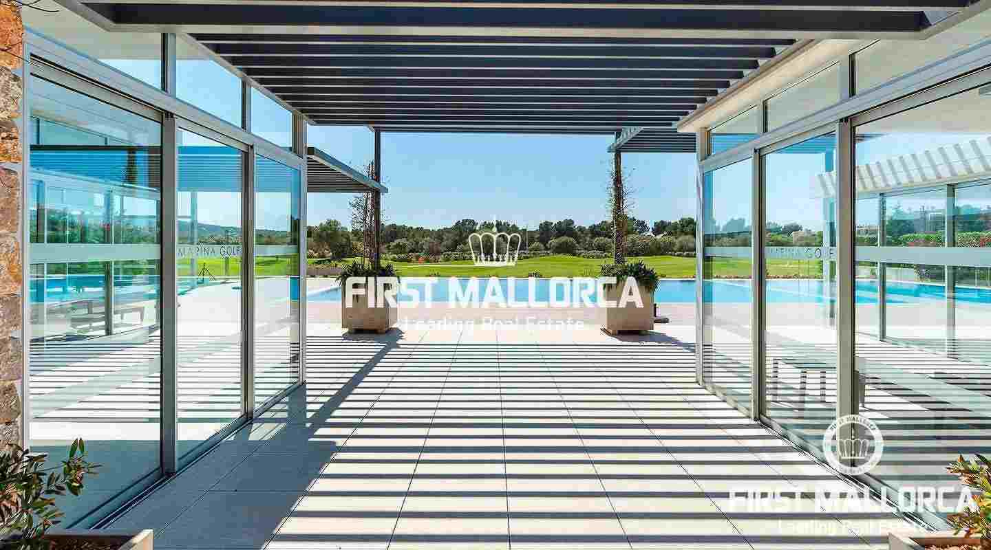 Moderne Villa in erster Linie zum Golf in einer brandneuen Gemeinschaftsanlage angrenzend an den Golfplatz Santa Ponsa mit freiem Blick, eigenem Pool, privatem Garten und einem riesigen Gemeinschaftspool mit Chill-Bereich.