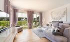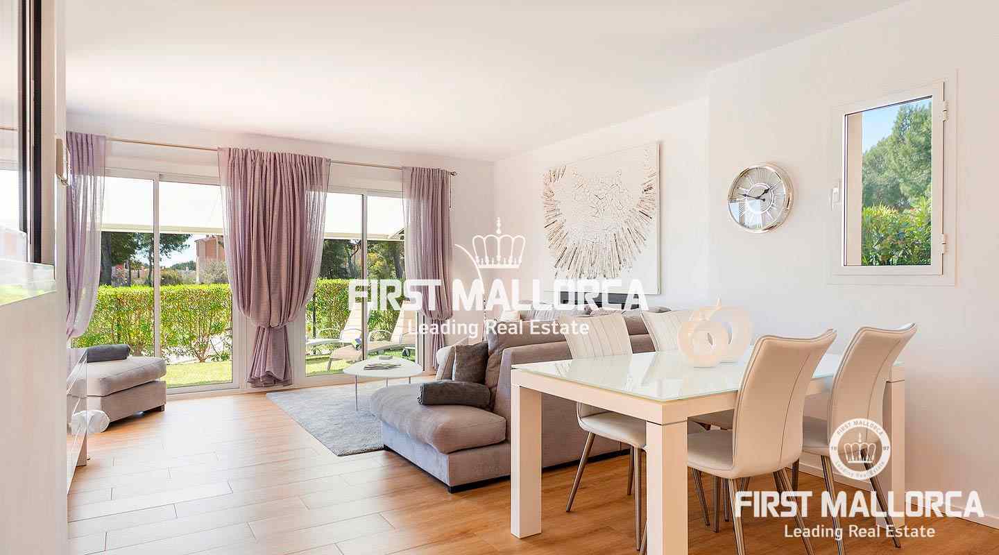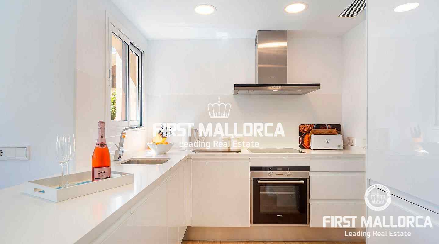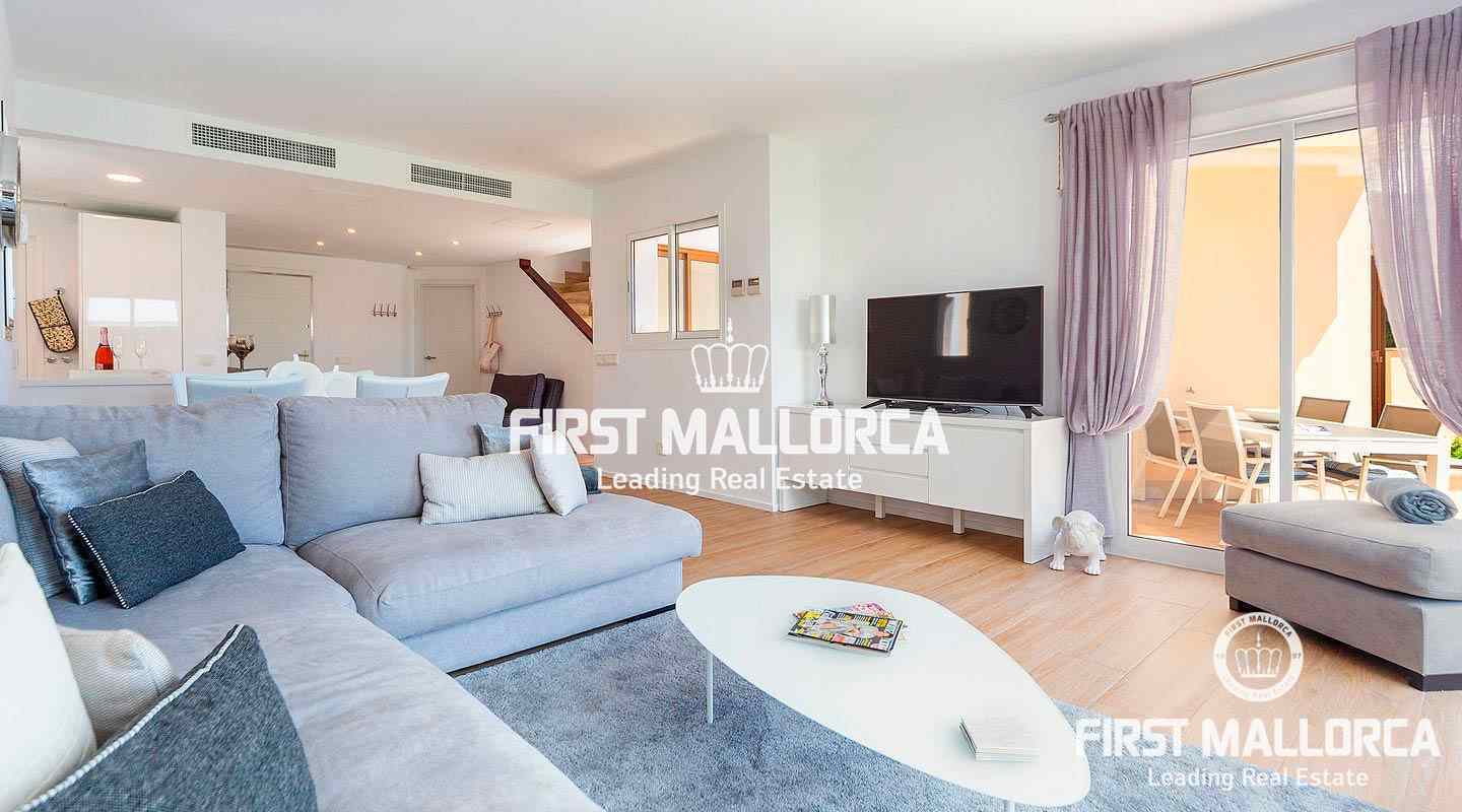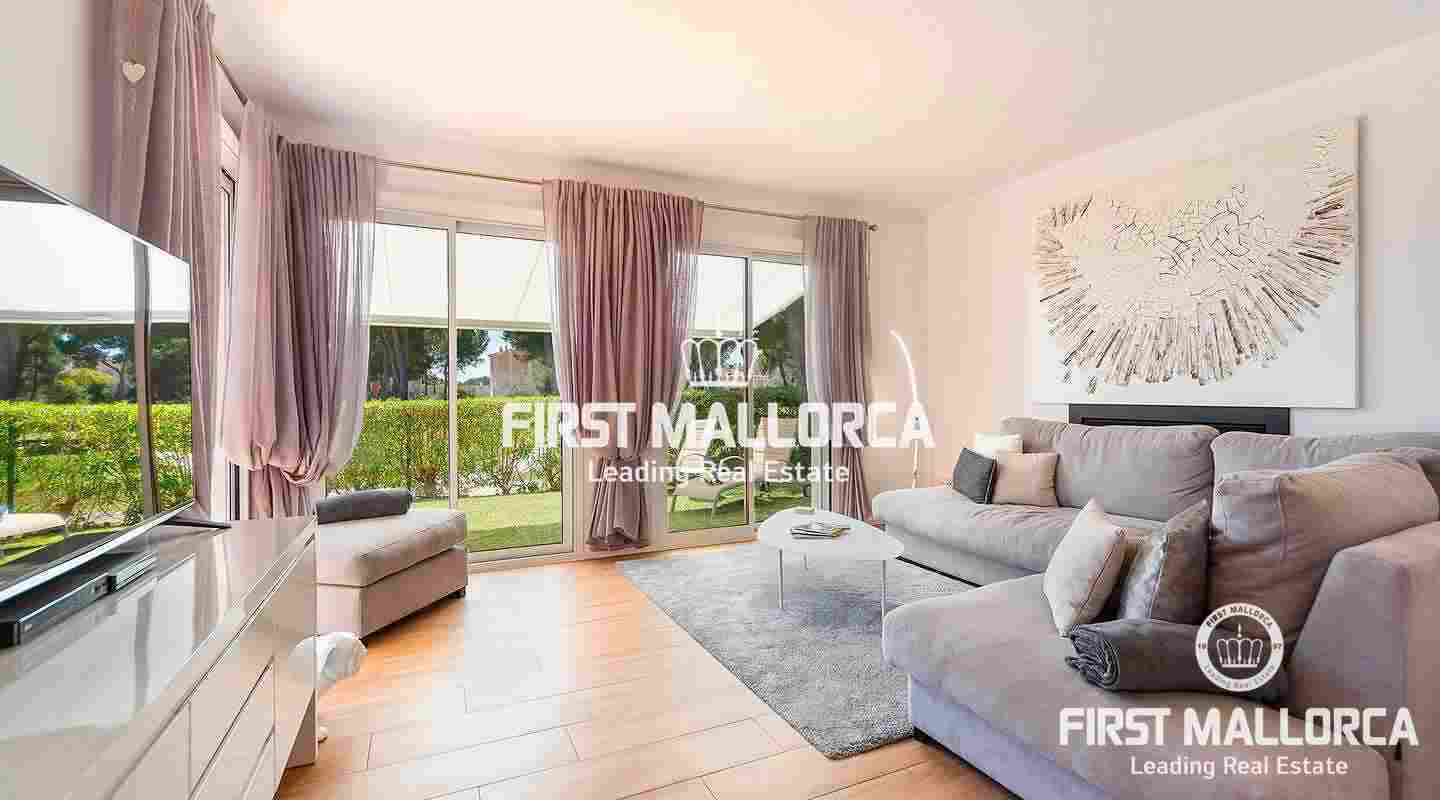 Moderne Villa in erster Linie zum Golf in einer brandneuen Gemeinschaftsanlage angrenzend an den Golfplatz Santa Ponsa mit freiem Blick, eigenem Pool, privatem Garten und einem riesigen Gemeinschaftspool mit Chill-Bereich.