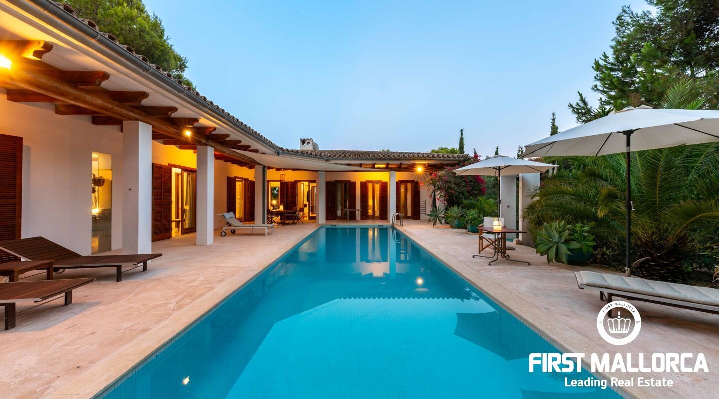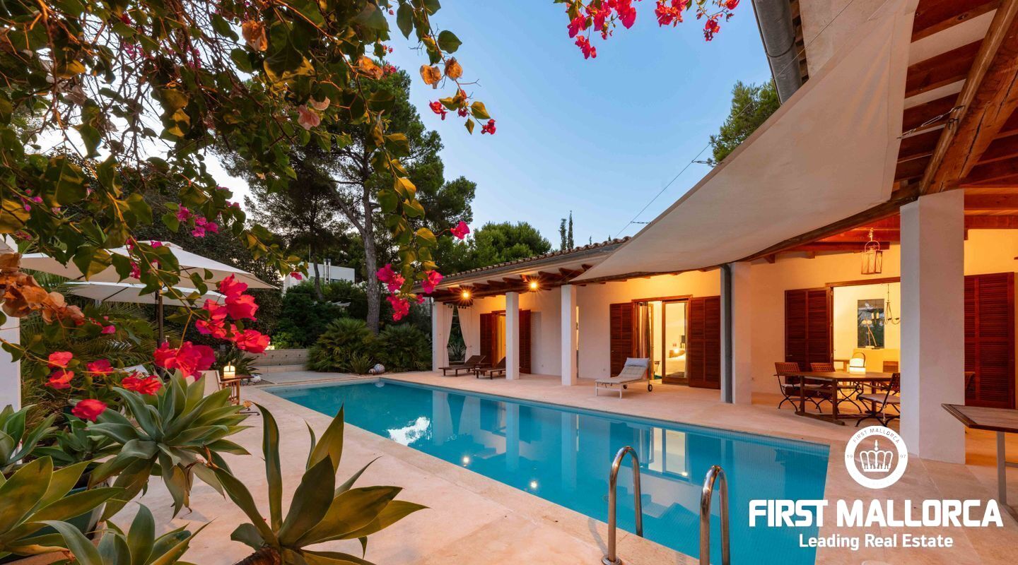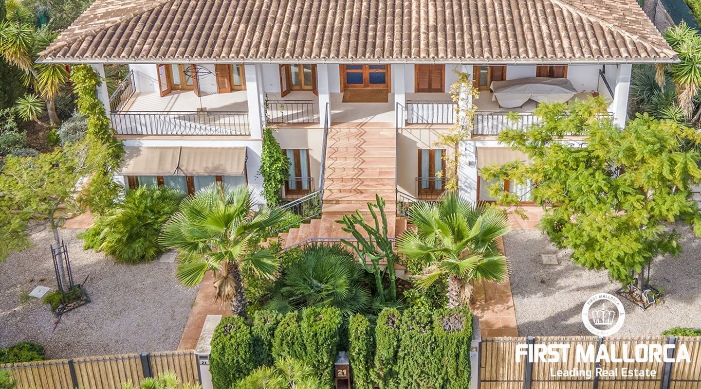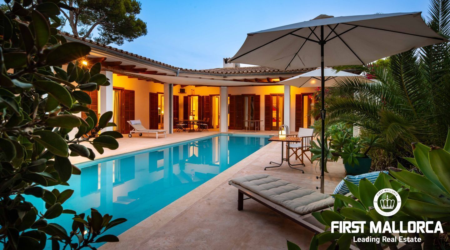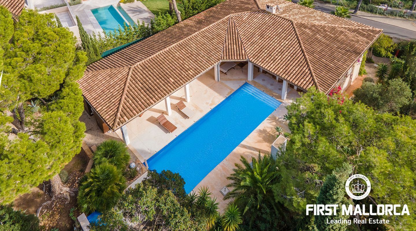 Die Villa überzeugt durch einen durchdachten Grundriss, der in einem privilegierten Umfeld individuellen Komfort mit moderner Funktionalität verbindet. Im Jahre 2005 vom Eigentümer auf einem 1400qm grossen Grundstück geplant und gebaut, bildet ein L-förmiger Baukörper einen sowohl von Strasse als auch von Nachbarbebauung geschützten, privaten Innenbereich mit 11m langwm Pool und 50qm grossen Terrassenflächen in Süd-West-Ausrichtung; eingerahmt durch Schatten spendende Bäume und mediterrane Bepflanzung. Alle Wohn- und Schlafräume haben direkten Zugang zu diesem großzügigen Außenbereich, der die Attraktivität der Innenräume erhöht, als auch spannende Blickbeziehungen ermöglicht. Unterstützt wird diese Konzeption durch eine lichte Raumhöhe im Innnern von 3 Metern und einem offenen Wohn-Ess und -Küchenbereich. Ein durchgehender heller Naturrsteinboden aus Caliza Alba, 2,50m hohe Edelholztüren und -Jalousien, weiss verputzte Wände und ausgewähltes Design vervollständigen den südlichen Charakter des Gebäudes. Im Erdgeschoss befindet sich ein abgeschlossenes Gästeappartement sowie eine Garage mit 38qm und ein grosser, belichteter, vielfältig nutzbarer Kellerraum mit 50qm. Umgeben von einem 1000qm großen, dicht bepflanzten Garten liegt die Villa in der Nähe des Club Nautico und 10 Autominuten von Port Adriano entfernt. Wir freuen uns auf Ihre Anfrage und zeigen Ihnen gerne diese großzügige Familienvilla.