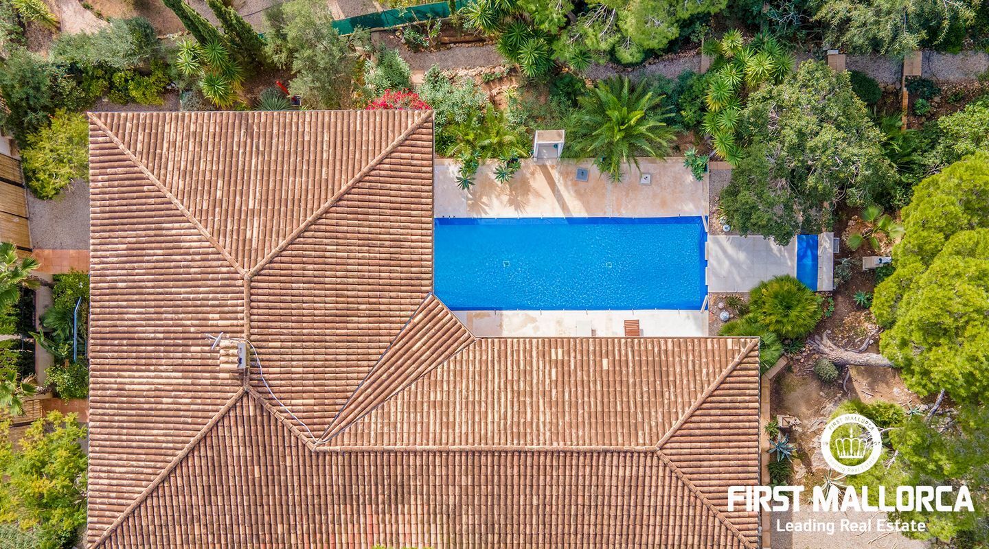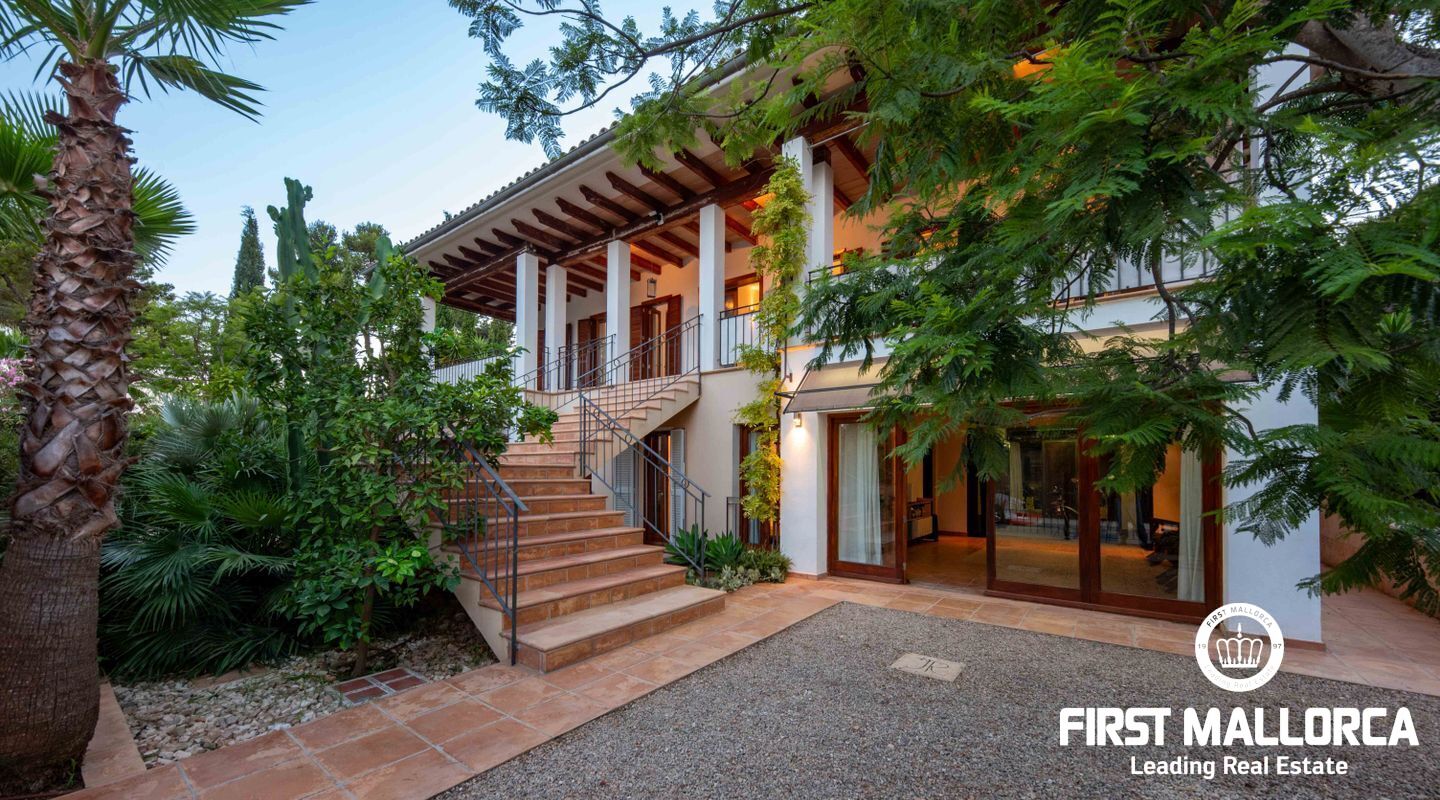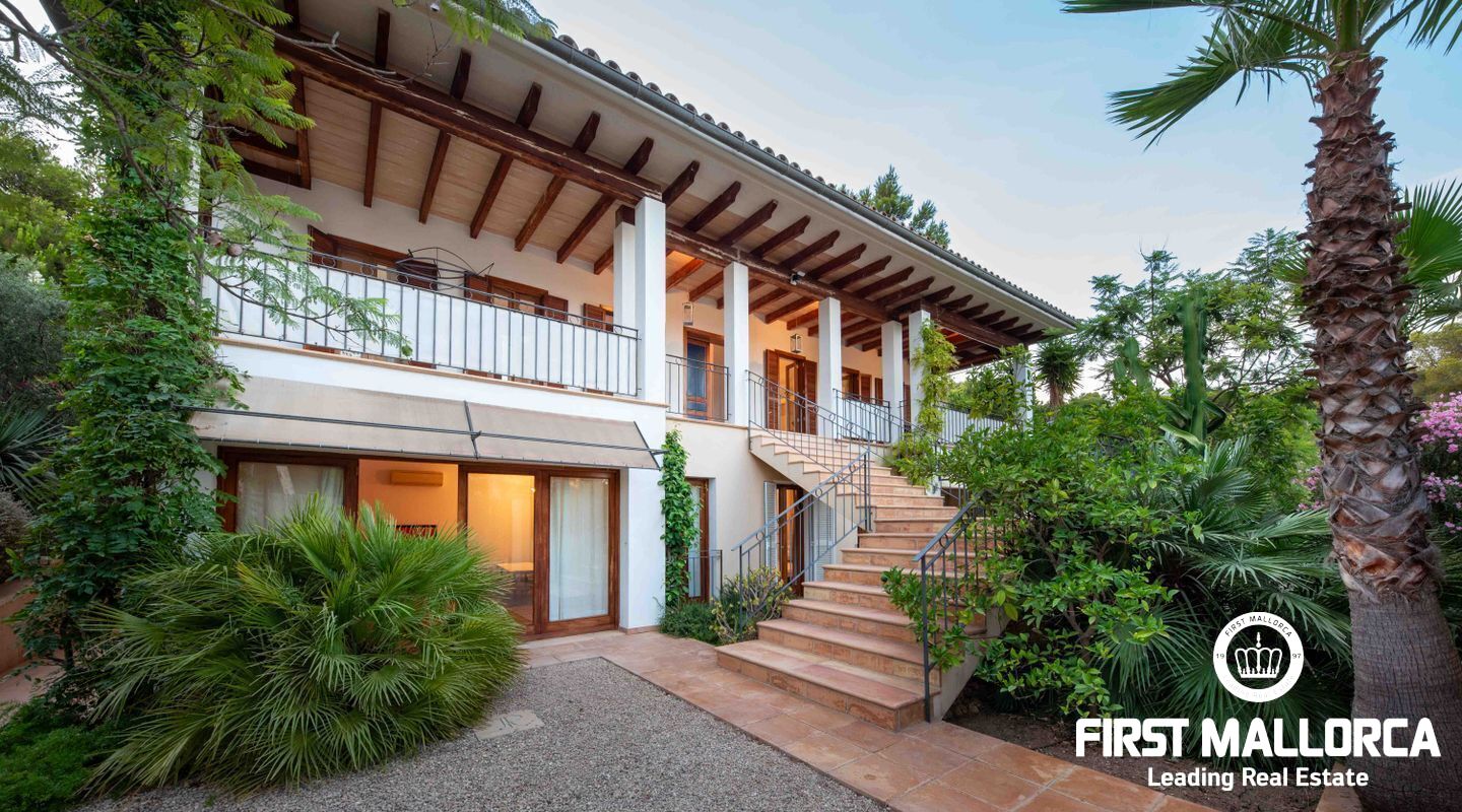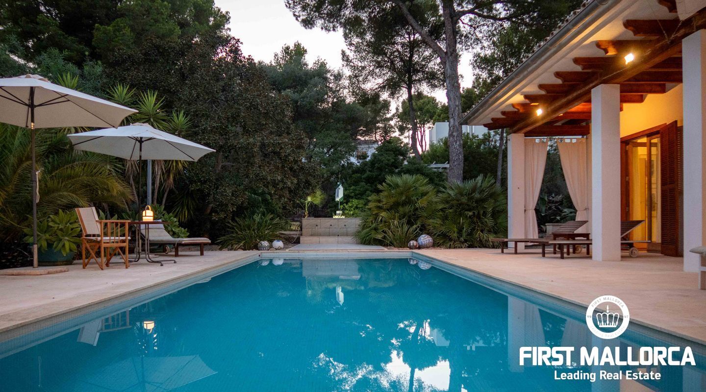 Die Villa überzeugt durch einen durchdachten Grundriss, der in einem privilegierten Umfeld individuellen Komfort mit moderner Funktionalität verbindet. Im Jahre 2005 vom Eigentümer auf einem 1400qm grossen Grundstück geplant und gebaut, bildet ein L-förmiger Baukörper einen sowohl von Strasse als auch von Nachbarbebauung geschützten, privaten Innenbereich mit 11m langwm Pool und 50qm grossen Terrassenflächen in Süd-West-Ausrichtung; eingerahmt durch Schatten spendende Bäume und mediterrane Bepflanzung. Alle Wohn- und Schlafräume haben direkten Zugang zu diesem großzügigen Außenbereich, der die Attraktivität der Innenräume erhöht, als auch spannende Blickbeziehungen ermöglicht. Unterstützt wird diese Konzeption durch eine lichte Raumhöhe im Innnern von 3 Metern und einem offenen Wohn-Ess und -Küchenbereich. Ein durchgehender heller Naturrsteinboden aus Caliza Alba, 2,50m hohe Edelholztüren und -Jalousien, weiss verputzte Wände und ausgewähltes Design vervollständigen den südlichen Charakter des Gebäudes. Im Erdgeschoss befindet sich ein abgeschlossenes Gästeappartement sowie eine Garage mit 38qm und ein grosser, belichteter, vielfältig nutzbarer Kellerraum mit 50qm. Umgeben von einem 1000qm großen, dicht bepflanzten Garten liegt die Villa in der Nähe des Club Nautico und 10 Autominuten von Port Adriano entfernt. Wir freuen uns auf Ihre Anfrage und zeigen Ihnen gerne diese großzügige Familienvilla.