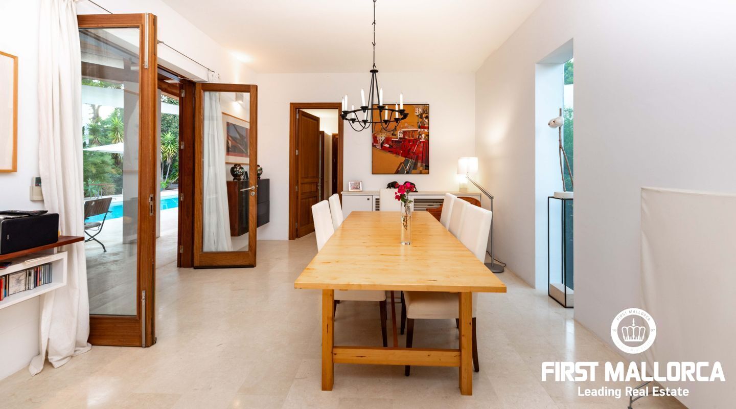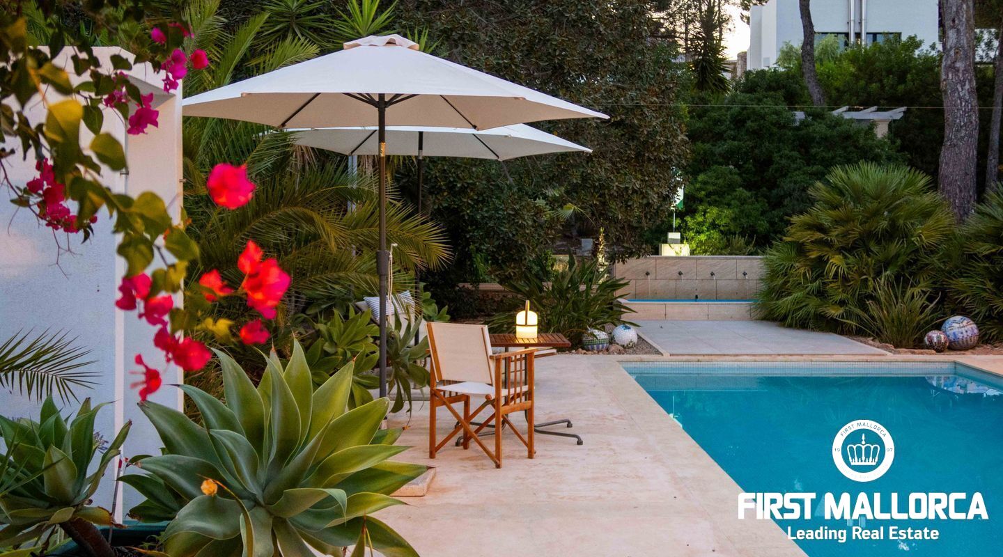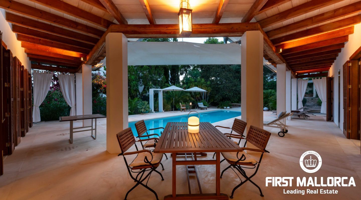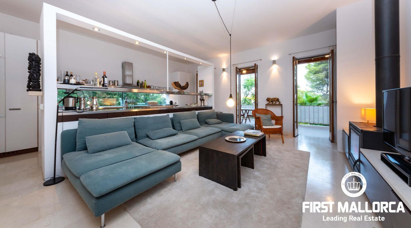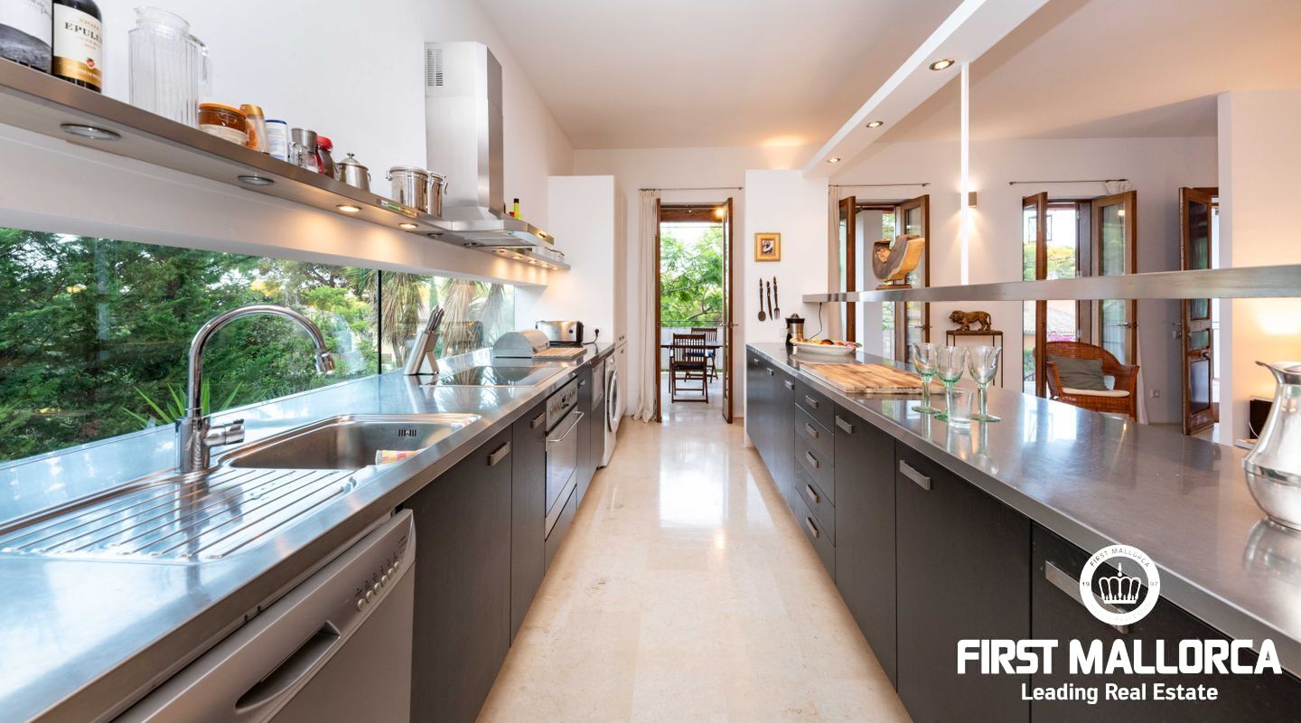 Die Villa überzeugt durch einen durchdachten Grundriss, der in einem privilegierten Umfeld individuellen Komfort mit moderner Funktionalität verbindet. Im Jahre 2005 vom Eigentümer auf einem 1400qm grossen Grundstück geplant und gebaut, bildet ein L-förmiger Baukörper einen sowohl von Strasse als auch von Nachbarbebauung geschützten, privaten Innenbereich mit 11m langwm Pool und 50qm grossen Terrassenflächen in Süd-West-Ausrichtung; eingerahmt durch Schatten spendende Bäume und mediterrane Bepflanzung. Alle Wohn- und Schlafräume haben direkten Zugang zu diesem großzügigen Außenbereich, der die Attraktivität der Innenräume erhöht, als auch spannende Blickbeziehungen ermöglicht. Unterstützt wird diese Konzeption durch eine lichte Raumhöhe im Innnern von 3 Metern und einem offenen Wohn-Ess und -Küchenbereich. Ein durchgehender heller Naturrsteinboden aus Caliza Alba, 2,50m hohe Edelholztüren und -Jalousien, weiss verputzte Wände und ausgewähltes Design vervollständigen den südlichen Charakter des Gebäudes. Im Erdgeschoss befindet sich ein abgeschlossenes Gästeappartement sowie eine Garage mit 38qm und ein grosser, belichteter, vielfältig nutzbarer Kellerraum mit 50qm. Umgeben von einem 1000qm großen, dicht bepflanzten Garten liegt die Villa in der Nähe des Club Nautico und 10 Autominuten von Port Adriano entfernt. Wir freuen uns auf Ihre Anfrage und zeigen Ihnen gerne diese großzügige Familienvilla.