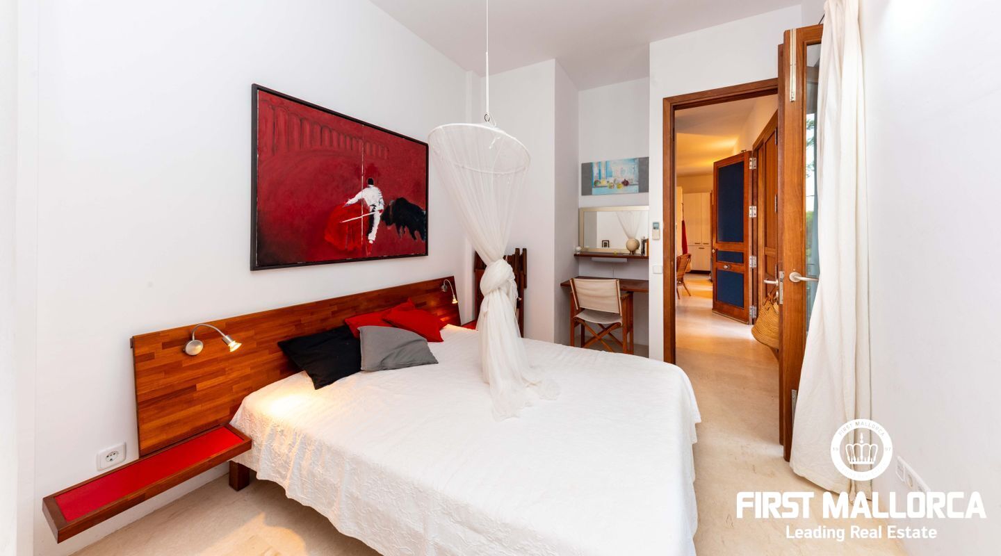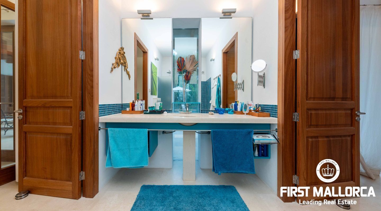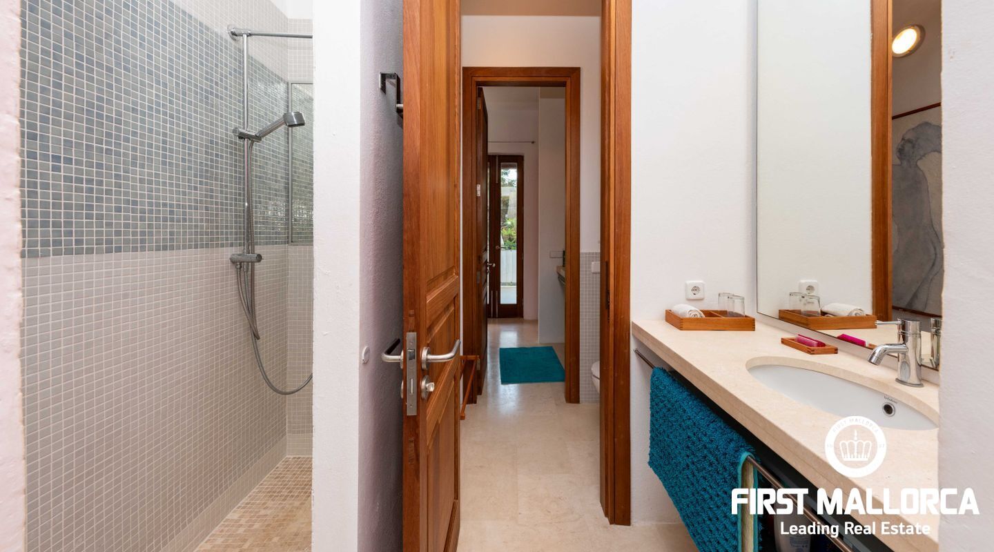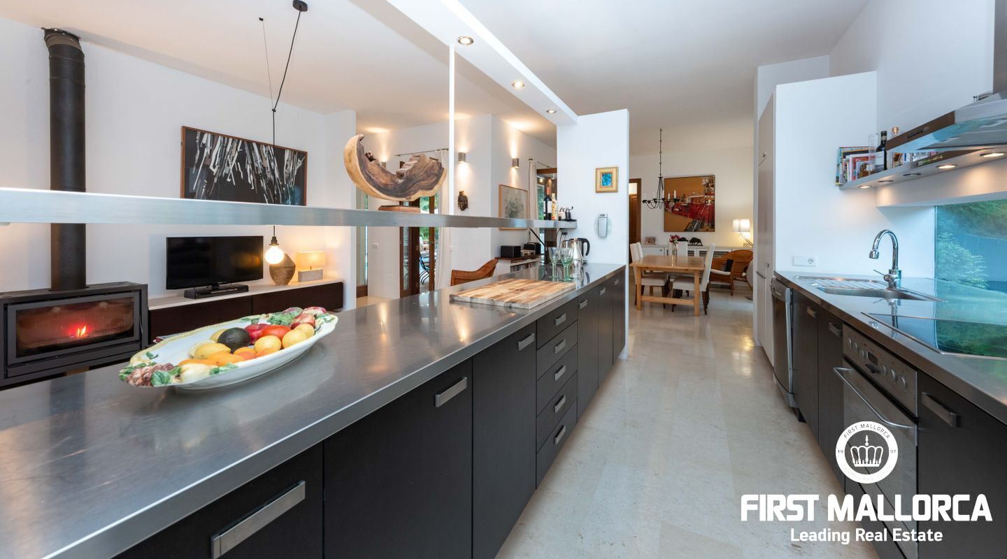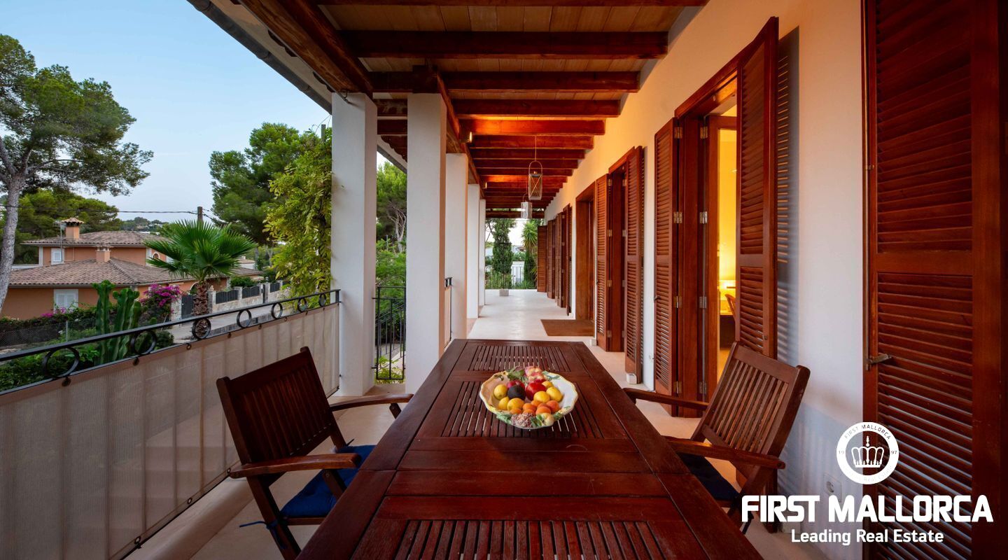 Die Villa überzeugt durch einen durchdachten Grundriss, der in einem privilegierten Umfeld individuellen Komfort mit moderner Funktionalität verbindet. Im Jahre 2005 vom Eigentümer auf einem 1400qm grossen Grundstück geplant und gebaut, bildet ein L-förmiger Baukörper einen sowohl von Strasse als auch von Nachbarbebauung geschützten, privaten Innenbereich mit 11m langwm Pool und 50qm grossen Terrassenflächen in Süd-West-Ausrichtung; eingerahmt durch Schatten spendende Bäume und mediterrane Bepflanzung. Alle Wohn- und Schlafräume haben direkten Zugang zu diesem großzügigen Außenbereich, der die Attraktivität der Innenräume erhöht, als auch spannende Blickbeziehungen ermöglicht. Unterstützt wird diese Konzeption durch eine lichte Raumhöhe im Innnern von 3 Metern und einem offenen Wohn-Ess und -Küchenbereich. Ein durchgehender heller Naturrsteinboden aus Caliza Alba, 2,50m hohe Edelholztüren und -Jalousien, weiss verputzte Wände und ausgewähltes Design vervollständigen den südlichen Charakter des Gebäudes. Im Erdgeschoss befindet sich ein abgeschlossenes Gästeappartement sowie eine Garage mit 38qm und ein grosser, belichteter, vielfältig nutzbarer Kellerraum mit 50qm. Umgeben von einem 1000qm großen, dicht bepflanzten Garten liegt die Villa in der Nähe des Club Nautico und 10 Autominuten von Port Adriano entfernt. Wir freuen uns auf Ihre Anfrage und zeigen Ihnen gerne diese großzügige Familienvilla.