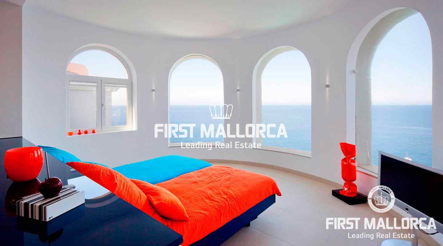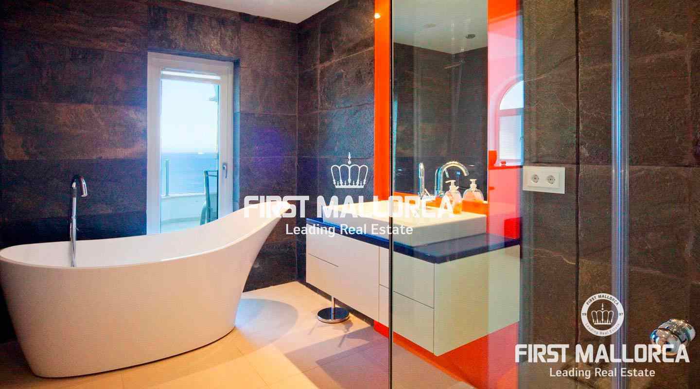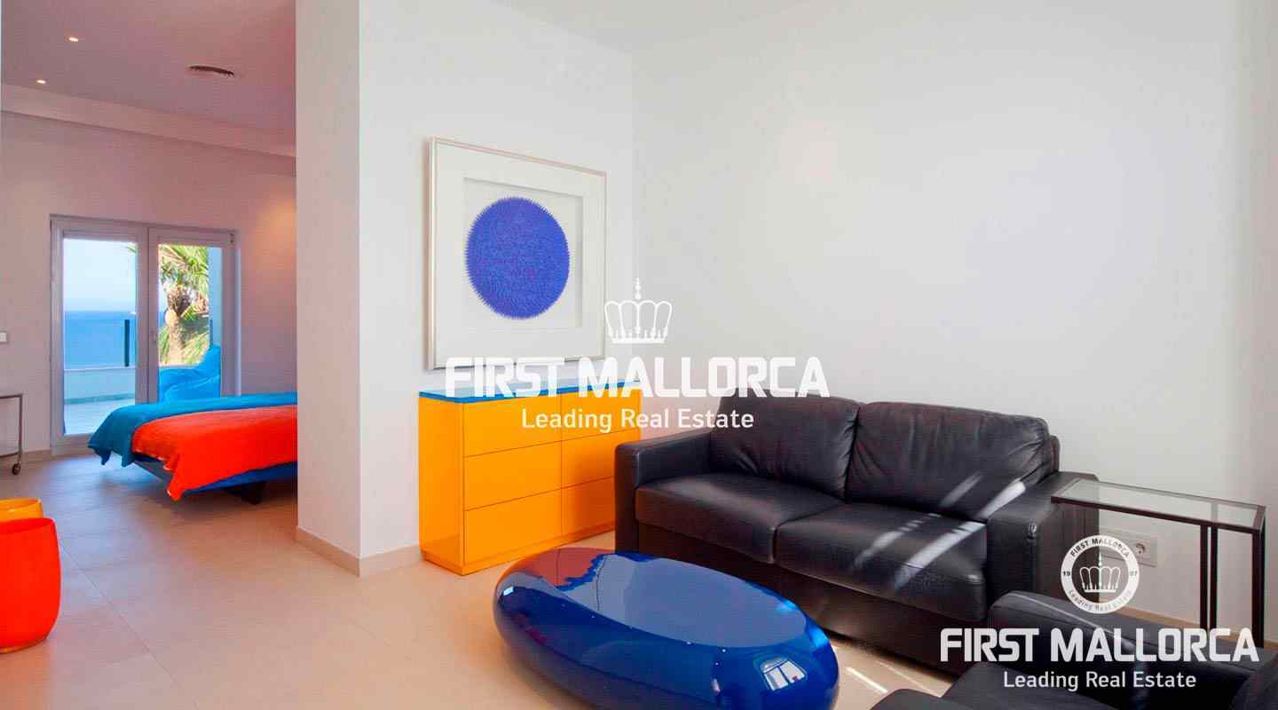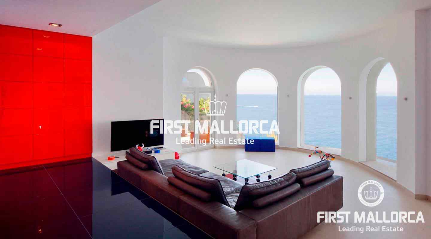 Orange-Blue, eine Villa in erster Meereslinie mit atemberaubendem Meerblick. Die Villa liegt auf einem 792 m2 grossen Grundstück in der Nähe des Hafens Port Adriano. Sie bietet eine bebaute Fläche von 350 m2, insgesamt stehen 4 Schlafzimmer und 4 Bädern zur verfügung. Das im offenen Raumkonzept gestaltete und lichtdurchflutete Interieur der Villa zeugen von architektonischer Meisterleistung. Von allen Räumen geniesst man den Ausblick auf die unendliche Weite des Mittelmeeeres, sowie fantastische Sonnenuntergänge. Im Aussenbereich gibt es einen herrlichen Überlaufpool und zum Sonnenbaden einladendeTerrassen. Diese Mallorca Immobilie wurde erst kürzlich einer kompletten Renovierung unterzogen und ist in einwandfreiem Zustand. Weitere Ausstattungsmerkmale dieser Villa sind u.a. Klimaanlage warm/kalt, Fussbodenheizung, Garage mit direktem Zugang zum Haus, Soundssytem.