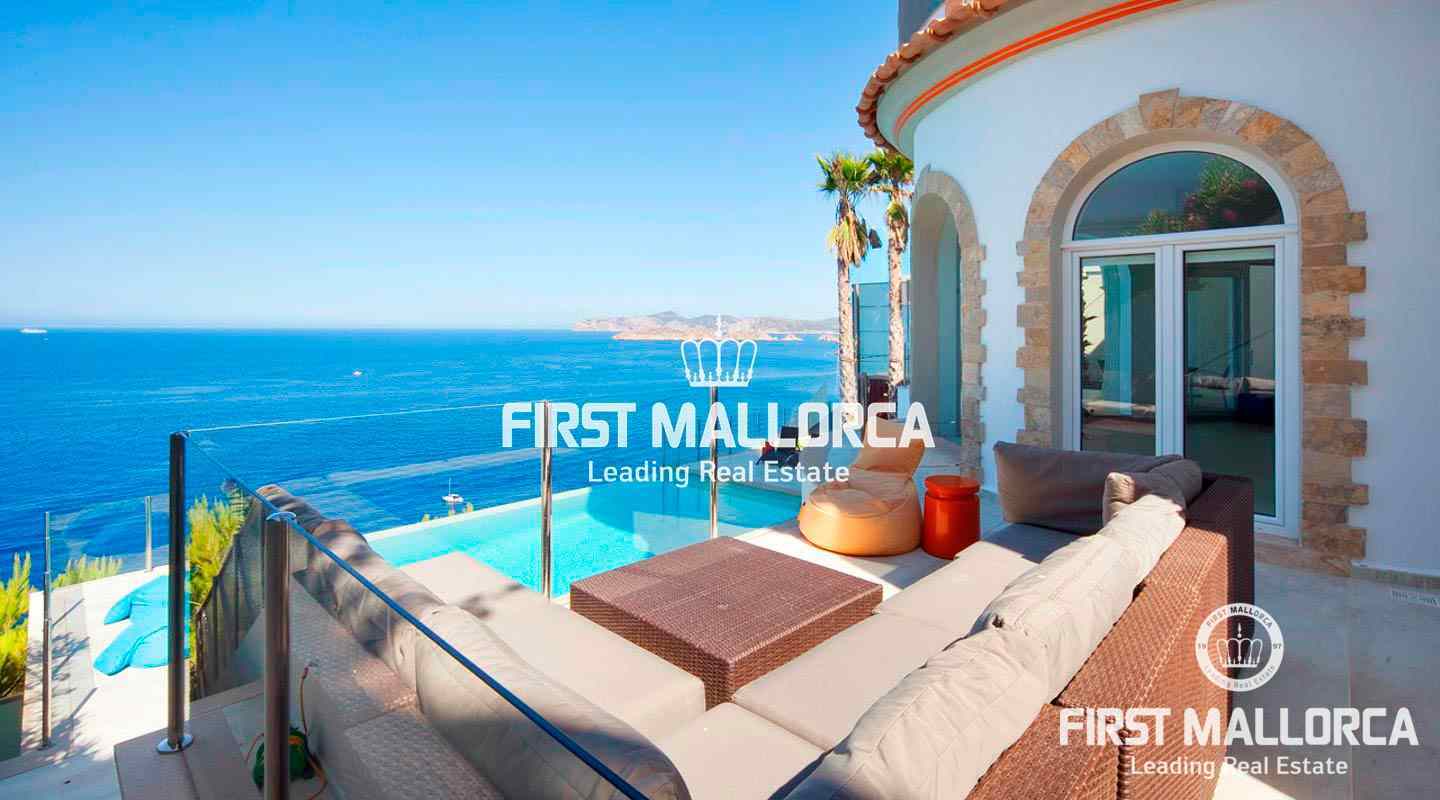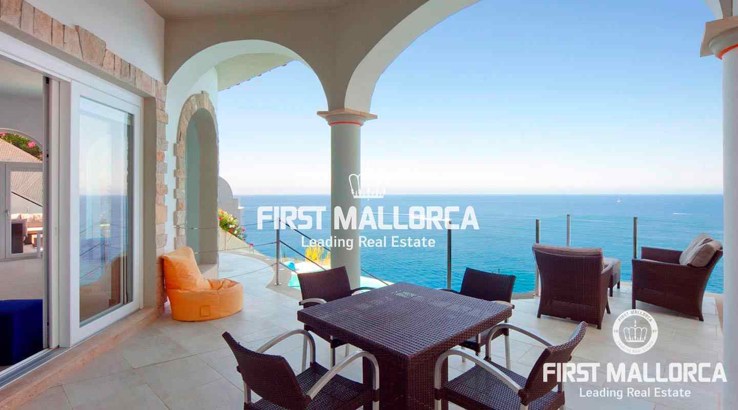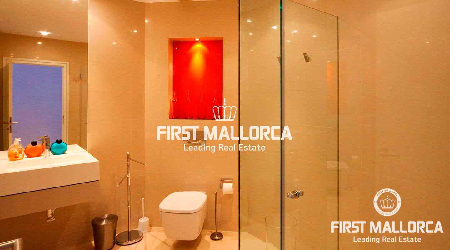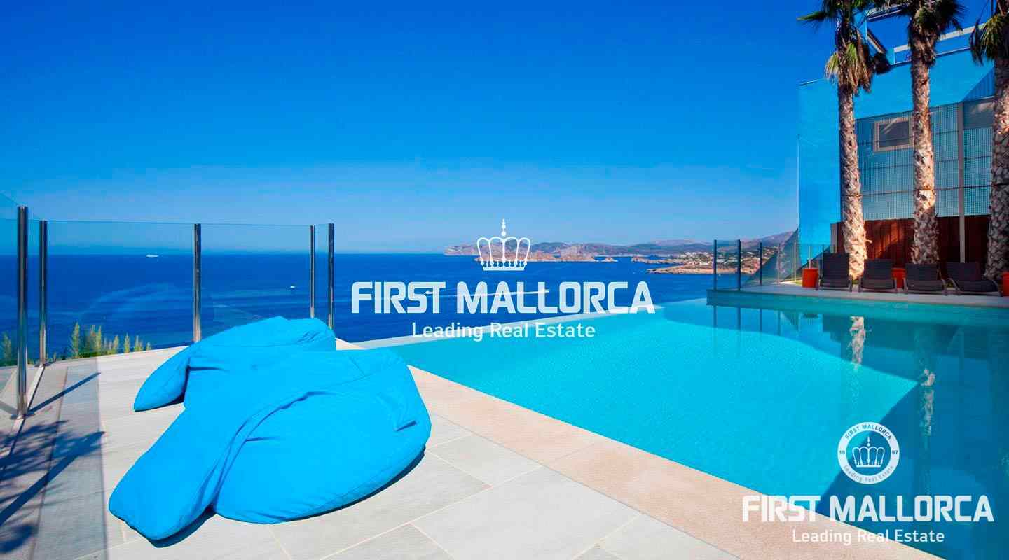 Orange-Blue, eine Villa in erster Meereslinie mit atemberaubendem Meerblick. Die Villa liegt auf einem 792 m2 grossen Grundstück in der Nähe des Hafens Port Adriano. Sie bietet eine bebaute Fläche von 350 m2, insgesamt stehen 4 Schlafzimmer und 4 Bädern zur verfügung. Das im offenen Raumkonzept gestaltete und lichtdurchflutete Interieur der Villa zeugen von architektonischer Meisterleistung. Von allen Räumen geniesst man den Ausblick auf die unendliche Weite des Mittelmeeeres, sowie fantastische Sonnenuntergänge. Im Aussenbereich gibt es einen herrlichen Überlaufpool und zum Sonnenbaden einladendeTerrassen. Diese Mallorca Immobilie wurde erst kürzlich einer kompletten Renovierung unterzogen und ist in einwandfreiem Zustand. Weitere Ausstattungsmerkmale dieser Villa sind u.a. Klimaanlage warm/kalt, Fussbodenheizung, Garage mit direktem Zugang zum Haus, Soundssytem.