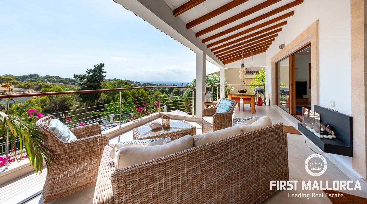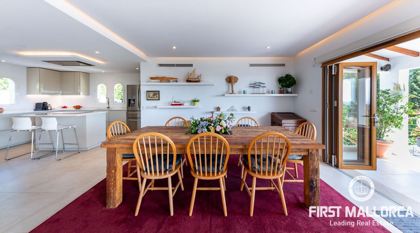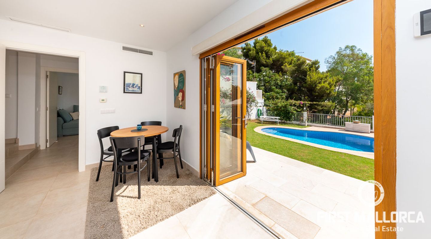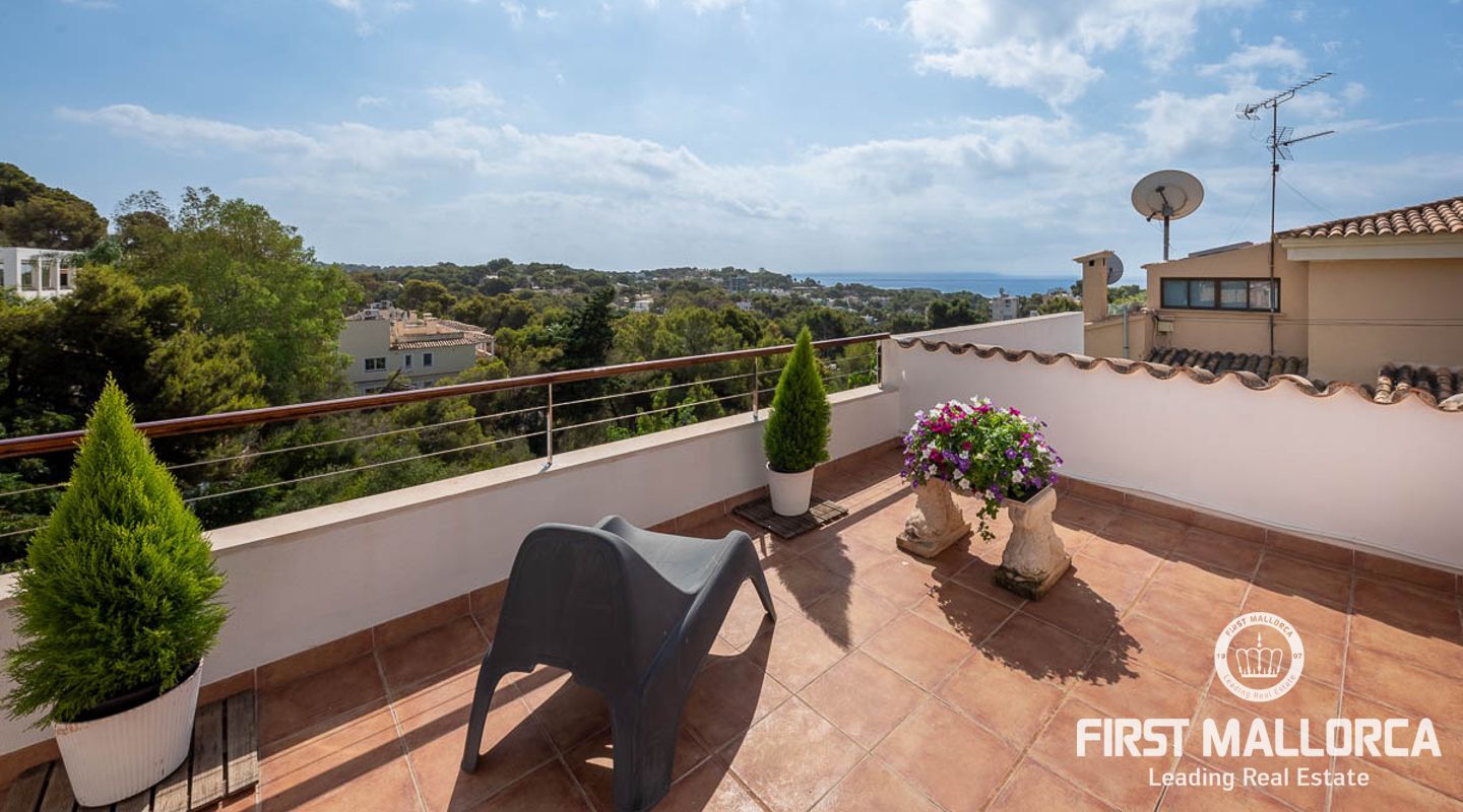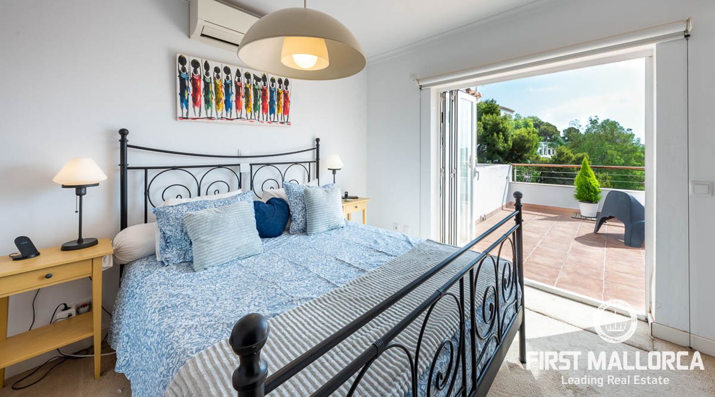 Willkommen in Ihrem Traumhaus in Portals Nous, wo Luxus auf Küstenleben trifft. Diese prächtige Villa bietet alles, was Sie sich wünschen, und noch mehr, mit ihren beeindruckenden drei Ebenen und fesselnden Ausblicken auf das glitzernde Mittelmeer. Auf der ersten Ebene finden Sie drei geräumige Schlafzimmer, die Ihnen und Ihren Lieben viel Platz zum Entspannen und Erholen bieten. Zwei moderne Bäder sorgen für Komfort und Privatsphäre für alle. Das Highlight dieser Ebene ist der nahtlose Zugang zum einladenden Poolbereich, in dem Sie sich an warmen Sommertagen abkühlen können. Und für diejenigen, die gerne Gäste bewirten, steht eine gut ausgestattete Sommerküche bereit, die das Beisammensein am Pool zu einem angenehmen Erlebnis macht. Steigen Sie in die zweite Etage hinauf, und Sie werden von dem großzügigen Wohnbereich mit offener Küche beeindruckt sein. Diese Ebene verkörpert Eleganz und Funktionalität, mit hochwertigen Oberflächen und reichlich natürlichem Licht, das durch große Fenster einfällt. Die großzügige Terrasse ist der perfekte Ort, um einen Morgenkaffee zu genießen, während die Sonne über dem Horizont aufgeht und man einen atemberaubenden Blick auf das Meer hat. Lassen Sie sich von der dritten Ebene überraschen, die ausschließlich dem luxuriösen Hauptschlafzimmer gewidmet ist. Dieser geräumige Rückzugsort bietet ein Höchstmaß an Privatsphäre und Ruhe, ergänzt durch eine private Terrasse mit Blick auf das glitzernde Wasser des Mittelmeers.