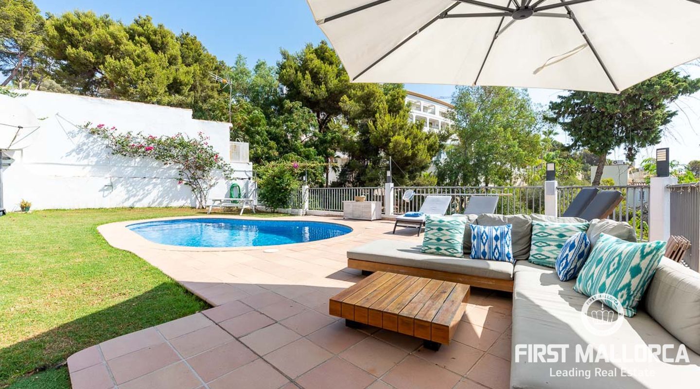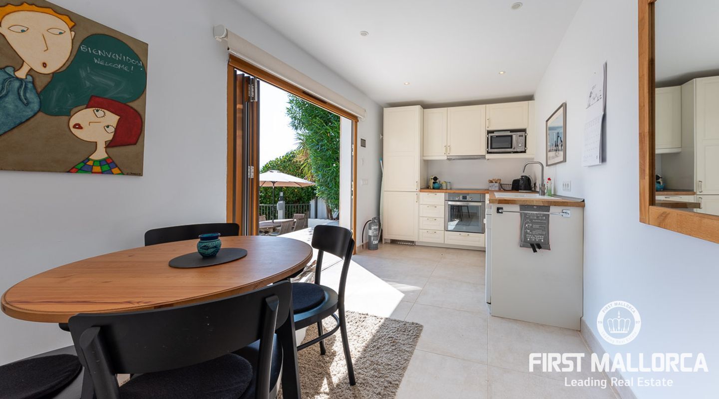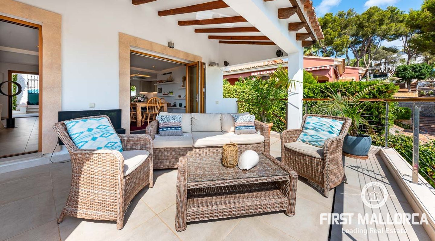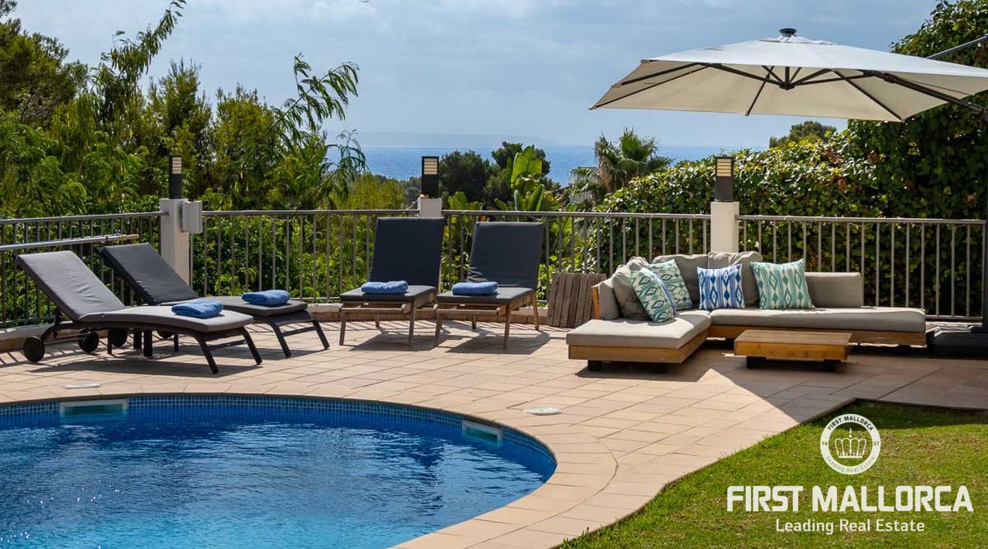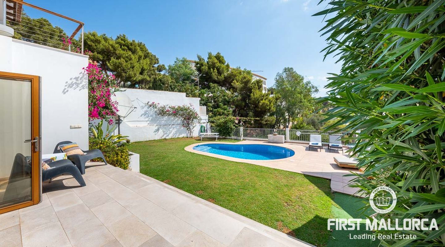 Willkommen in Ihrem Traumhaus in Portals Nous, wo Luxus auf Küstenleben trifft. Diese prächtige Villa bietet alles, was Sie sich wünschen, und noch mehr, mit ihren beeindruckenden drei Ebenen und fesselnden Ausblicken auf das glitzernde Mittelmeer. Auf der ersten Ebene finden Sie drei geräumige Schlafzimmer, die Ihnen und Ihren Lieben viel Platz zum Entspannen und Erholen bieten. Zwei moderne Bäder sorgen für Komfort und Privatsphäre für alle. Das Highlight dieser Ebene ist der nahtlose Zugang zum einladenden Poolbereich, in dem Sie sich an warmen Sommertagen abkühlen können. Und für diejenigen, die gerne Gäste bewirten, steht eine gut ausgestattete Sommerküche bereit, die das Beisammensein am Pool zu einem angenehmen Erlebnis macht. Steigen Sie in die zweite Etage hinauf, und Sie werden von dem großzügigen Wohnbereich mit offener Küche beeindruckt sein. Diese Ebene verkörpert Eleganz und Funktionalität, mit hochwertigen Oberflächen und reichlich natürlichem Licht, das durch große Fenster einfällt. Die großzügige Terrasse ist der perfekte Ort, um einen Morgenkaffee zu genießen, während die Sonne über dem Horizont aufgeht und man einen atemberaubenden Blick auf das Meer hat. Lassen Sie sich von der dritten Ebene überraschen, die ausschließlich dem luxuriösen Hauptschlafzimmer gewidmet ist. Dieser geräumige Rückzugsort bietet ein Höchstmaß an Privatsphäre und Ruhe, ergänzt durch eine private Terrasse mit Blick auf das glitzernde Wasser des Mittelmeers.