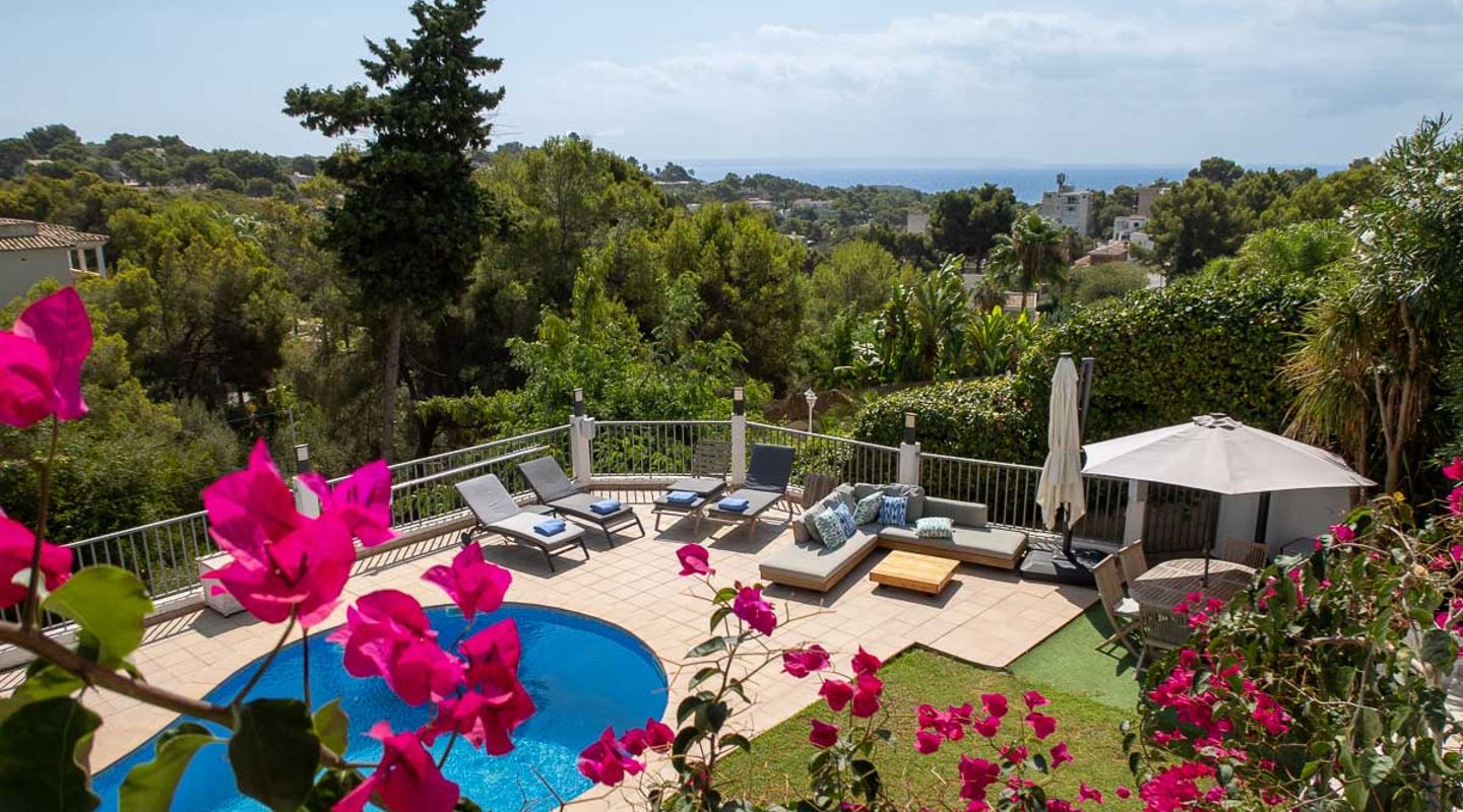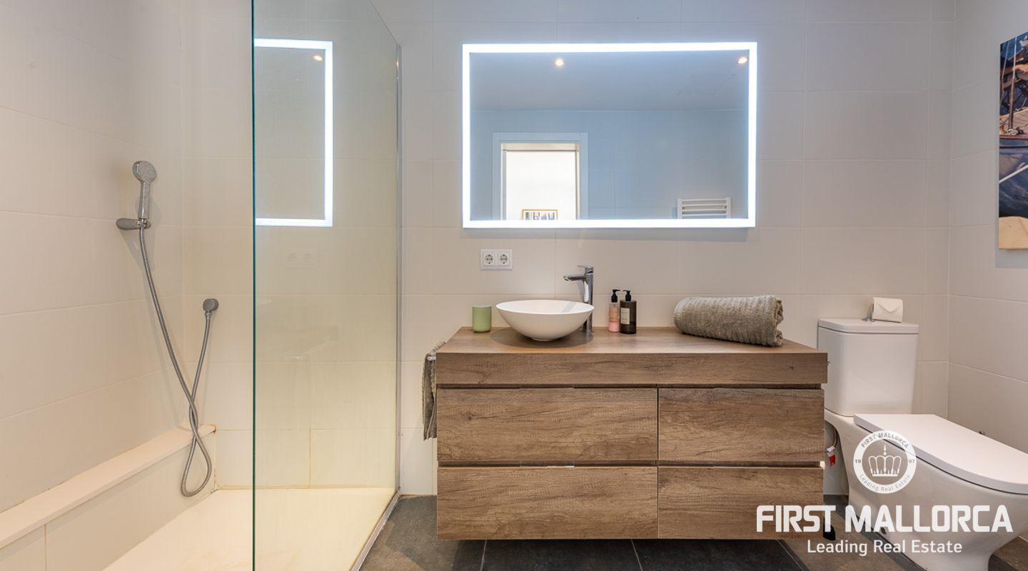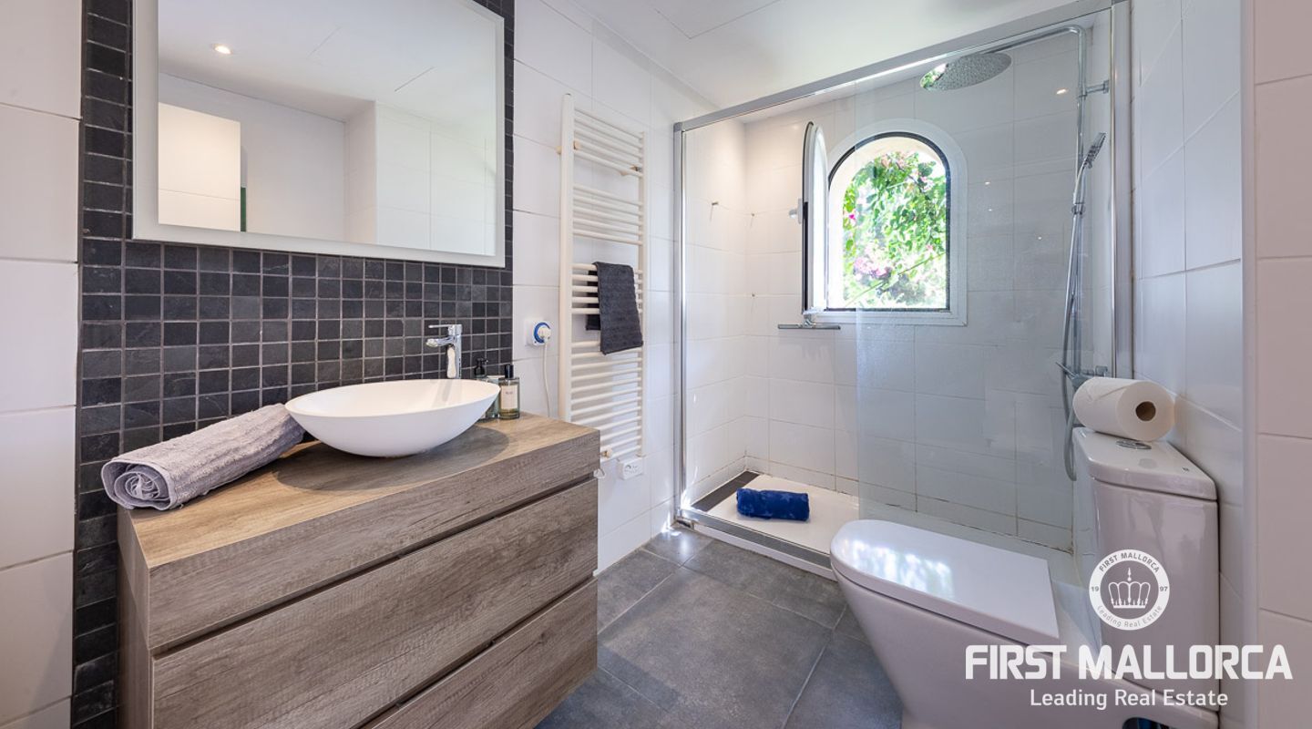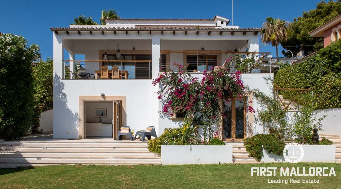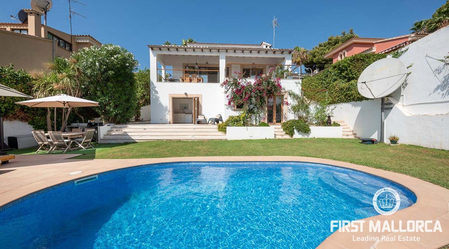 Willkommen in Ihrem Traumhaus in Portals Nous, wo Luxus auf Küstenleben trifft. Diese prächtige Villa bietet alles, was Sie sich wünschen, und noch mehr, mit ihren beeindruckenden drei Ebenen und fesselnden Ausblicken auf das glitzernde Mittelmeer. Auf der ersten Ebene finden Sie drei geräumige Schlafzimmer, die Ihnen und Ihren Lieben viel Platz zum Entspannen und Erholen bieten. Zwei moderne Bäder sorgen für Komfort und Privatsphäre für alle. Das Highlight dieser Ebene ist der nahtlose Zugang zum einladenden Poolbereich, in dem Sie sich an warmen Sommertagen abkühlen können. Und für diejenigen, die gerne Gäste bewirten, steht eine gut ausgestattete Sommerküche bereit, die das Beisammensein am Pool zu einem angenehmen Erlebnis macht. Steigen Sie in die zweite Etage hinauf, und Sie werden von dem großzügigen Wohnbereich mit offener Küche beeindruckt sein. Diese Ebene verkörpert Eleganz und Funktionalität, mit hochwertigen Oberflächen und reichlich natürlichem Licht, das durch große Fenster einfällt. Die großzügige Terrasse ist der perfekte Ort, um einen Morgenkaffee zu genießen, während die Sonne über dem Horizont aufgeht und man einen atemberaubenden Blick auf das Meer hat. Lassen Sie sich von der dritten Ebene überraschen, die ausschließlich dem luxuriösen Hauptschlafzimmer gewidmet ist. Dieser geräumige Rückzugsort bietet ein Höchstmaß an Privatsphäre und Ruhe, ergänzt durch eine private Terrasse mit Blick auf das glitzernde Wasser des Mittelmeers.