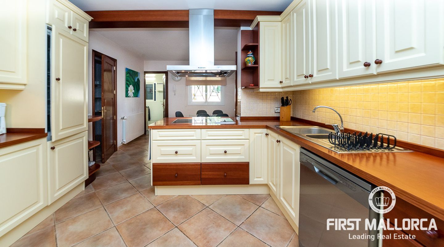 Das Haus zeichnet sich durch seinen perfekten und guten Zustand sowie seinen exquisiten mediterranen Geschmack aus. Es verfügt über 4 Schlafzimmer und 4 Bäder, davon zwei en suite. Die Lage ist ideal für eine Familie mit Kindern, die in den angelegten Gartenbereichen und den weiten natürlichen Rasenflächen spielen können. Das Anwesen liegt in einer Sackgasse und bietet auch viel Privatsphäre.