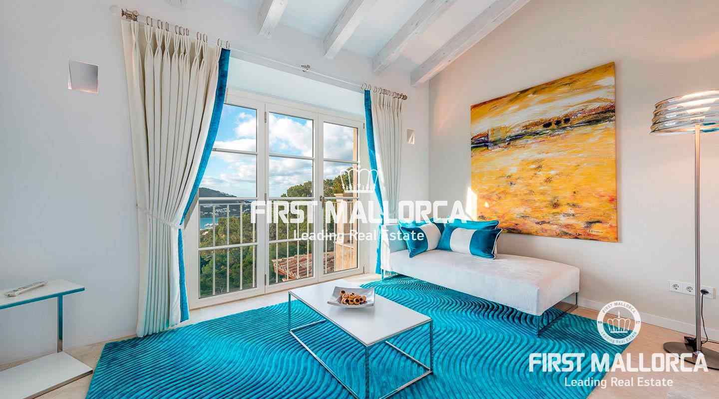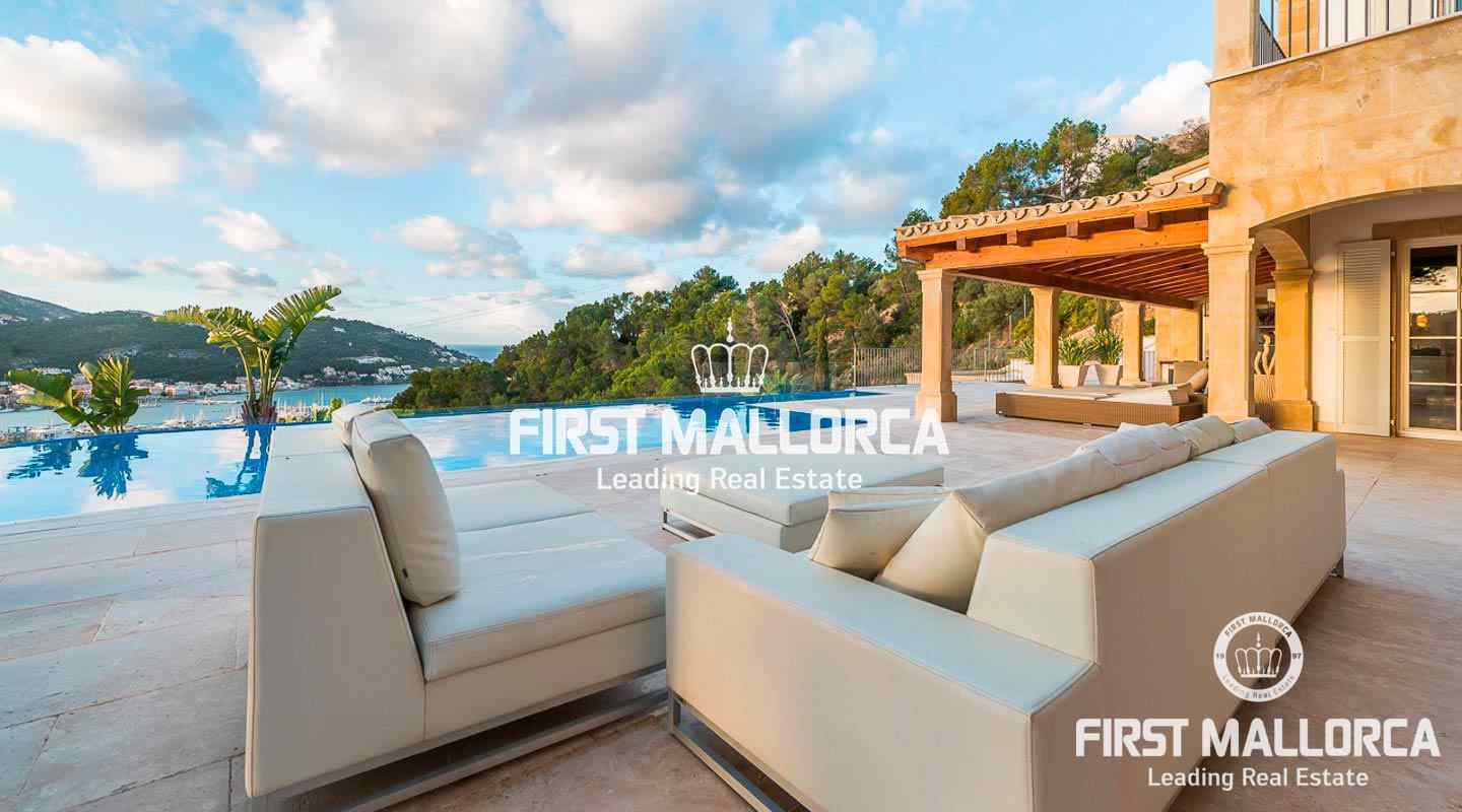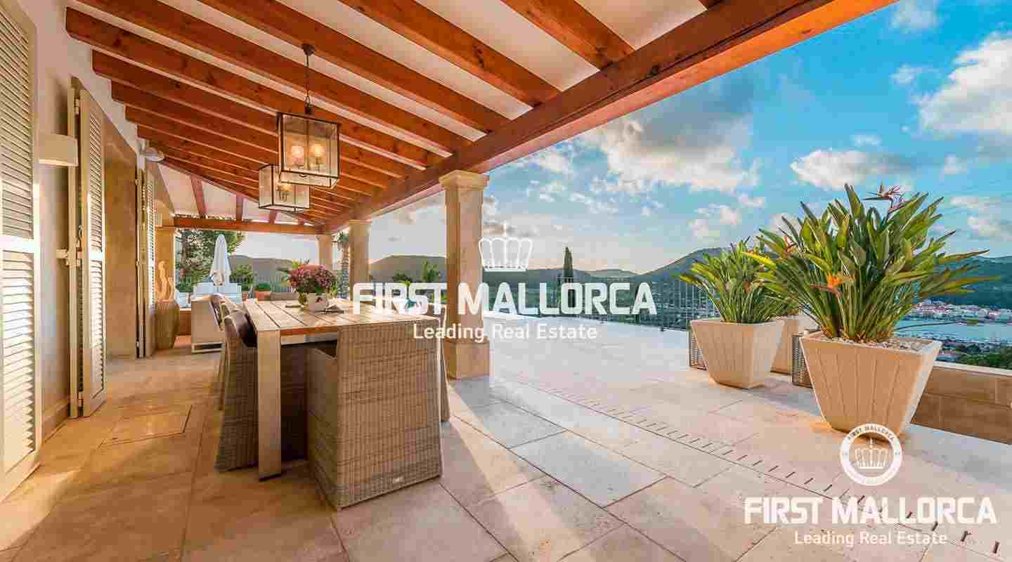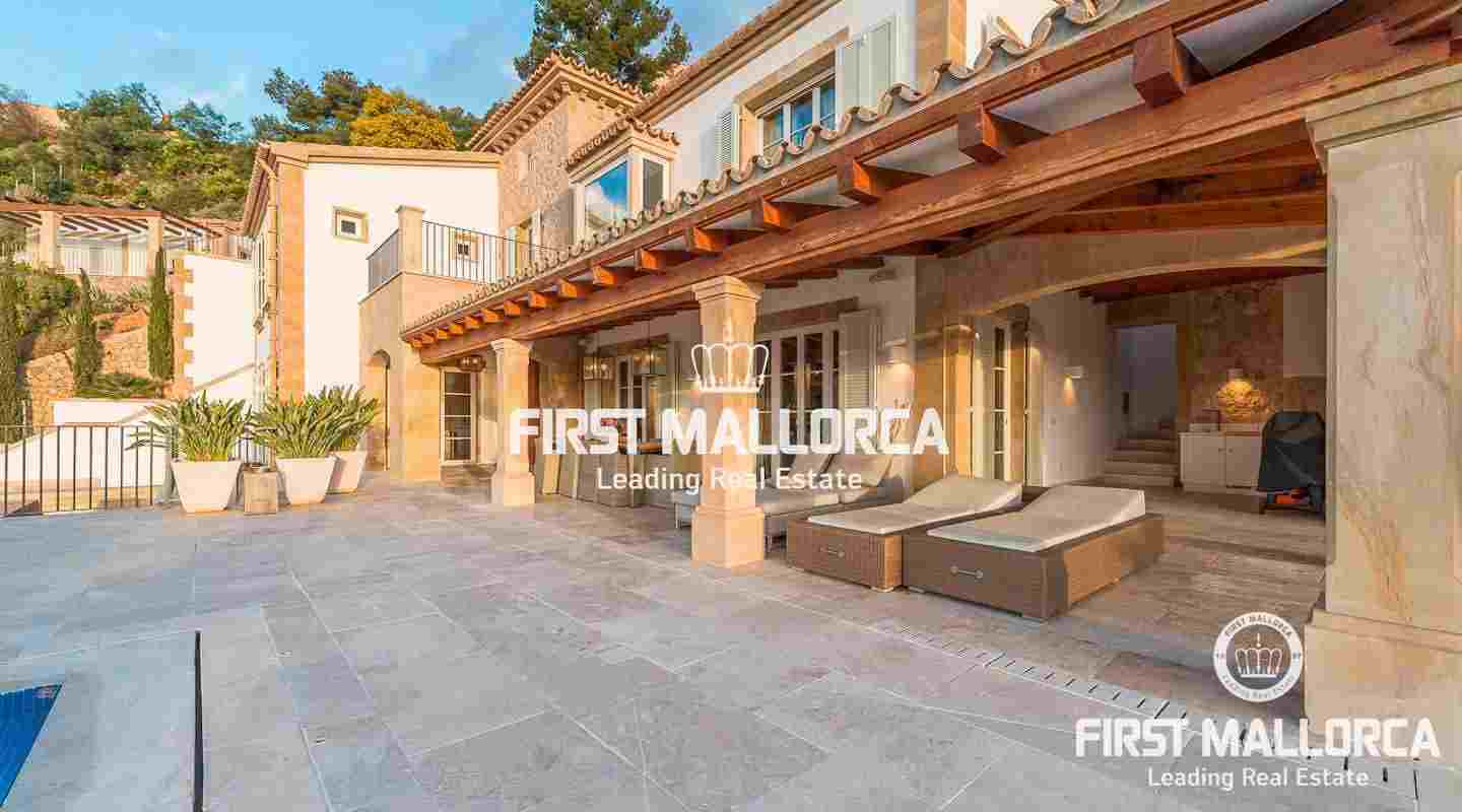 Diese Villa in privilegierter Lage von Puerto de Andratx, überzeugt durch eine einmalige Umgebung, mit Blick auf den Hafen, gesäumt von Bäumen, kommt man in den Genuss eines unvergleichbaren Panormas. Das Design verkörpert den typisch mediterranen Lebenstil unserer Insel und lässt Sie daran teil haben. Viel Platz für die ganze Familie, wie für alle Besucher und Freunde wird geboten. So gibt es ein komplettes privates Apartment mit Schlaf/- und Wohnzimmer, ausserdem zwei seperate Apartmenst, welche seitlich des Grundstücks liegen, mit Schlafzimmer, Küche und Bad. Die bei der Konstruktion verwendeten Materialien, wie der Travertin Marmorfussboden, überzeugen durch exquisite Qualität. Umgeben von beeindruckender Natur, laden Sie die vielen Annehmlichkeiten, wie Sauna, türkisches Bad, Fitnessbereich, Pool, Fussbodenheizung, Klimaanlage warm/kalt, um einige Annehmlichkeiten zu nennen, zum Entspannen ein. Das Alles, in einem Ambiente, perfekt hormonierend aus Tradition und Moderne.