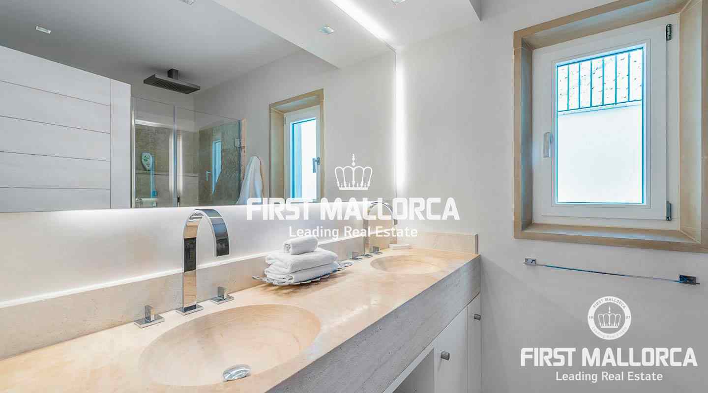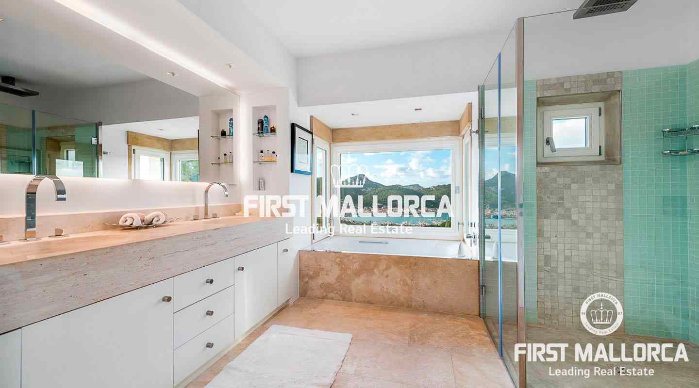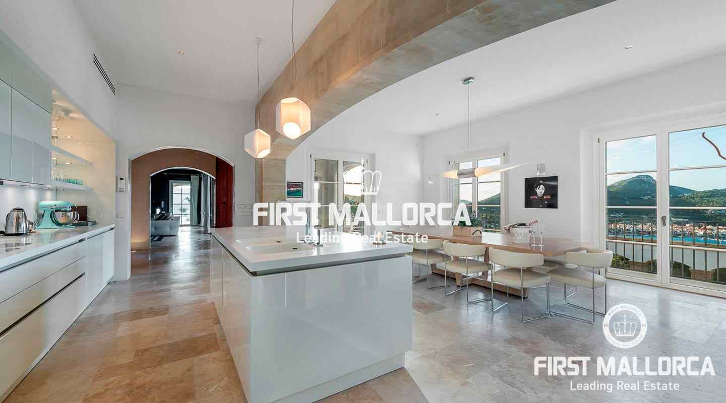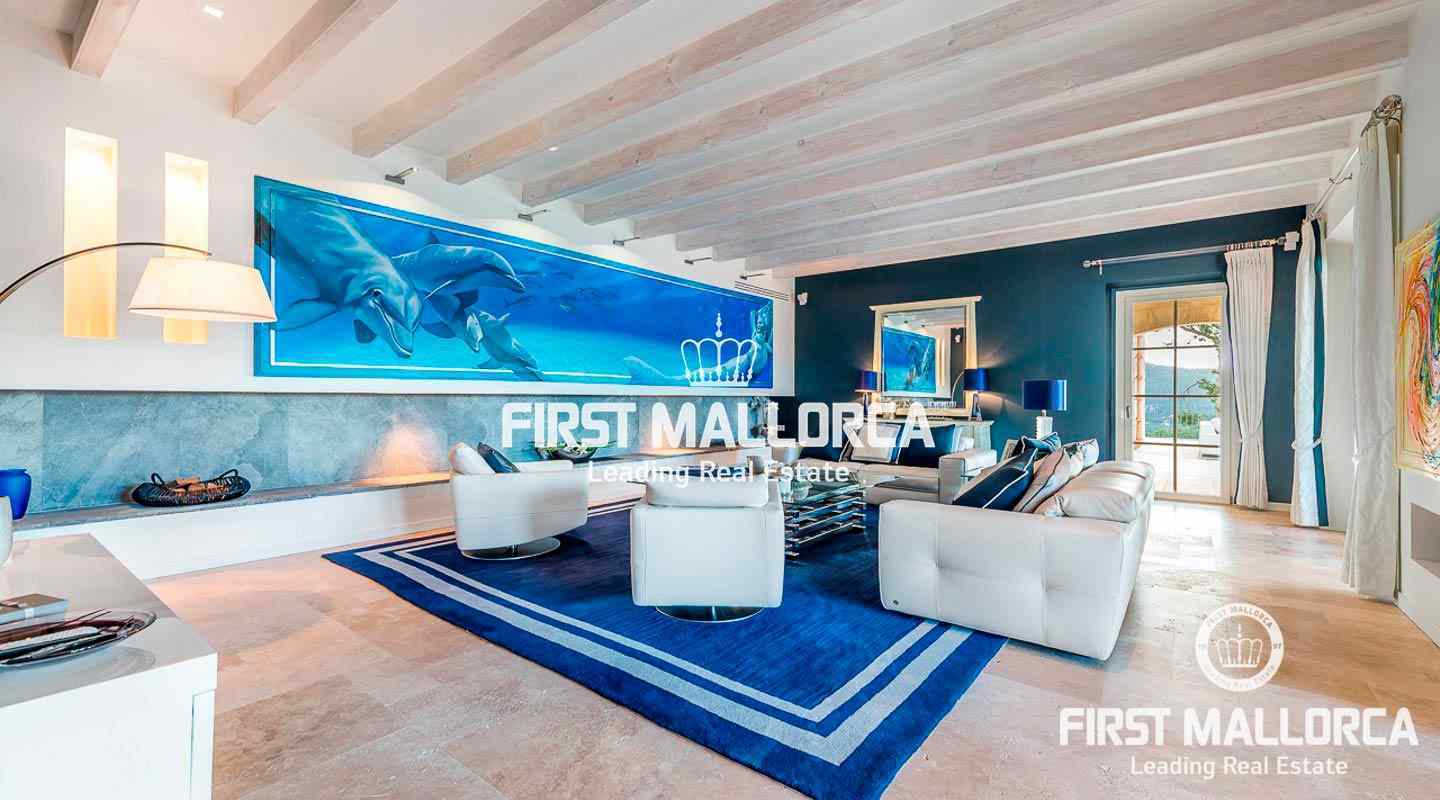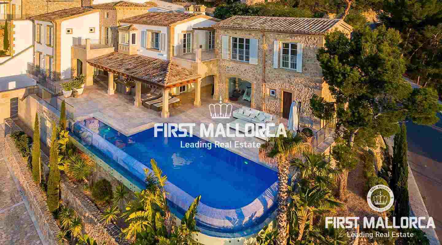 Diese Villa in privilegierter Lage von Puerto de Andratx, überzeugt durch eine einmalige Umgebung, mit Blick auf den Hafen, gesäumt von Bäumen, kommt man in den Genuss eines unvergleichbaren Panormas. Das Design verkörpert den typisch mediterranen Lebenstil unserer Insel und lässt Sie daran teil haben. Viel Platz für die ganze Familie, wie für alle Besucher und Freunde wird geboten. So gibt es ein komplettes privates Apartment mit Schlaf/- und Wohnzimmer, ausserdem zwei seperate Apartmenst, welche seitlich des Grundstücks liegen, mit Schlafzimmer, Küche und Bad. Die bei der Konstruktion verwendeten Materialien, wie der Travertin Marmorfussboden, überzeugen durch exquisite Qualität. Umgeben von beeindruckender Natur, laden Sie die vielen Annehmlichkeiten, wie Sauna, türkisches Bad, Fitnessbereich, Pool, Fussbodenheizung, Klimaanlage warm/kalt, um einige Annehmlichkeiten zu nennen, zum Entspannen ein. Das Alles, in einem Ambiente, perfekt hormonierend aus Tradition und Moderne.