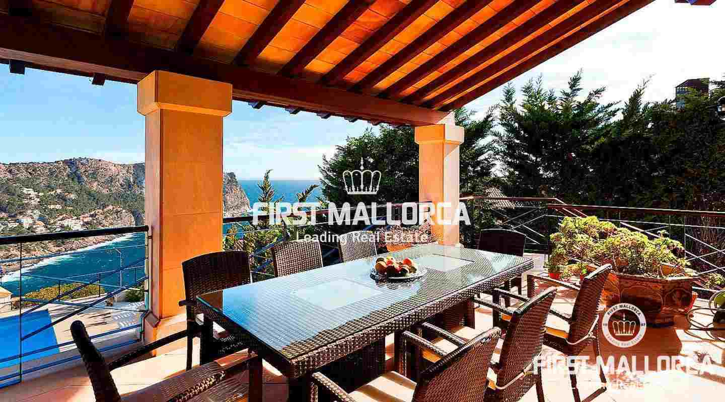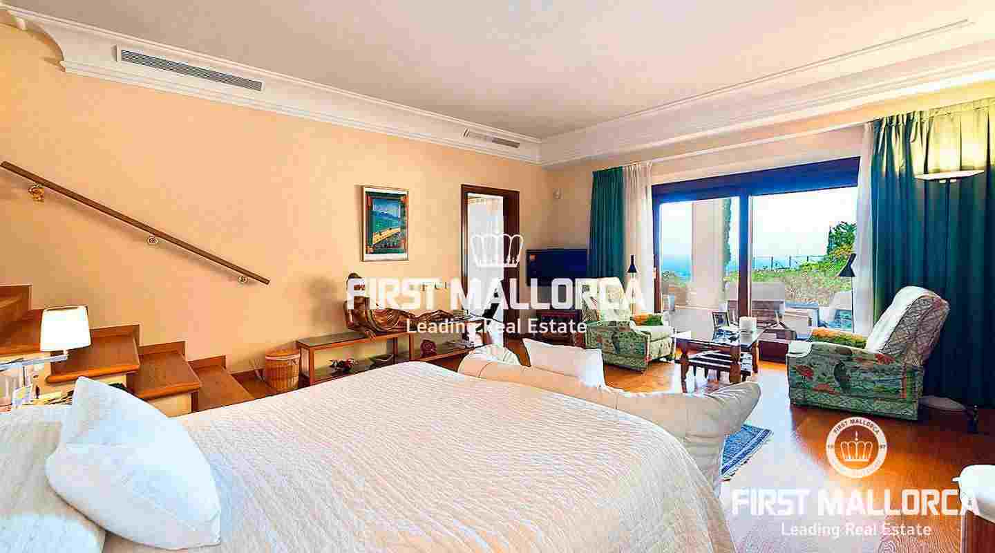 Eine aussergewöhnliche und luxuriöse Villa in der privaten Anlage "Las Brisas" zwischen Cala Marmacen und Cala Llamp in Port Andratx. Das Haus in Bestlage ist nach Süden ausgerichtet und hat einen atemberaubenden Blick über die Bucht von Cala Llamp, an einigen Tagen kann man sogar bis zur Nachbarinsel Ibiza schauen. Der Hafen von Puerto Andratx ist von hier aus mit dem Auto in nur wenigen Minuten zu erreichen. Zusätzliche Ausstattungsmerkmale: Lift im Haus, Fussbodenheizung (Gas), Klimaanlage (w/k), beheizbarer Pool, Osmose-System, zentrales Staubsaugersystem, separates Gäste-Apartment, Fitnessraum, Billiard- bzw. Kinoraum, separate Küche und Bad für Hauspersonal, Wasserreservetank mit 27.000 Litern, Garage für 2 PKW.