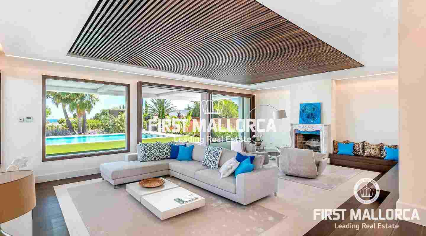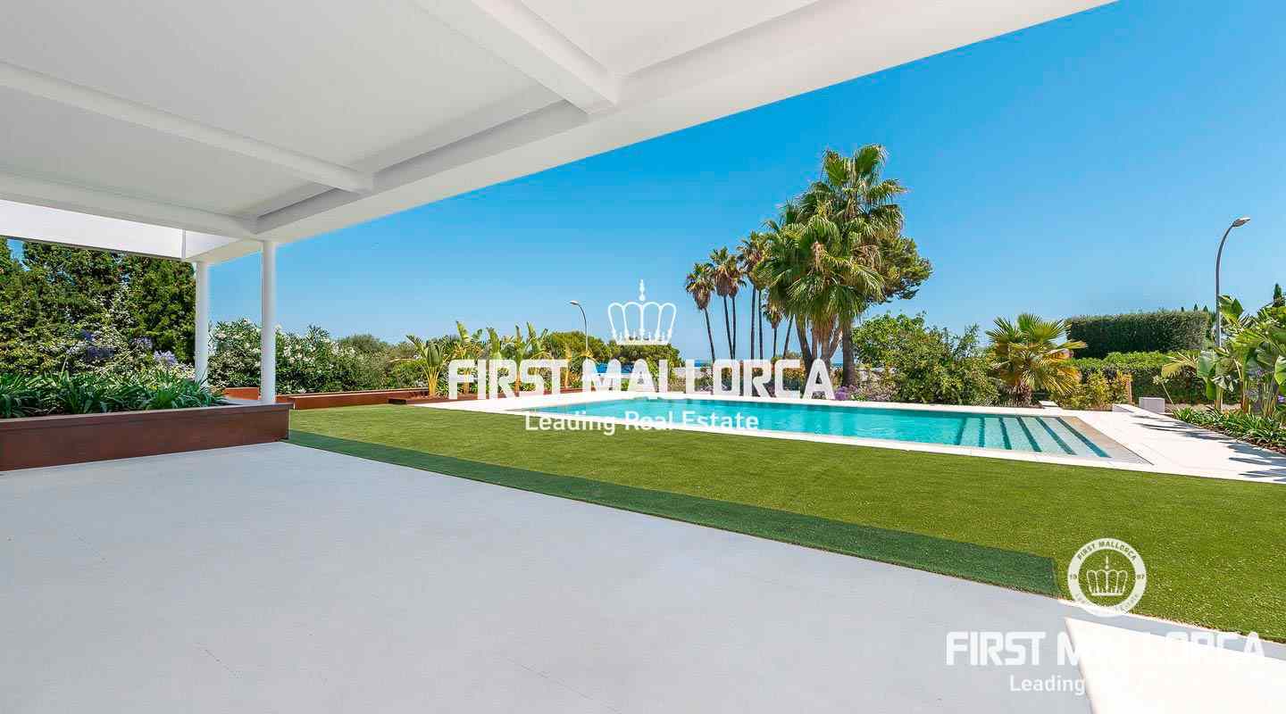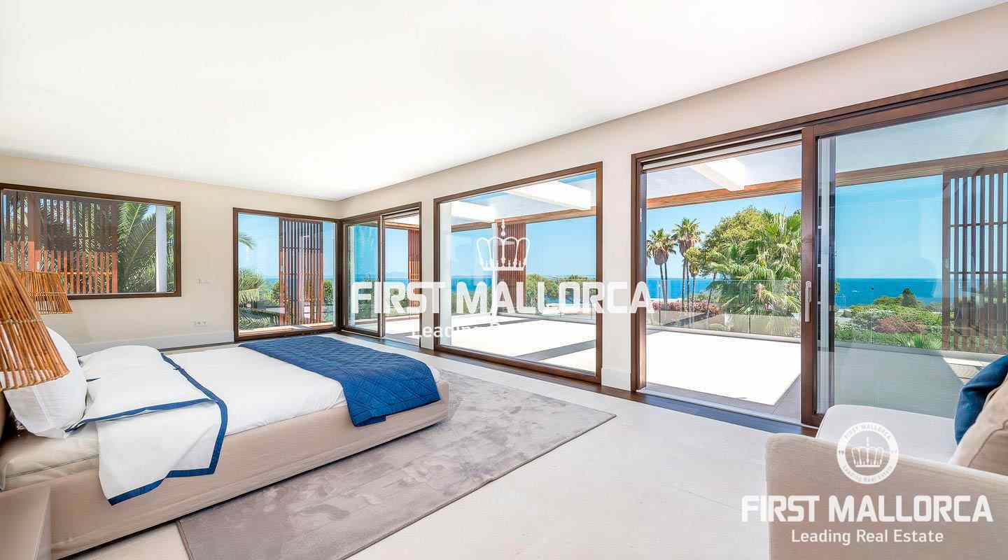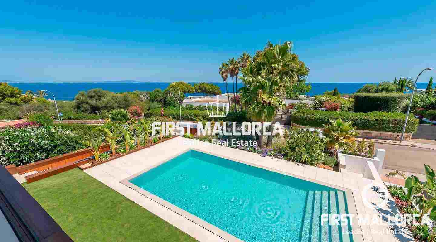 Diese moderne Villa in Südostlage, gelegen auf einem 1130 m² großen Grundstück in Sol de Mallorca, genießt einen fantastischen Meerblick.