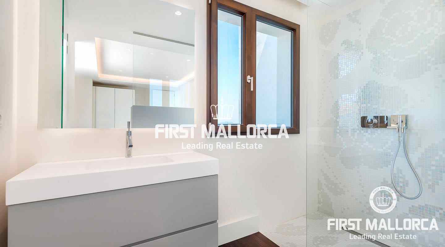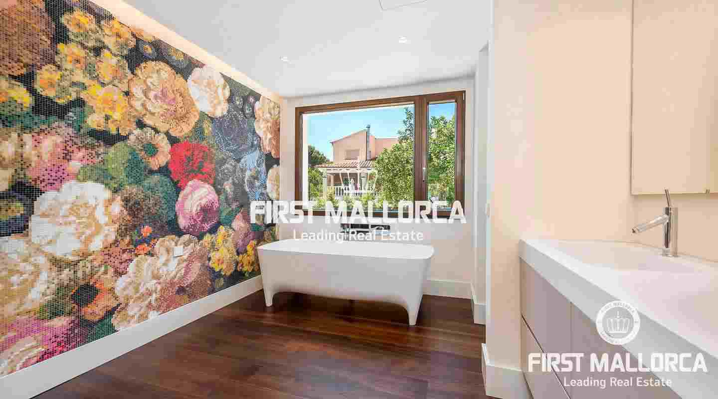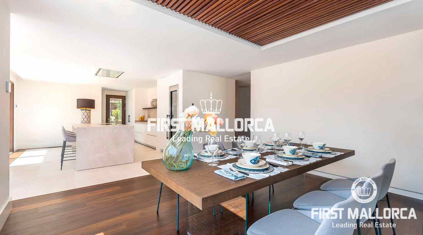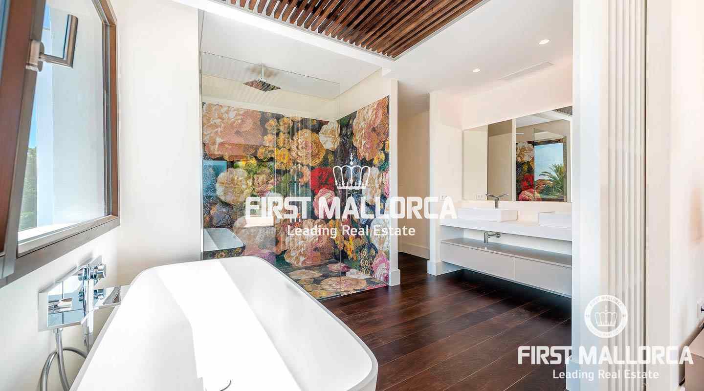 Diese moderne Villa in Südostlage, gelegen auf einem 1130 m² großen Grundstück in Sol de Mallorca, genießt einen fantastischen Meerblick.