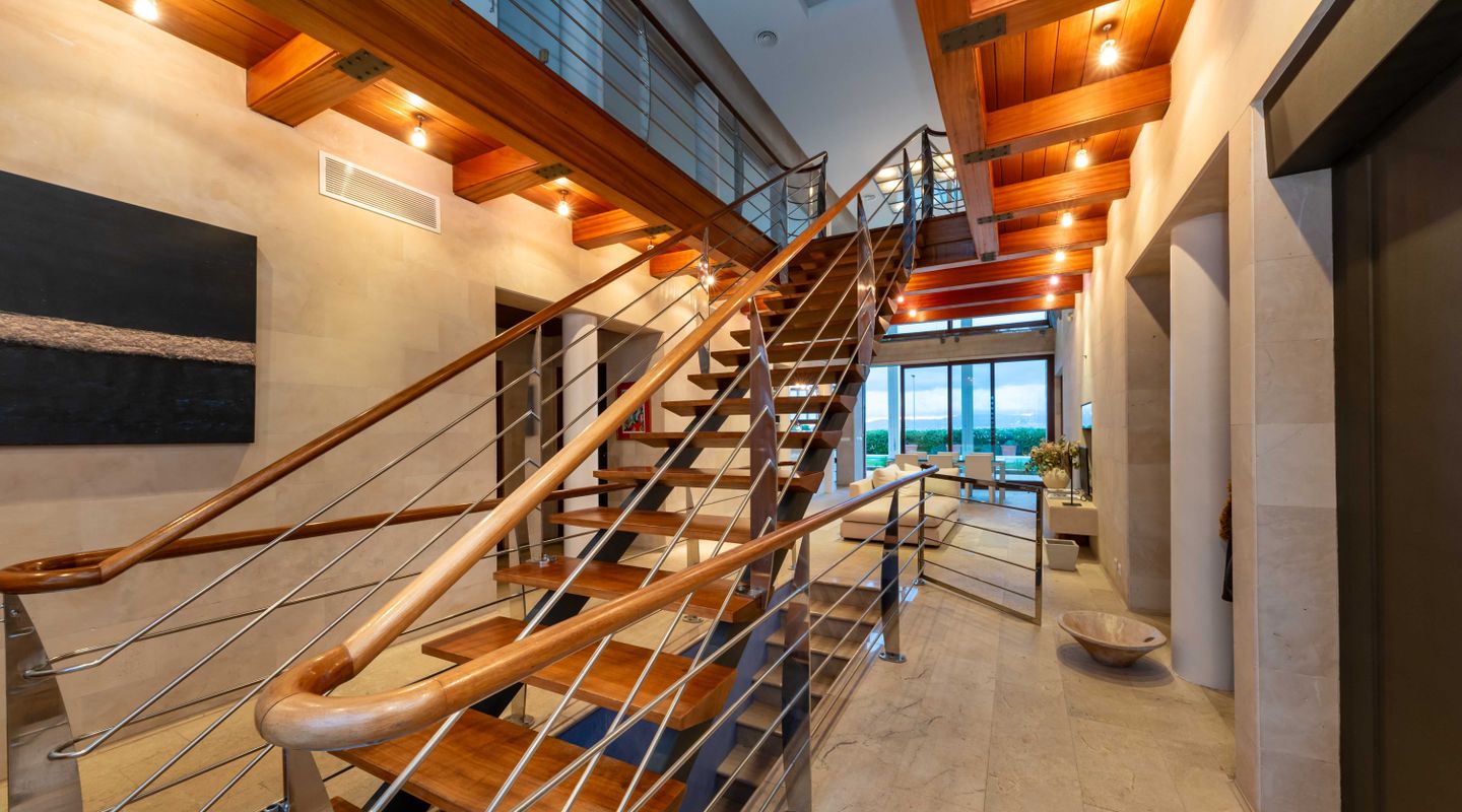 Die Villa befindet sich in erster Linie an der Küste, mit einem privilegierten Blick auf die Bucht von Palma. Die Qualität der Materialien und das Design machen dieses luxuriöse Haus, das von seinem ersten Besitzer in einem dänischen Stil mit Anspielungen auf die Welt des Segeln entworfen wurde, zu einem einmaligen Erlebnis. Die Treppe, die die Räume im ersten, zweiten und dritten Stockwerk verteilt, erschließt das gesamte Haus, das sich um dieses zentrale Element dreht. Holz, Stahl, Naturstein und Glas sind die Elemente, die die Essenz dieser Villa ausmachen.