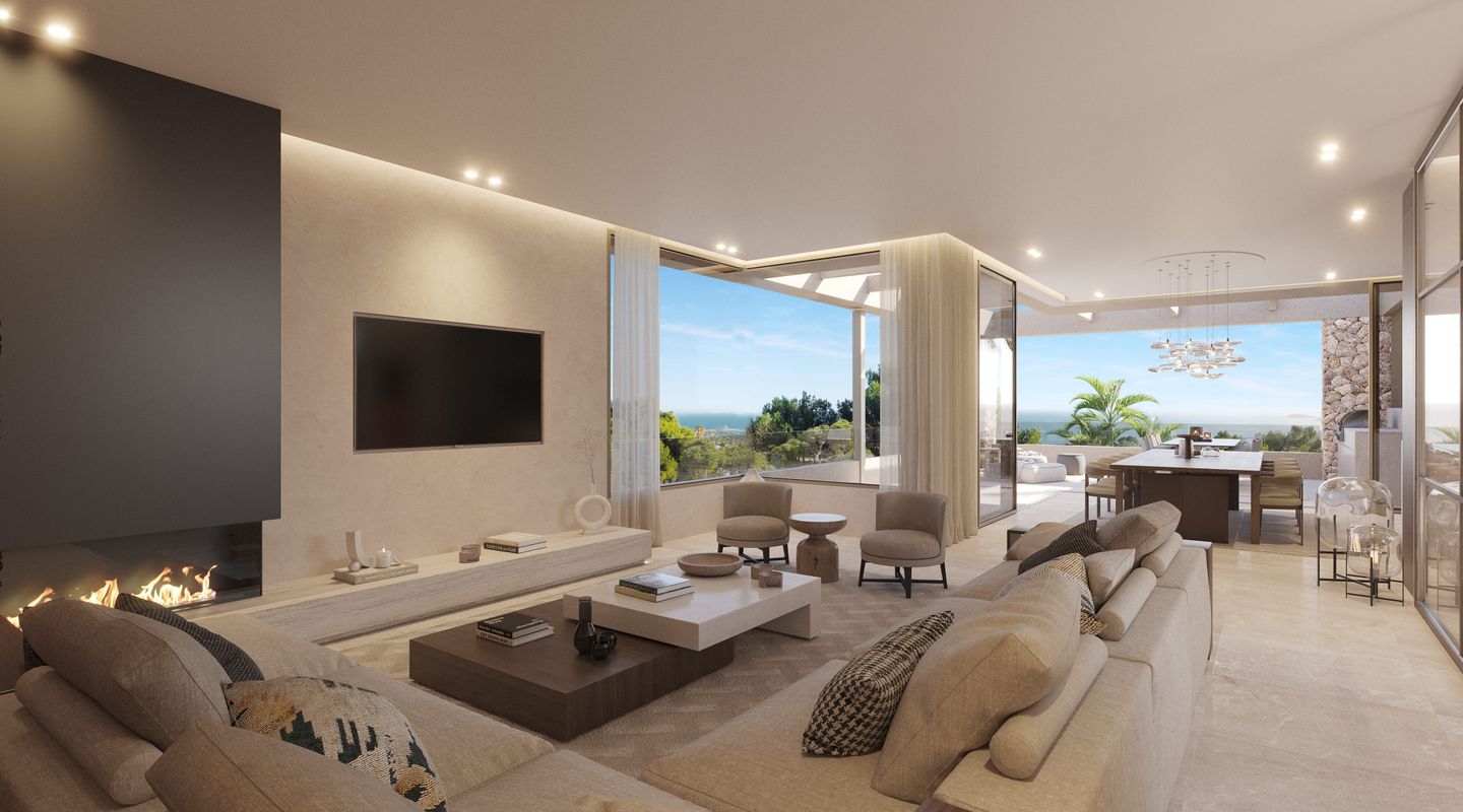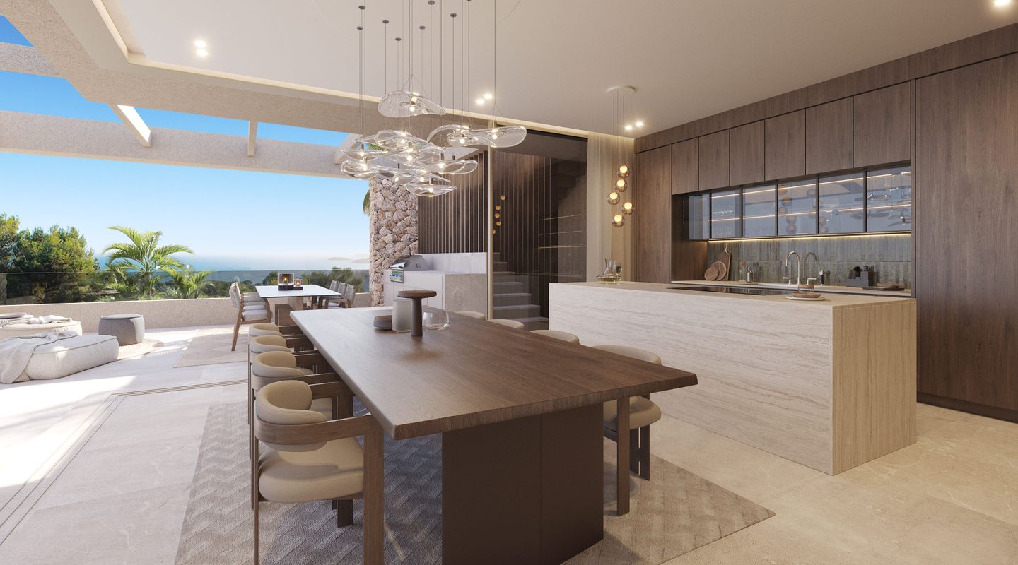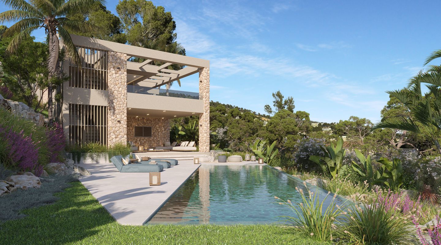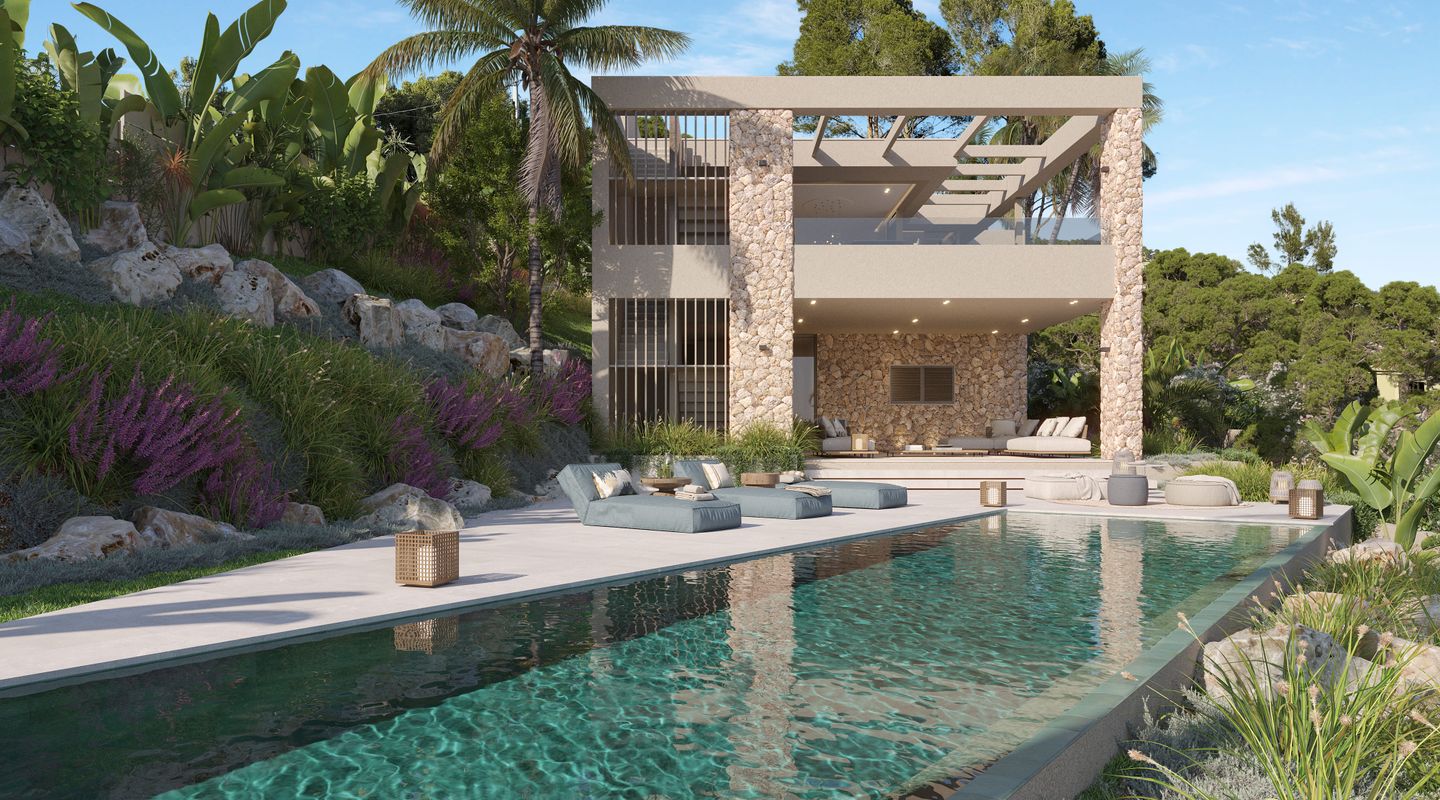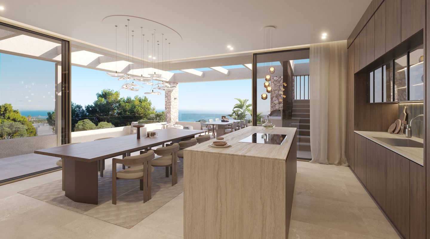 Diese außergewöhnliche, neu erbaute Luxusvilla befindet sich in der exklusiven Wohnenklave Costa d'en Blanes und bietet einen spektakulären Meerblick nach Süden sowie ein kompromissloses Qualitätsniveau in allen Bereichen. Die Immobilie wurde mit viel Liebe zum Detail entworfen und verbindet zeitgenössische Architektur mit hochwertigen Naturmaterialien, darunter maßgefertigte Walnussholzarbeiten, die jedem Raum Wärme und Raffinesse verleihen. Große, raumhohe Fenster maximieren das natürliche Licht und rahmen den ungestörten Blick auf das Mittelmeer ein, während die Südausrichtung das ganze Jahr über für sonnendurchflutete Innenräume sorgt. Der elegante, offene Wohnbereich geht nahtlos in großzügige Terrassen über und schafft so die perfekte Balance zwischen Innen- und Außenbereich. Eine voll ausgestattete Designerküche mit hochwertigen Geräten und raffinierten Oberflächen ist nahtlos mit dem Ess- und Wohnbereich verbunden – ideal für gesellige Anlässe und ein entspanntes Familienleben. Die Villa verfügt über mehrere luxuriöse Schlafzimmersuiten, die jeweils mit einem eigenen Bad und Zugang zu privaten Terrassen ausgestattet sind. Die Hauptsuite ist ein privater Rückzugsort mit Ankleidebereich, einem Badezimmer im Spa-Stil und atemberaubendem Meerblick. Dieses Haus ist mit herausragenden Annehmlichkeiten ausgestattet, darunter ein privater Aufzug, der alle Etagen verbindet, ein voll ausgestatteter Fitnessraum, ein klimatisierter Weinkeller und ein exklusives Heimkino für ultimativen Komfort und Unterhaltung. Der beheizte Infinity-Pool ist von wunderschön angelegten Terrassen und Chill-out-Bereichen umgeben, die sich perfekt eignen, um den mediterranen Lebensstil Mallorcas in absoluter Privatsphäre zu genießen. Das Anwesen verfügt außerdem über einen sicheren Parkplatz für drei Fahrzeuge, der durch ein hochmodernes Drehscheibensystem für müheloses Manövrieren ergänzt wird. Zu den weiteren hochwertigen Ausstattungsmerkmalen gehören eine fortschrittliche Hausautomation, Fußbodenheizung, integrierte Klimaanlage und hochwertige Handwerkskunst im gesamten Haus. Nur wenige Minuten vom berühmten Yachthafen von Puerto Portals entfernt, bietet diese bemerkenswerte Villa eine seltene Gelegenheit, eine wirklich hochwertige Residenz in einer der begehrtesten Lagen der Insel zu erwerben.