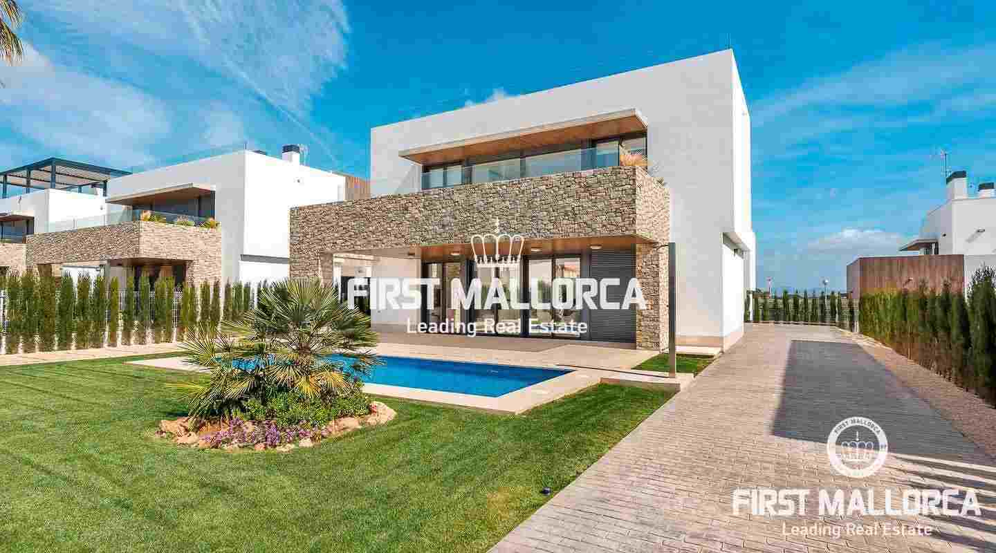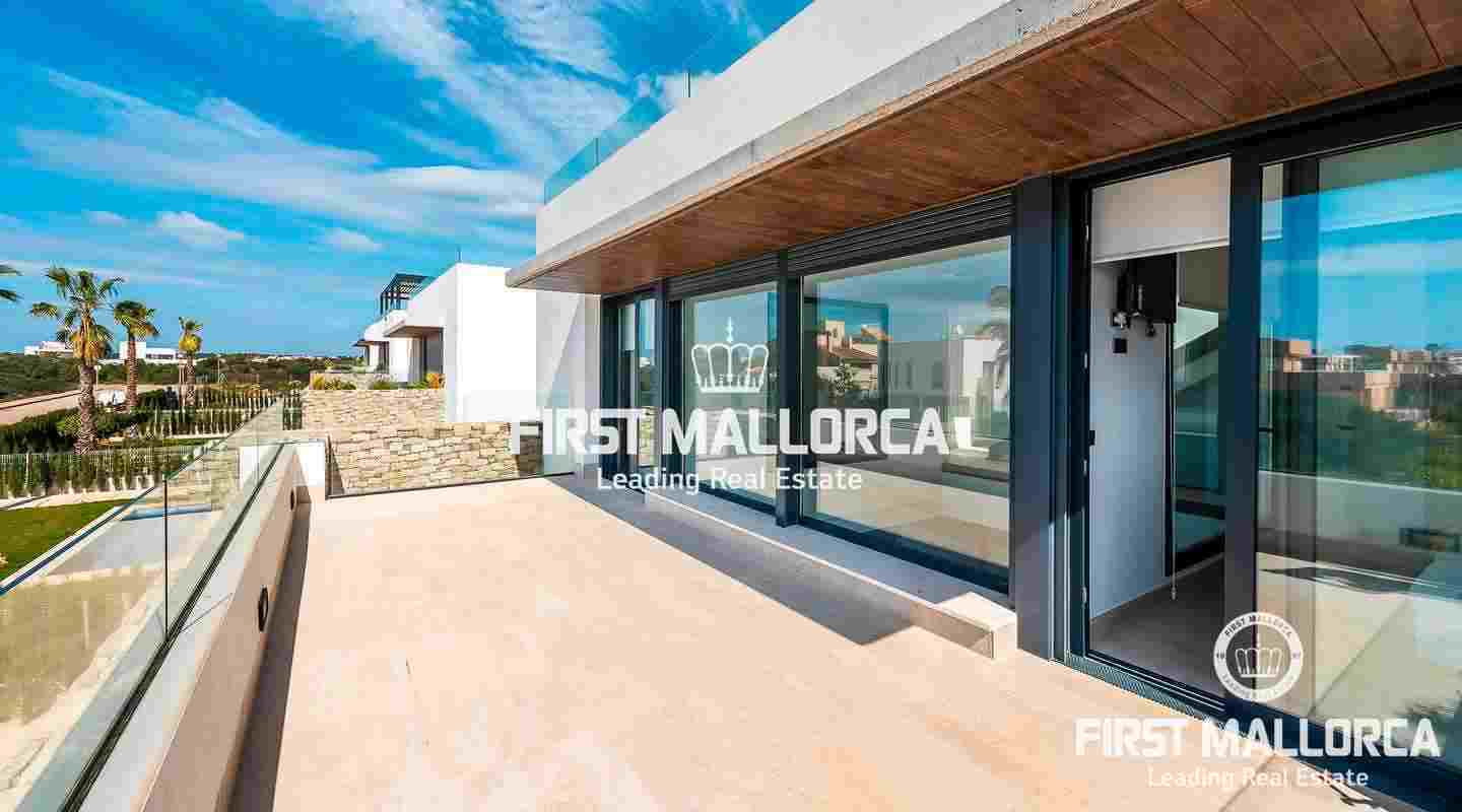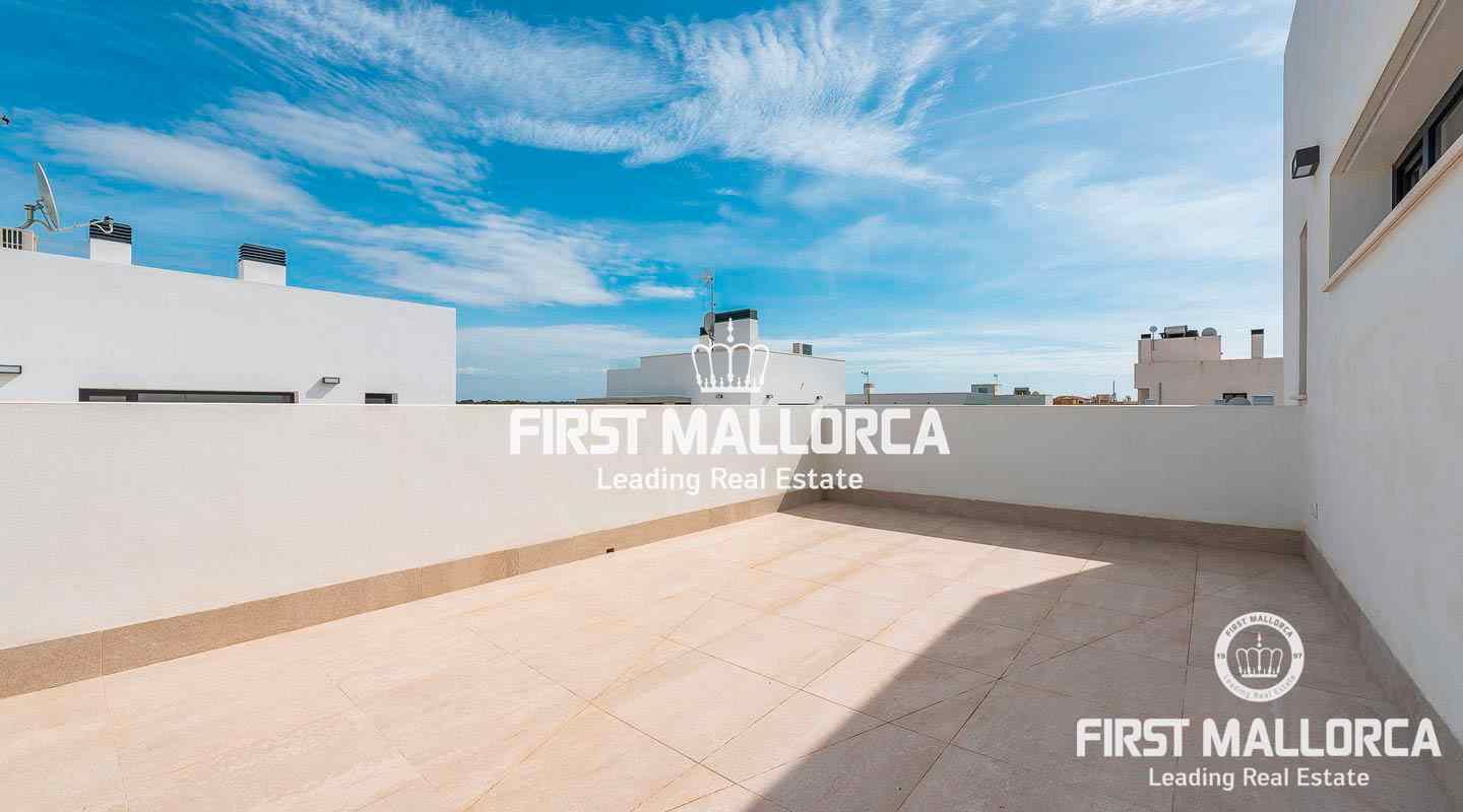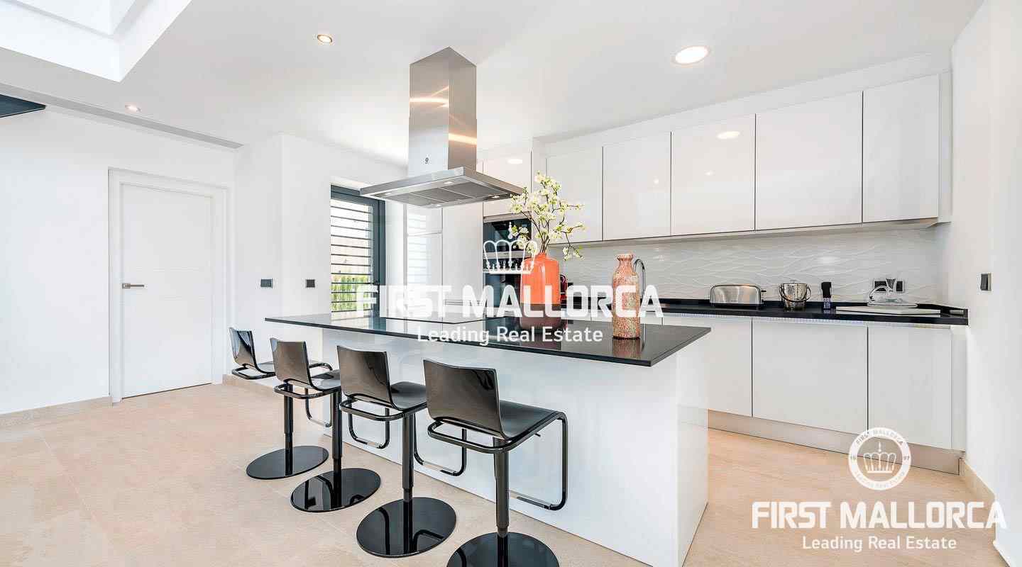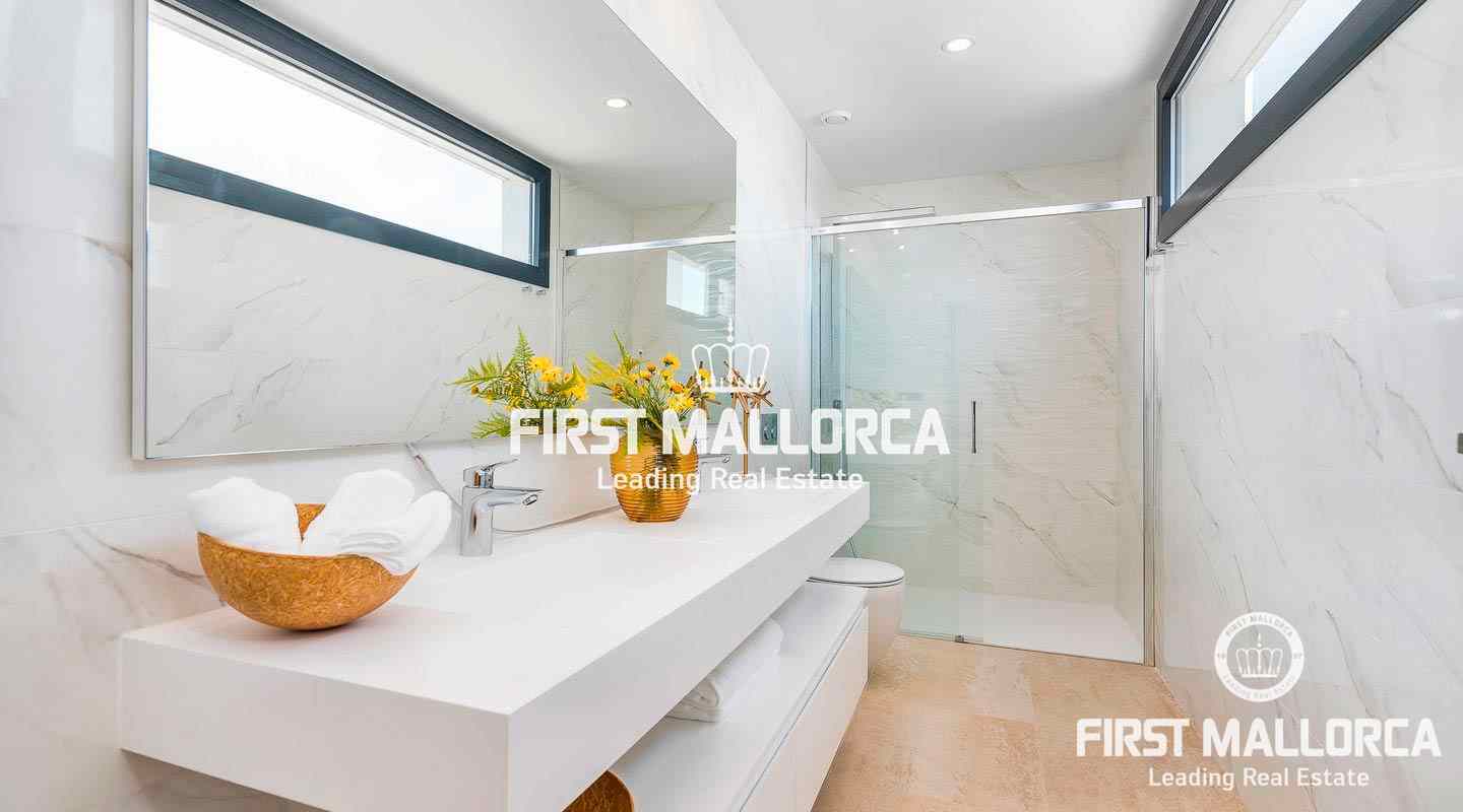 Im Erdgeschoss steht ein offener Wohn-/ Essbereich mit Küche zur Verfügung. Das Highlight hier ist die Galerie mit doppelter Raumhöhe im Essbereich. Bodentiefe Fenster ermöglichen direkten Zugang zum Garten, welcher dank Pool der perfekte Ort zum Entspannen und Abkühlen ist. Auf dieser Etage befinden sich darüber hinaus ein Schlafzimmer, ein Bad sowie ein Hauswirtschaftsraum. Im Obergeschoss gibt es weitere 2 Schlafzimmer mit Ankleide, Bad en Suite und Zugang zur einer Terrasse, auf welcher Sie die Sonne Mallorcas genießen können. Einen weiteren Sonnenplatz bietet die Dachterrasse mit Blick auf den Hafen. Zudem verfügt jede Immobilie über eine Garage.