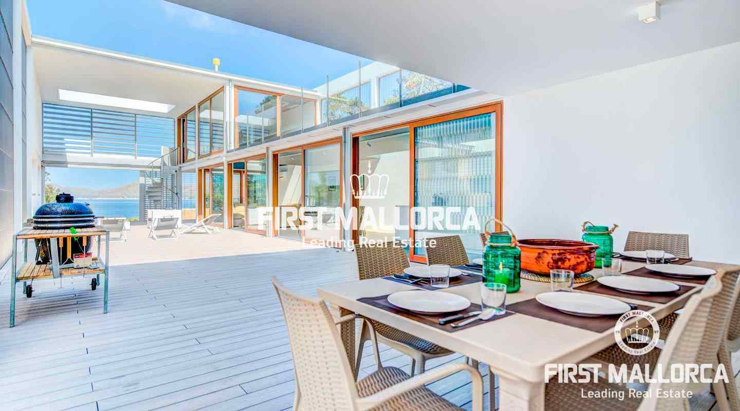 Villa im modernen Design, direkt am Meer nahe dem Hafen von Manresa, mit kristallklaren Stränden und nur 5 Autominuten von Alcudia entfernt.