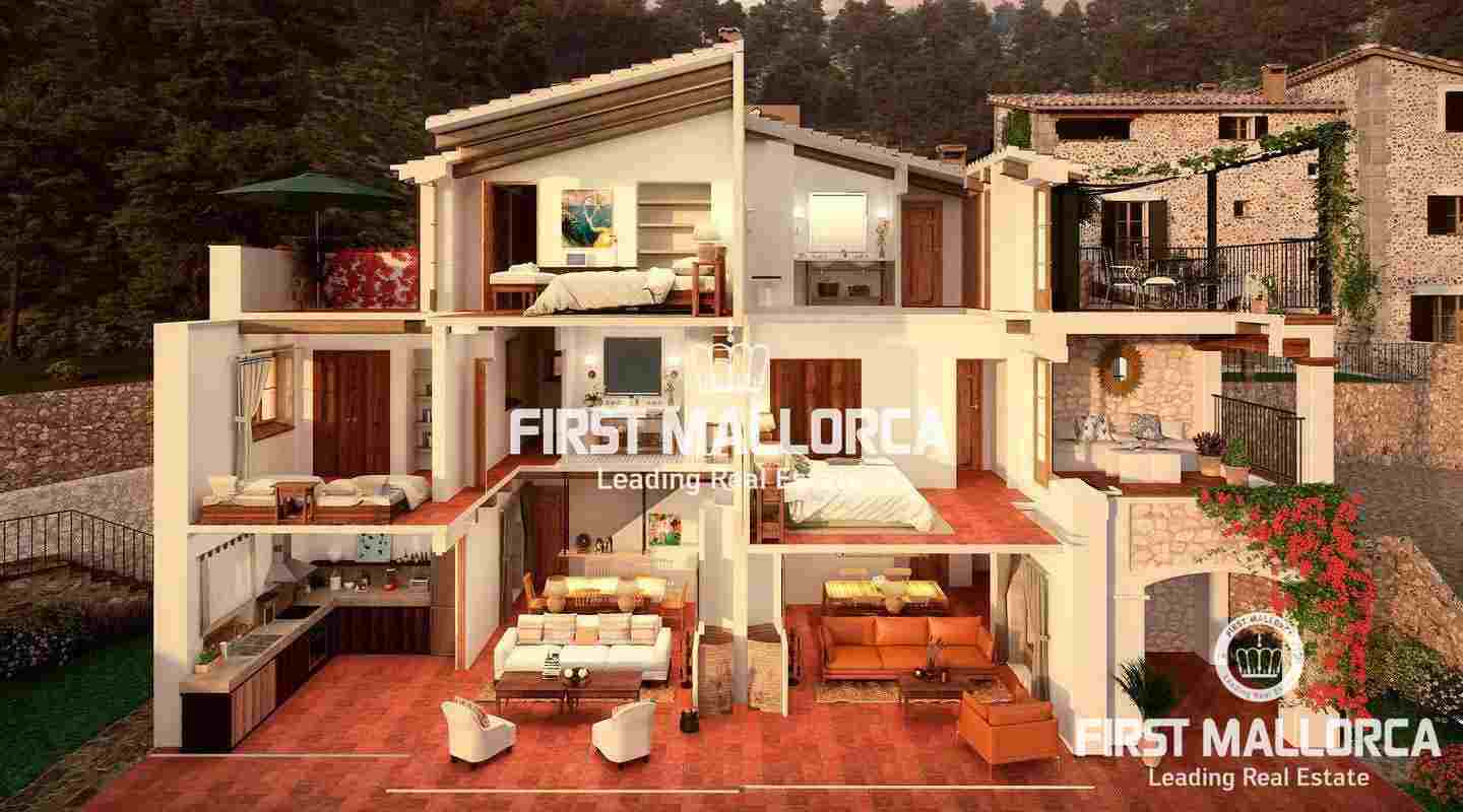 Deià ist das Juwel mallorquinischer Kultur und liegt mitten im Tramuntana-Gebirge, UNESCO-Welterbe, wo über Jahrzehnte hinweg Künstler inspiriert wurden und noch heute ein einzigartiges Ambiente herrscht. Hier befindet sich dieses wunderschöne Neubauhaus, welches den Charakter des authentischen Ortes bewahrt und geschickt mit höchstem Wohnkomfort, modernem Innendesign sowie erstklassigen Materialien kombiniert.