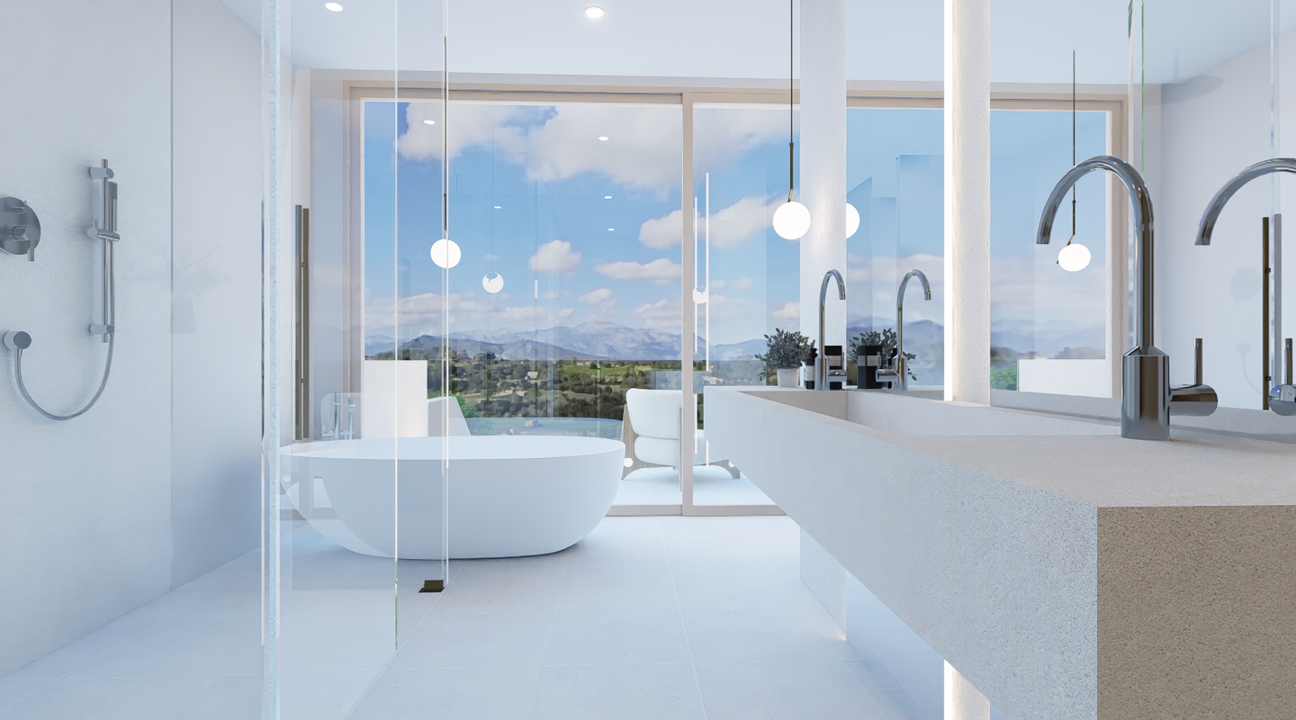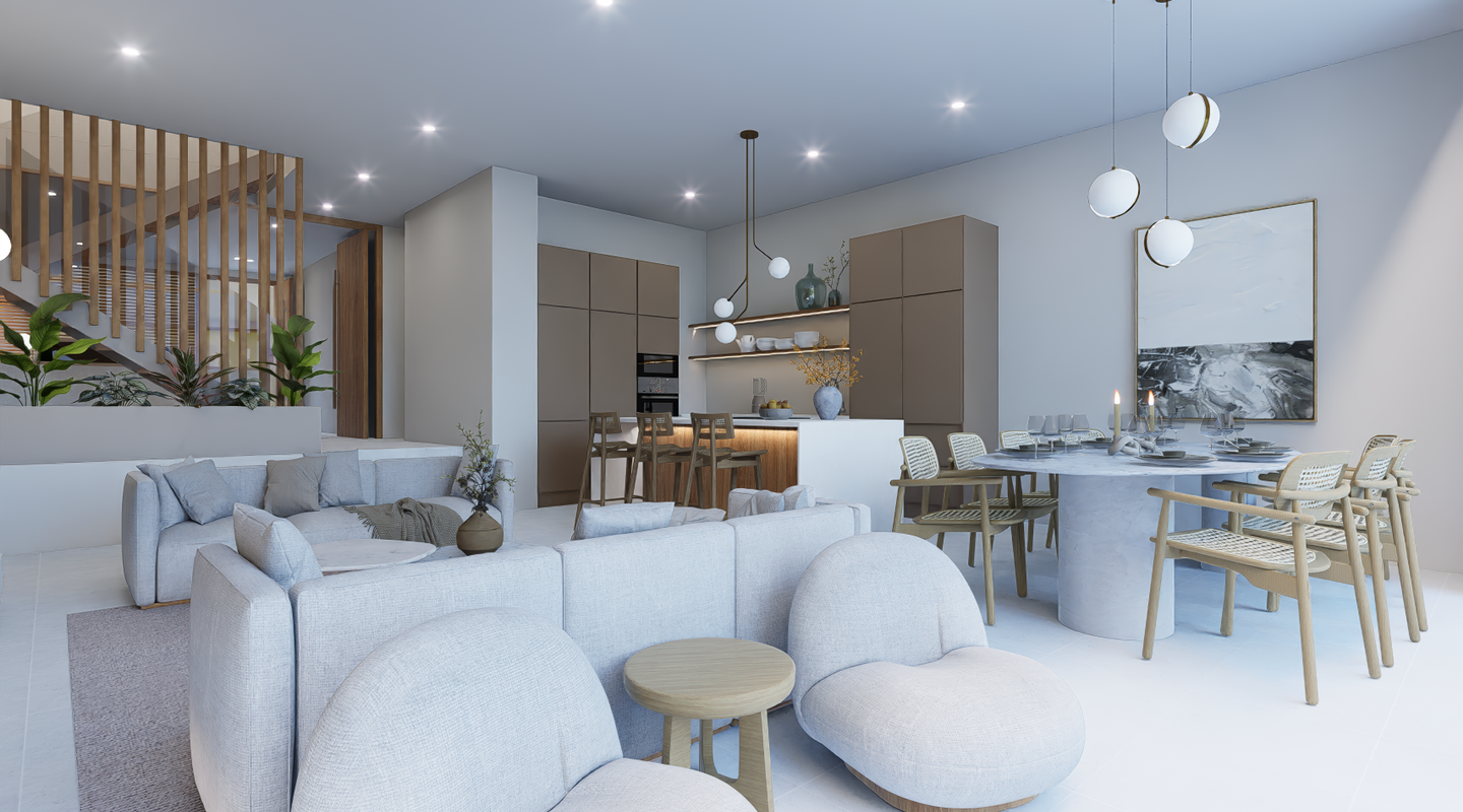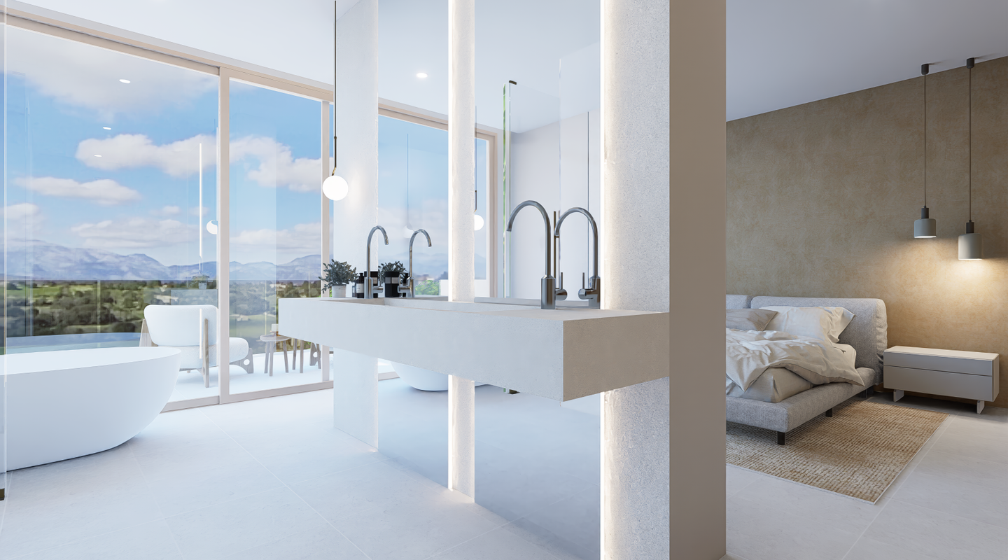 Die Immobilie verfügt über vier Doppelschlafzimmer und vier Badezimmer, mehrere davon en suite, sie bietet somit Komfort und Unabhängigkeit für Familienmitglieder und Gäste gleichermaßen. Jeder Raum wurde mit klaren Linien, integrierten Stauraumlösungen und einer ruhigen, entspannenden Atmosphäre gestaltet.