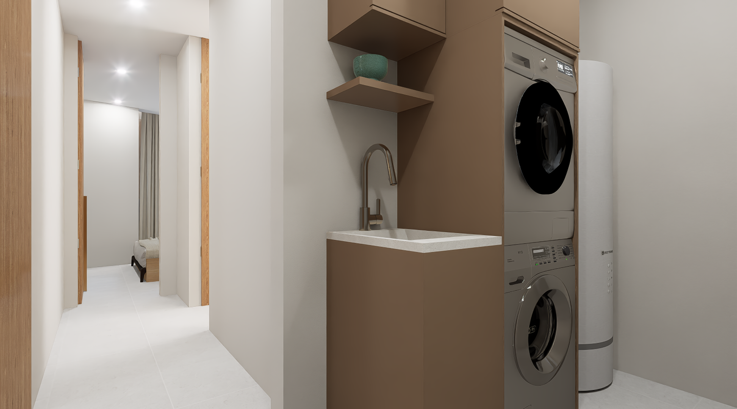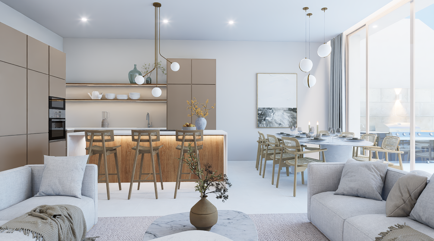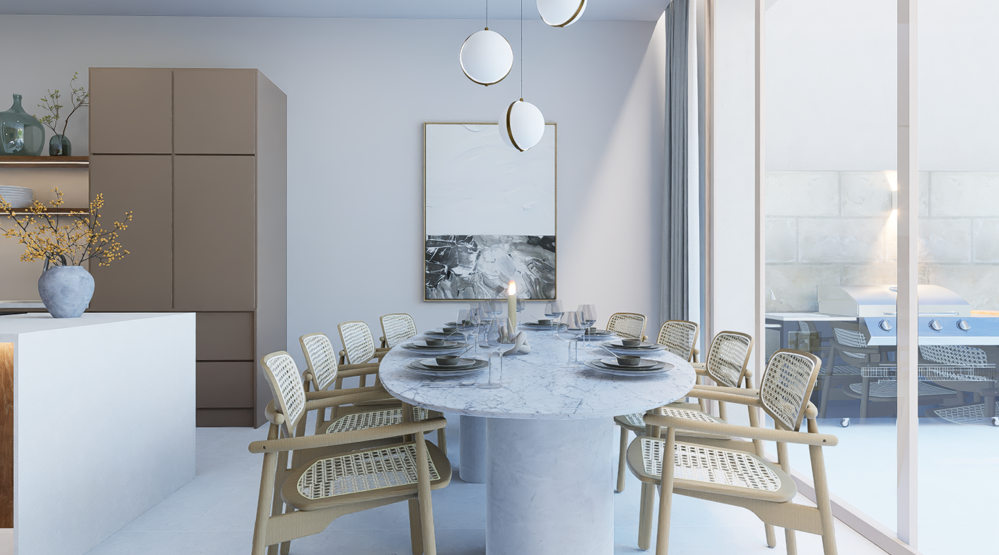 Die Immobilie verfügt über vier Doppelschlafzimmer und vier Badezimmer, mehrere davon en suite, sie bietet somit Komfort und Unabhängigkeit für Familienmitglieder und Gäste gleichermaßen. Jeder Raum wurde mit klaren Linien, integrierten Stauraumlösungen und einer ruhigen, entspannenden Atmosphäre gestaltet.