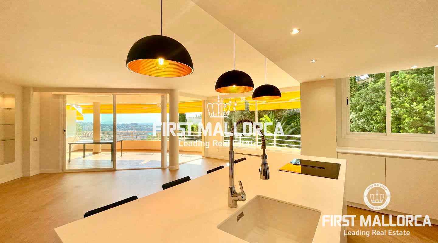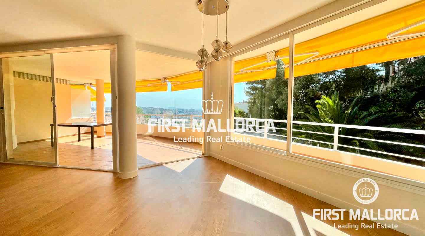 Elegant and spacious apartment in quiet residential area, with three bedrooms and three bathrooms. It has two private community parkings, a community swimming pool with a sauna, and a paddle court. Its location is recommended for its proximity to Palma, the popular beaches of Illetas and Portals Nous, and the proximity to spanish and international schools. Available from 15 May 2023