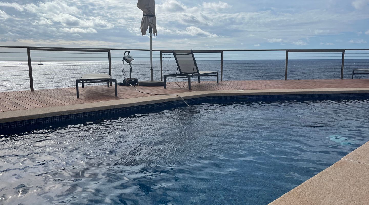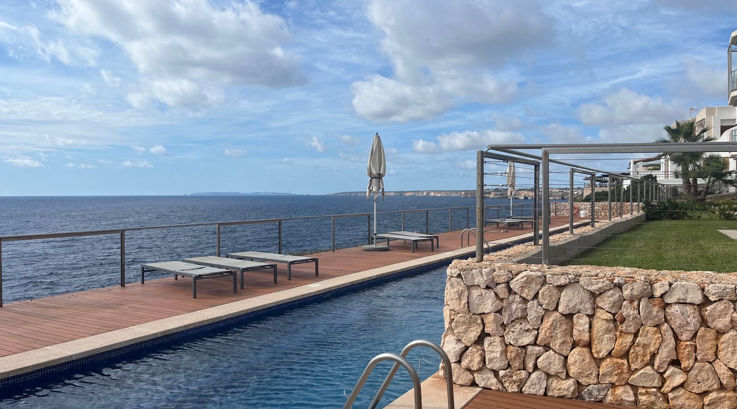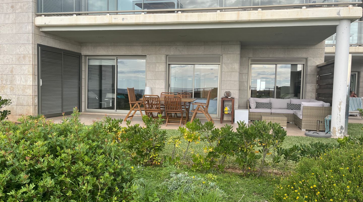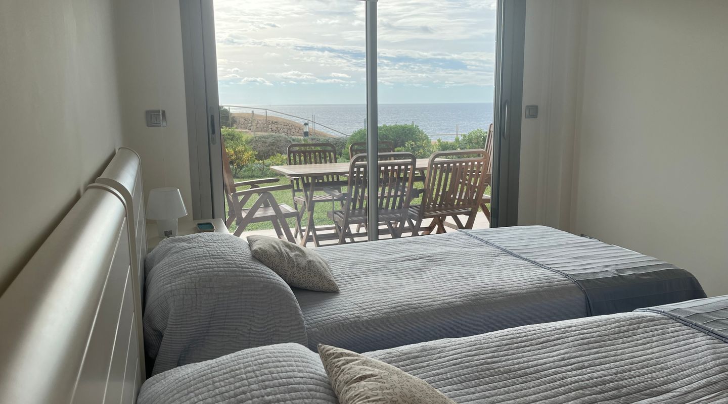This luxurious and absolutely quiet flat is located on the ground floor of the exclusive and well-maintained residential complex ‘Cap Blau’. It has two bedrooms and a living room, all with direct sea views. There are two bathrooms, one with a wellness shower and the other with a bathtub.