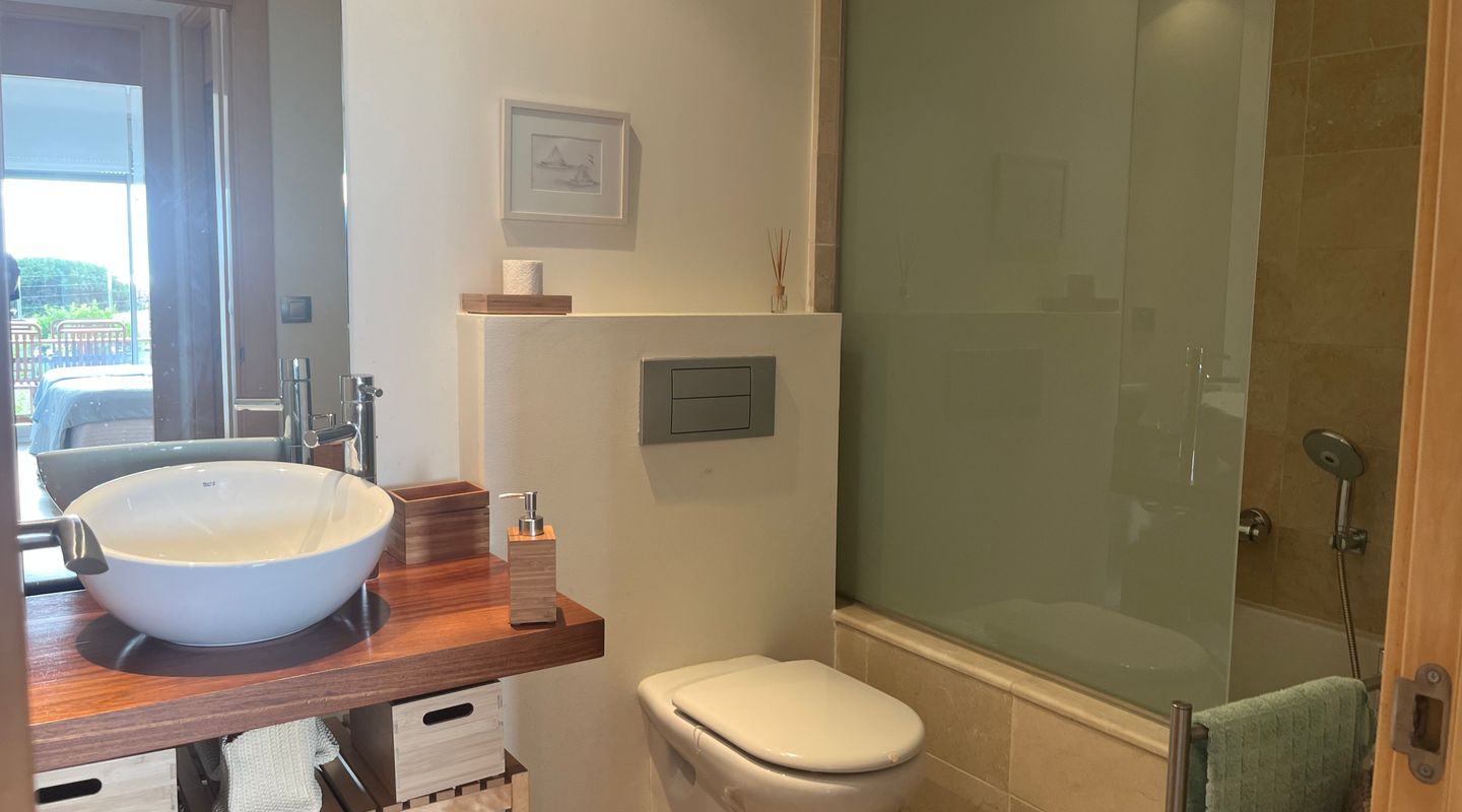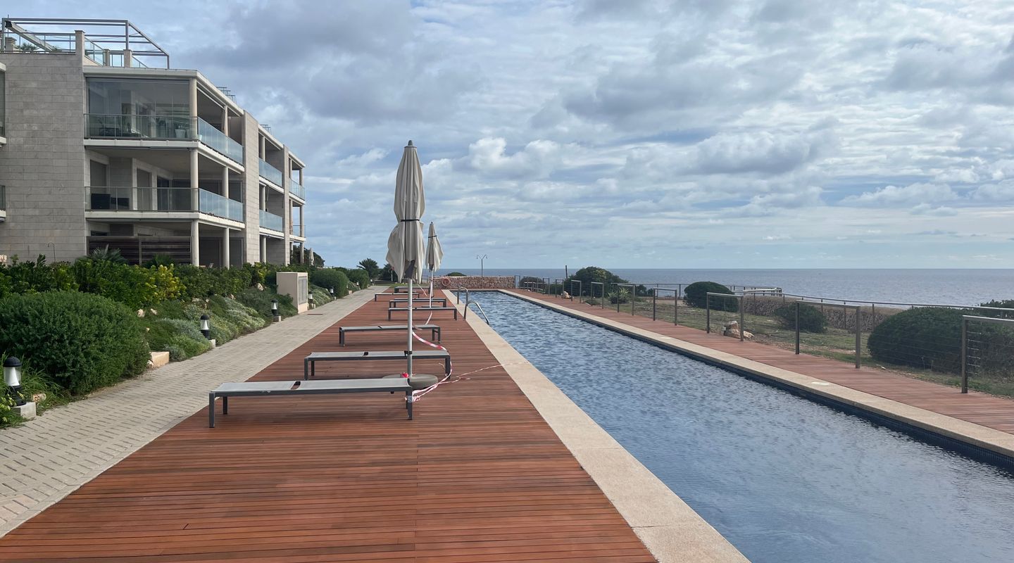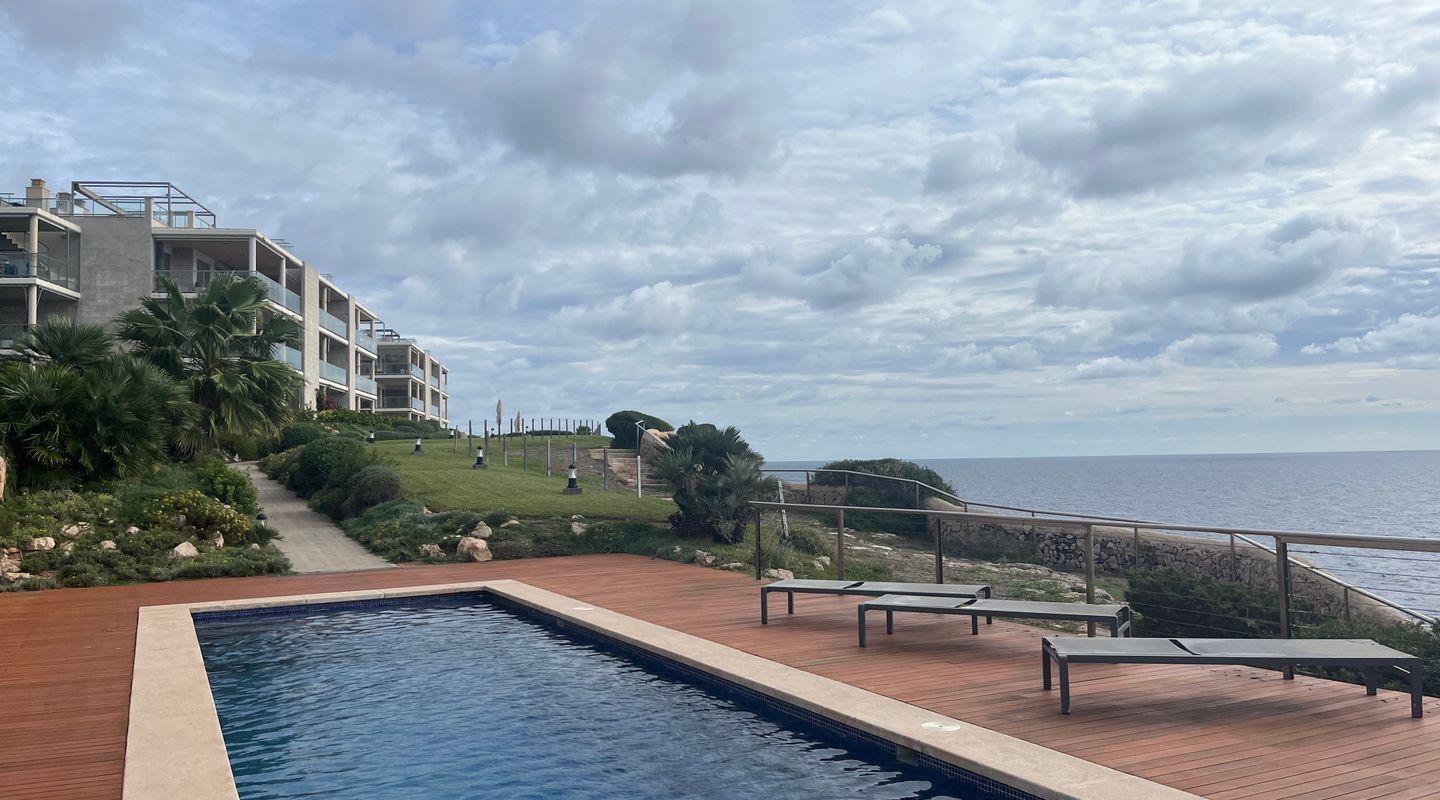 This luxurious and absolutely quiet flat is located on the ground floor of the exclusive and well-maintained residential complex ‘Cap Blau’. It has two bedrooms and a living room, all with direct sea views. There are two bathrooms, one with a wellness shower and the other with a bathtub.