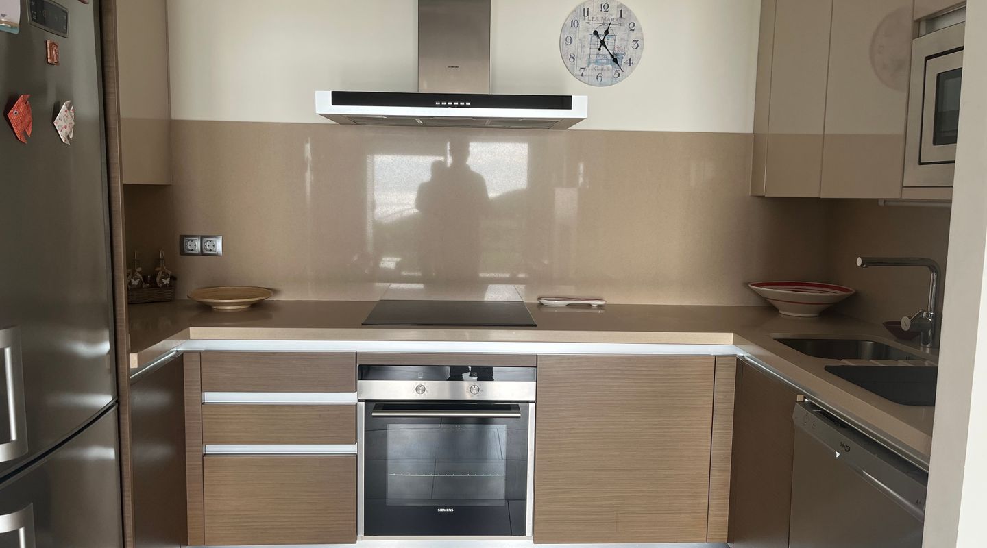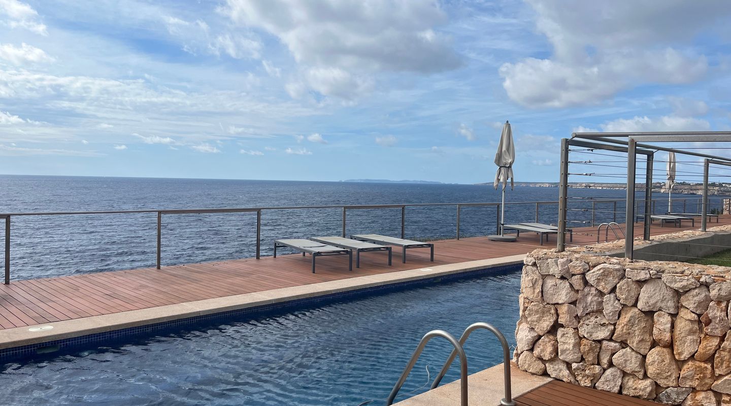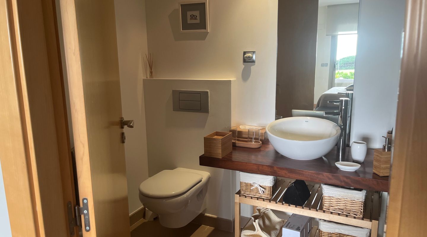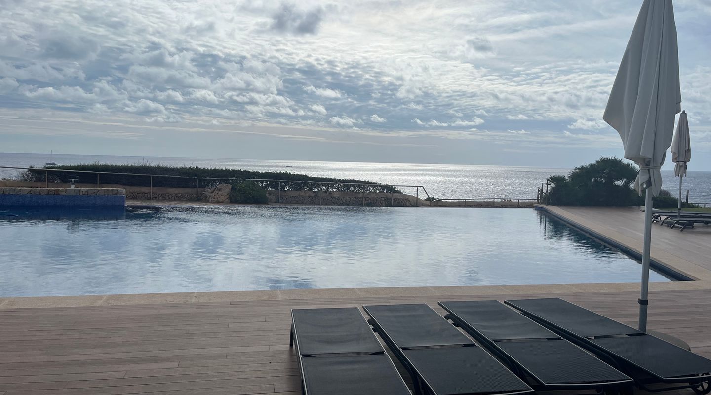This luxurious and absolutely quiet flat is located on the ground floor of the exclusive and well-maintained residential complex ‘Cap Blau’. It has two bedrooms and a living room, all with direct sea views. There are two bathrooms, one with a wellness shower and the other with a bathtub.