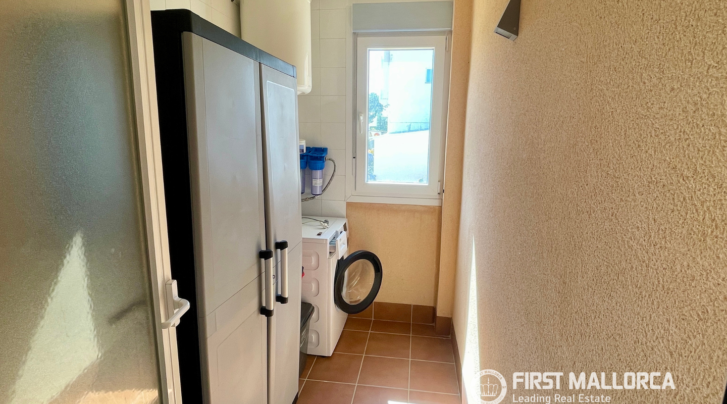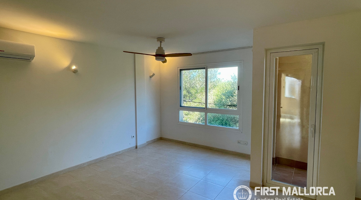 This beautiful unfurnished apartment is located in Cala Llombards, a particularly idyllic spot on the southeast coast of Mallorca. In less than 15 minutes on foot, you can reach some of the island’s most stunning coves, including Caló des Moro, Cala s’Almunia, Cala Màrmols, and Cala Llombards. The Mondragó Natural Park, with the breathtaking beaches of Cala Mondragó and s’Amarador, is also only about 20 minutes away.