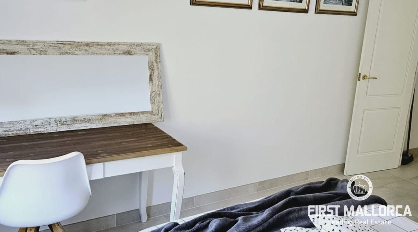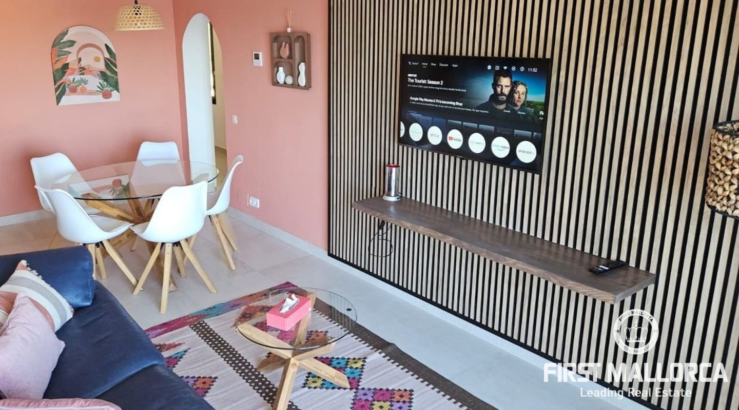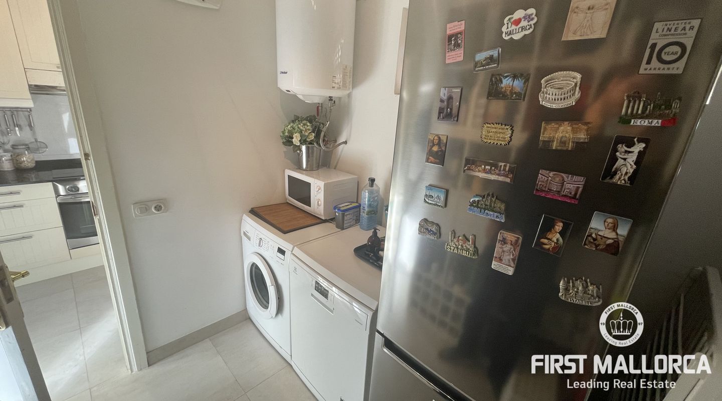 Upon entering you will be greeted by the hallway between the kitchen and living room. To your left is the fully equipped kitchen with adjoining laundry and pantry. On the other side the bright living room and the terrace with a beautiful view will help you relieve stress.