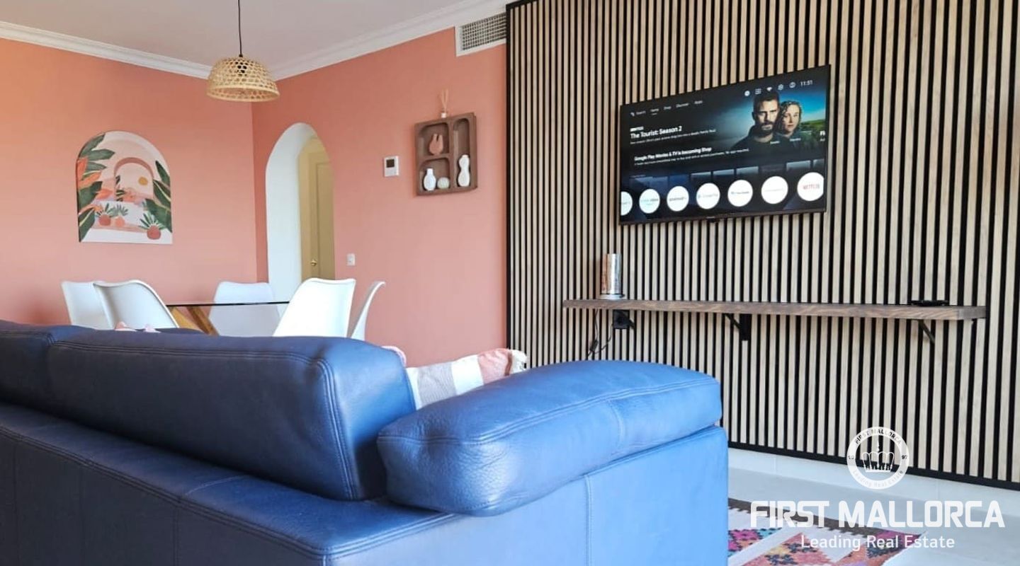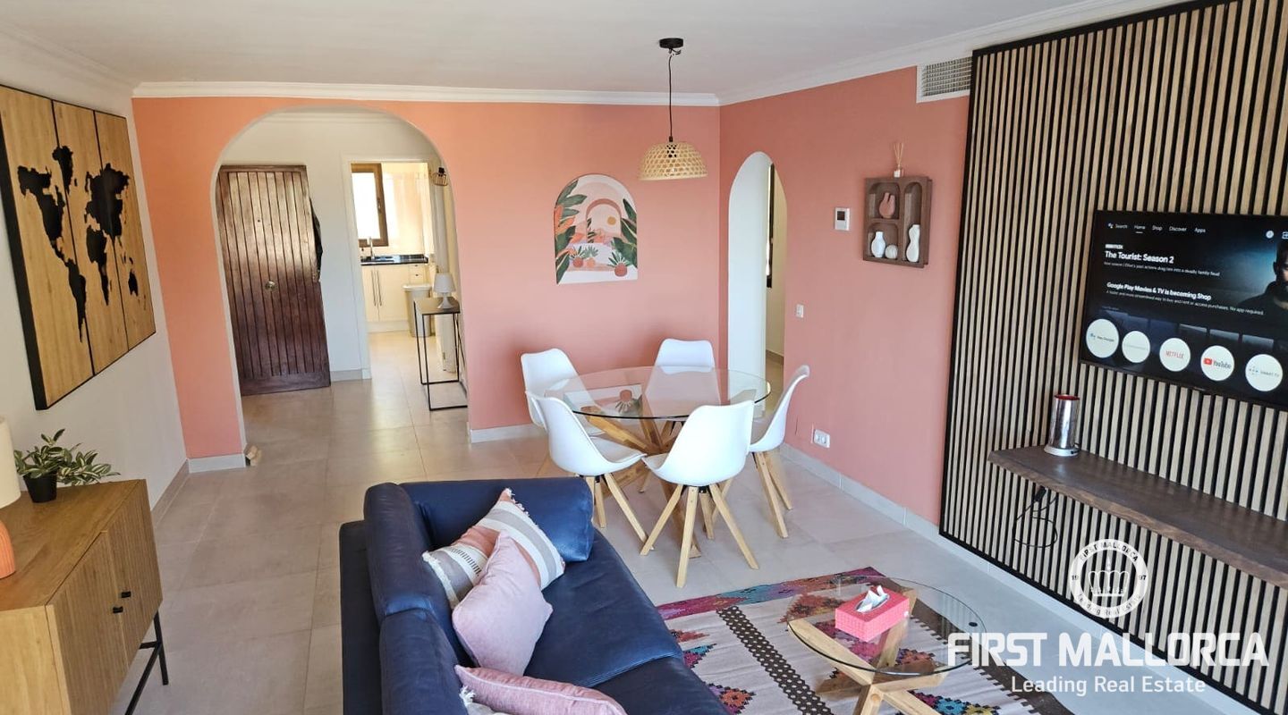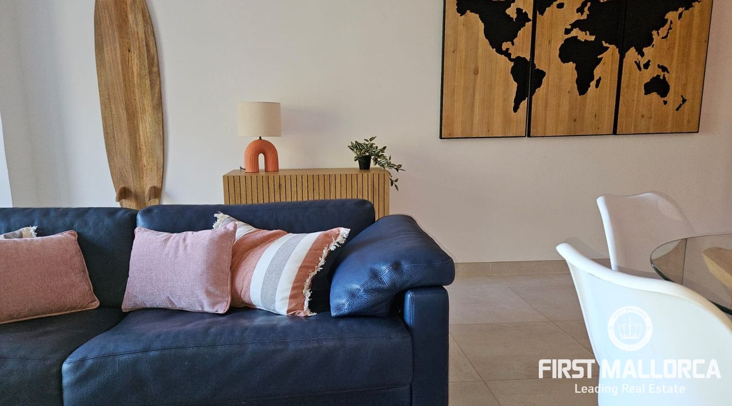 Upon entering you will be greeted by the hallway between the kitchen and living room. To your left is the fully equipped kitchen with adjoining laundry and pantry. On the other side the bright living room and the terrace with a beautiful view will help you relieve stress.