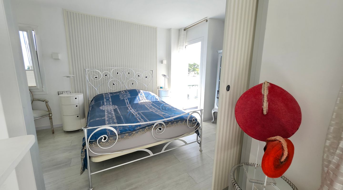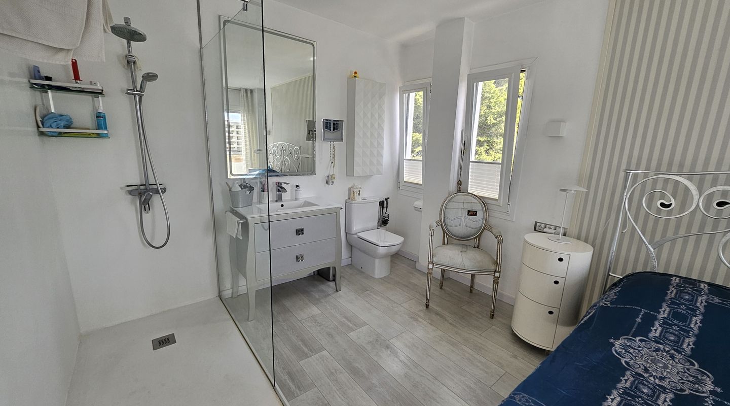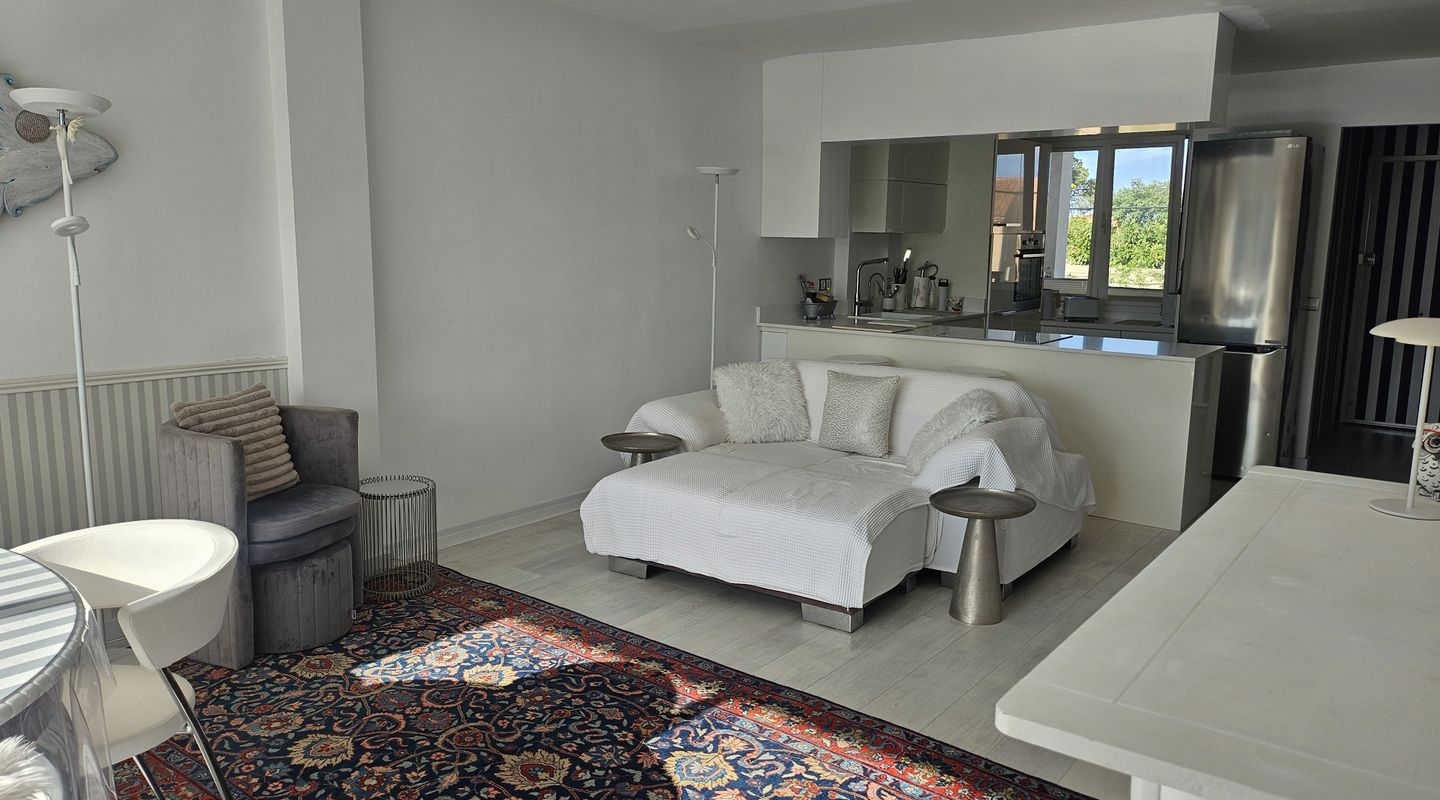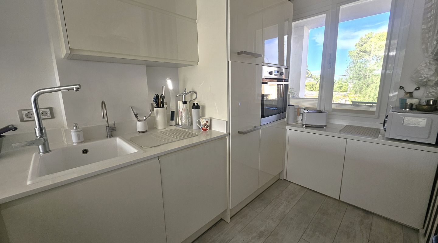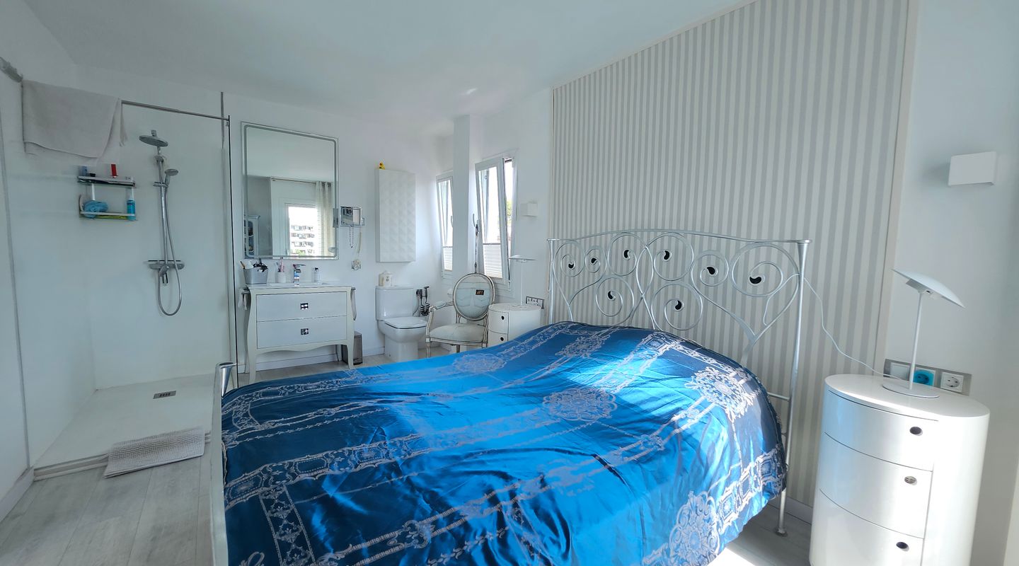 The master bedroom features an en-suite bathroom – a particular highlight of the property. Additionally, there is a separate bathroom with a shower. The second bedroom is compact and ideal as an office, guest room, or dressing room. At the entrance, there is a small veranda, complemented by another balcony that provides additional outdoor space. The apartment is fully furnished and stylishly equipped – including towels, bed linen, cutlery, and everything necessary for immediate move-in. The kitchen is fitted with a water filter that provides drinkable tap water. Please note that the apartment does not have air conditioning; a small electric heater and a fan are provided. Pets such as cats and small dogs can be requested. The apartment is non-smoking, and parties are not allowed.