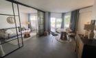 The open kitchen with central island invites you to cook and enjoy, offering ample space for sociable evenings with family and friends. The adjoining living and dining area is flooded with natural light, spaciously designed, and immediately conveys a feeling of comfort and coziness.